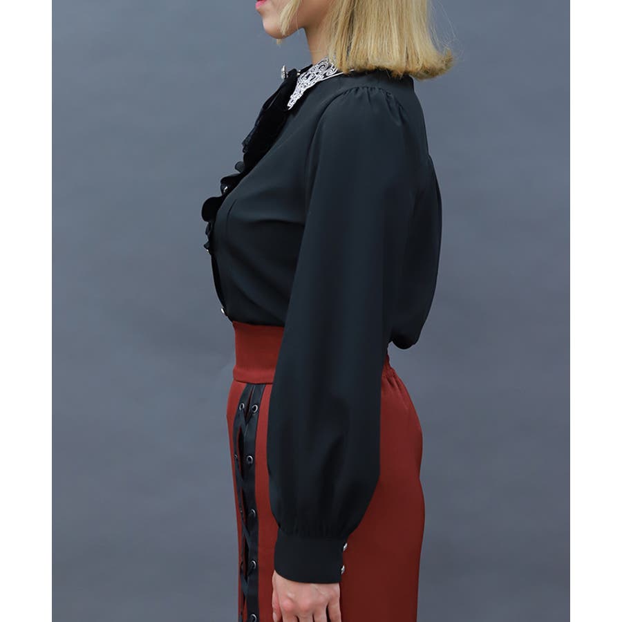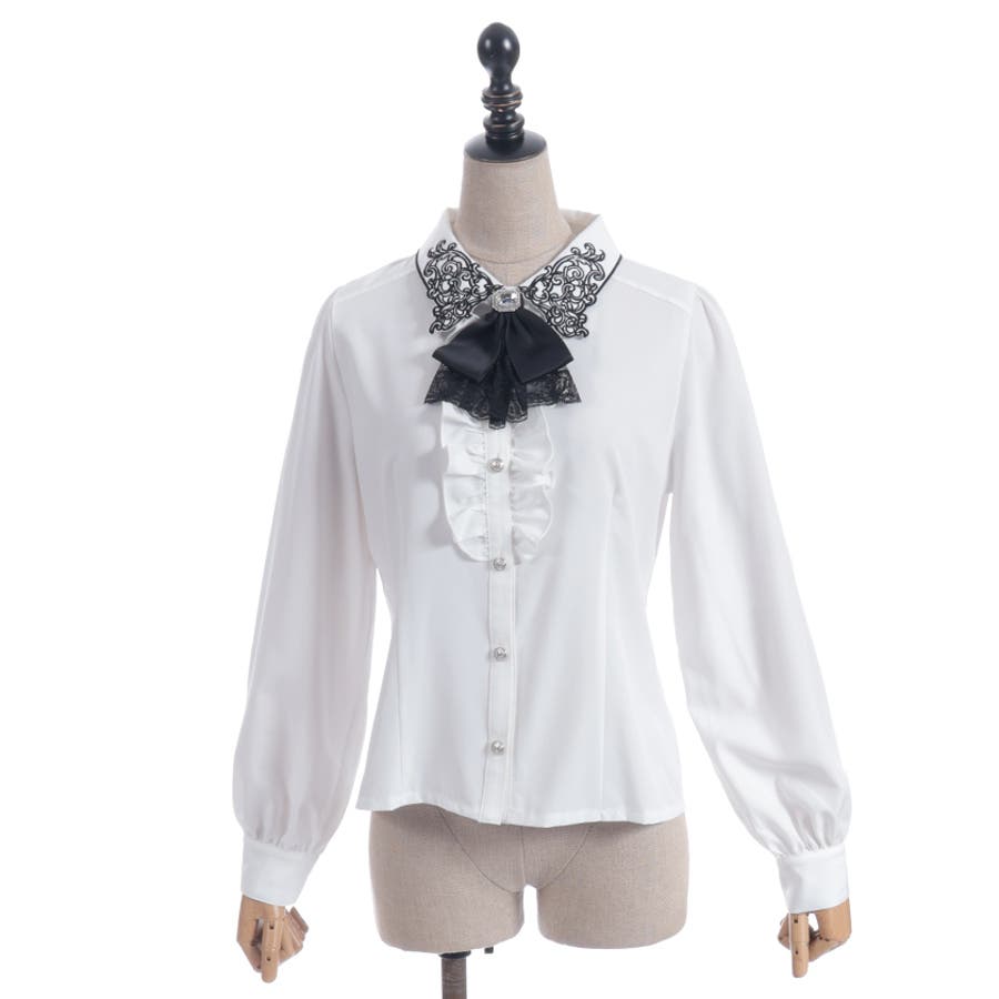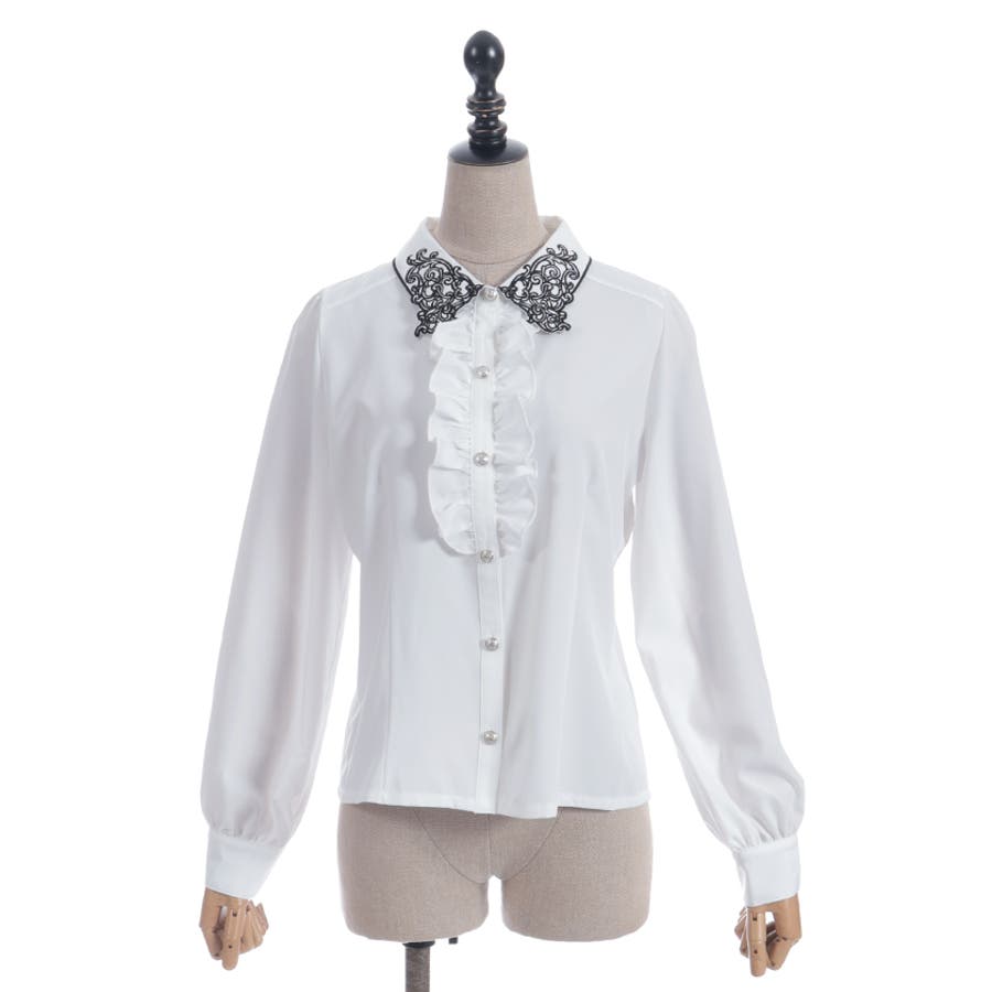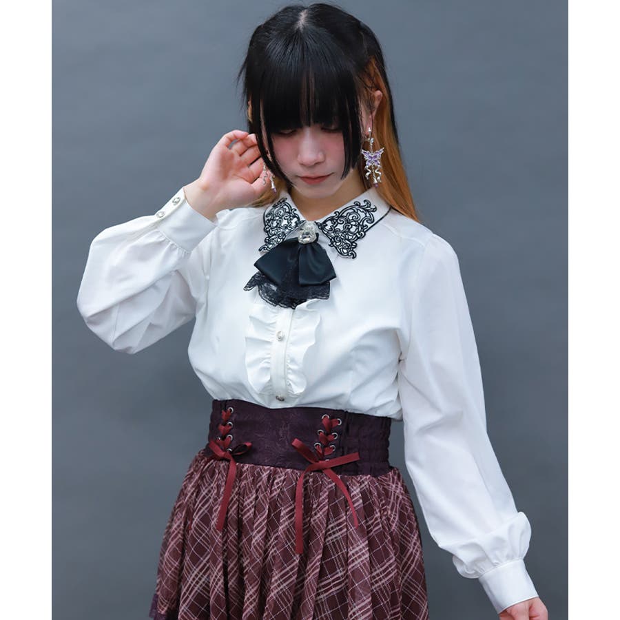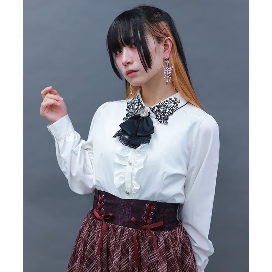 ゴシックにアレンジをしたバタフライモチーフを刺繍で襟にあしらったブラウスです。