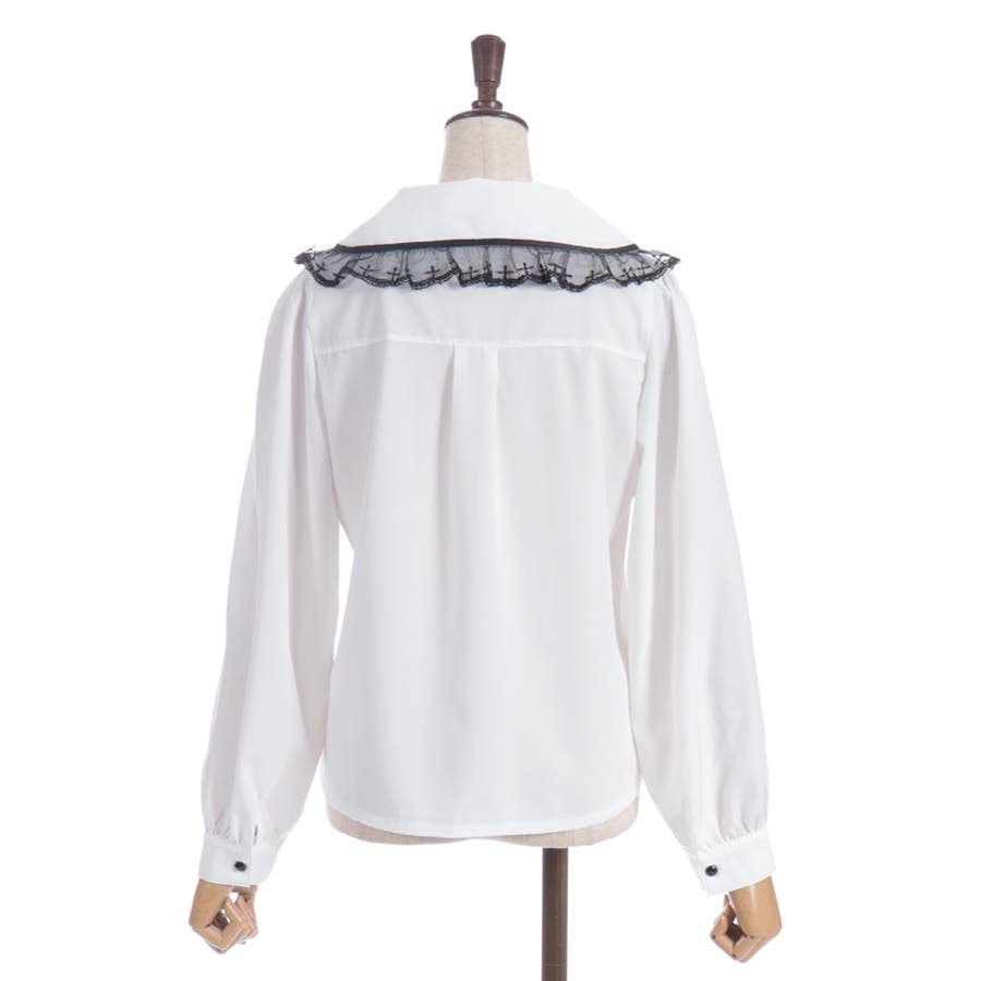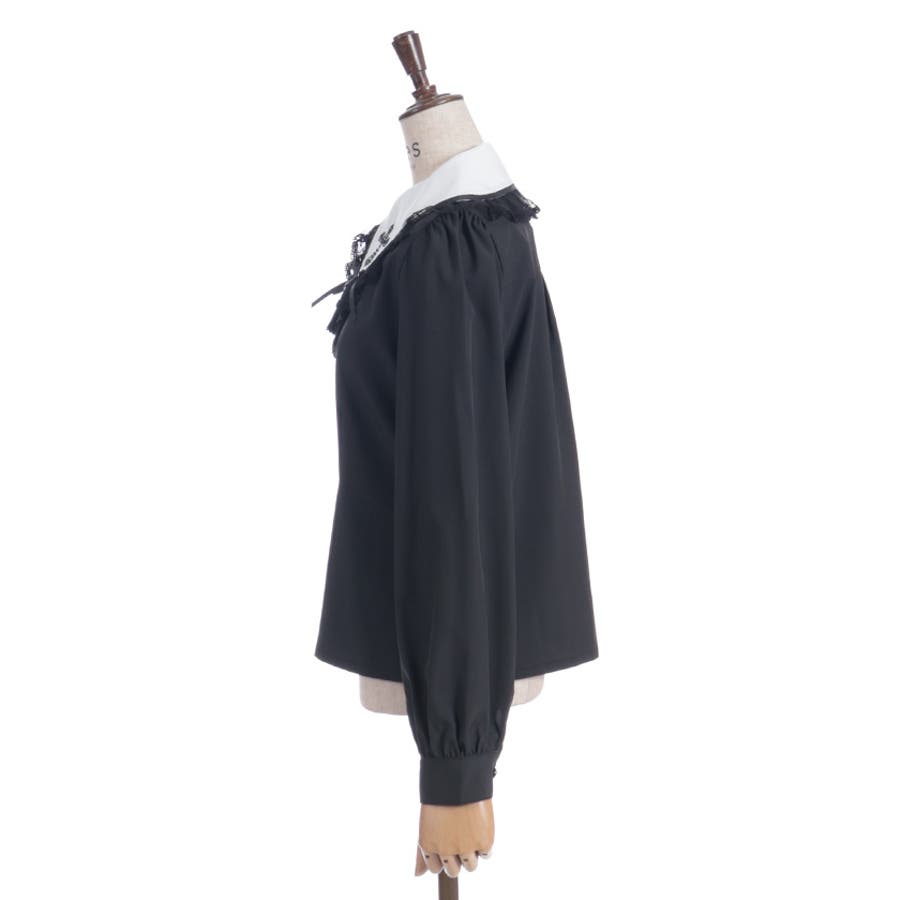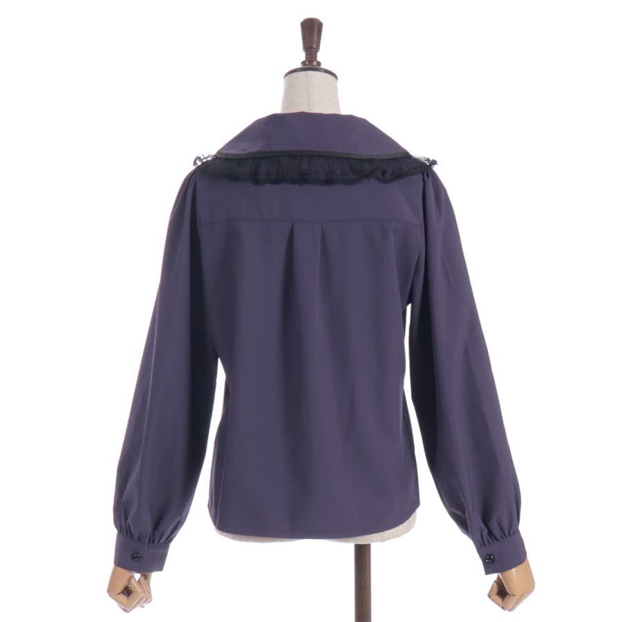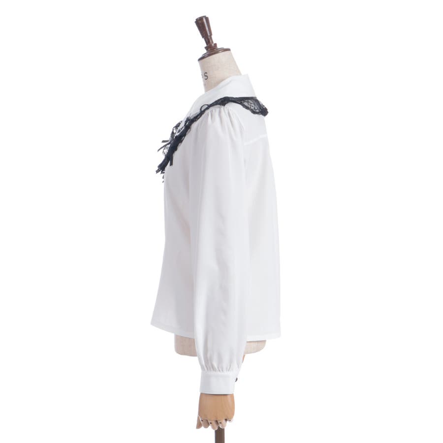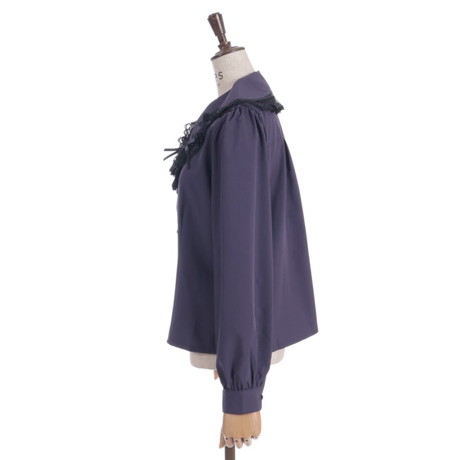 大き目の襟にたっぷりとレースをあしらったブラウスです。
