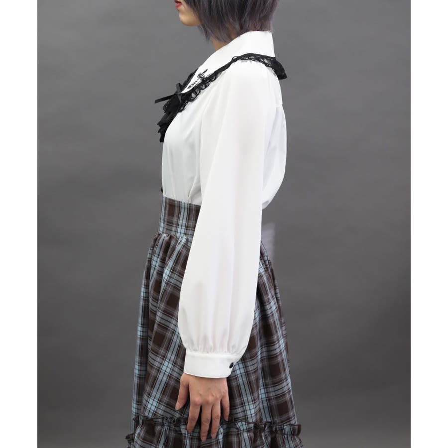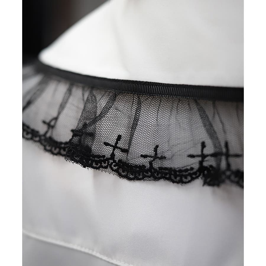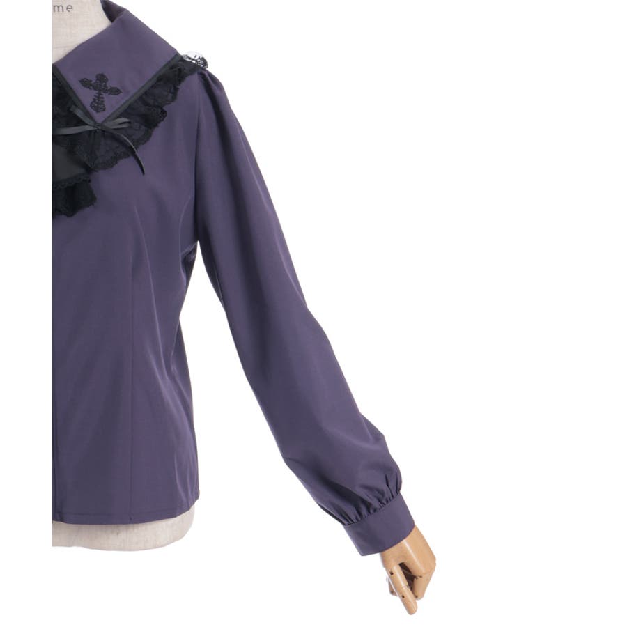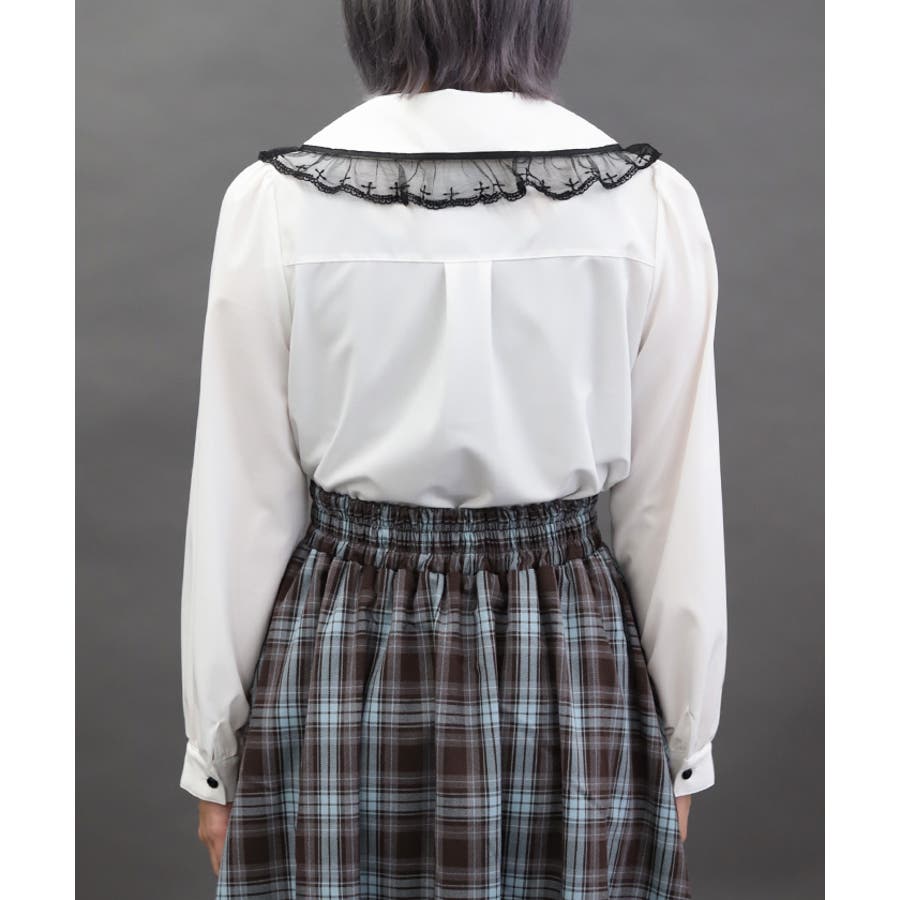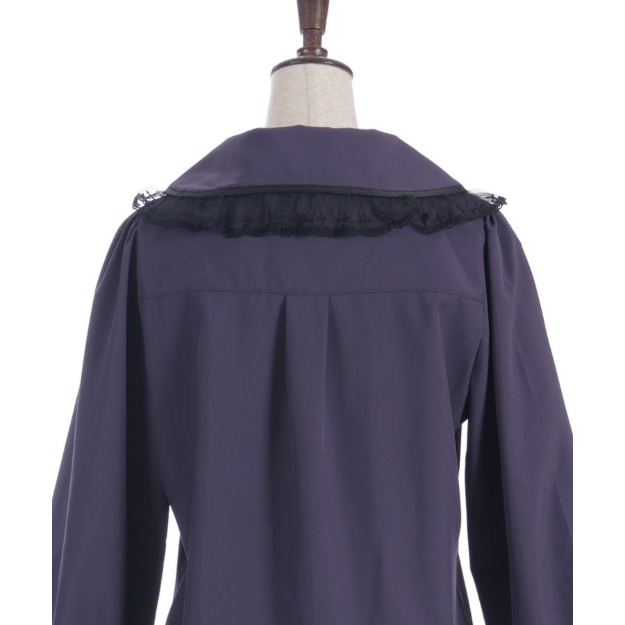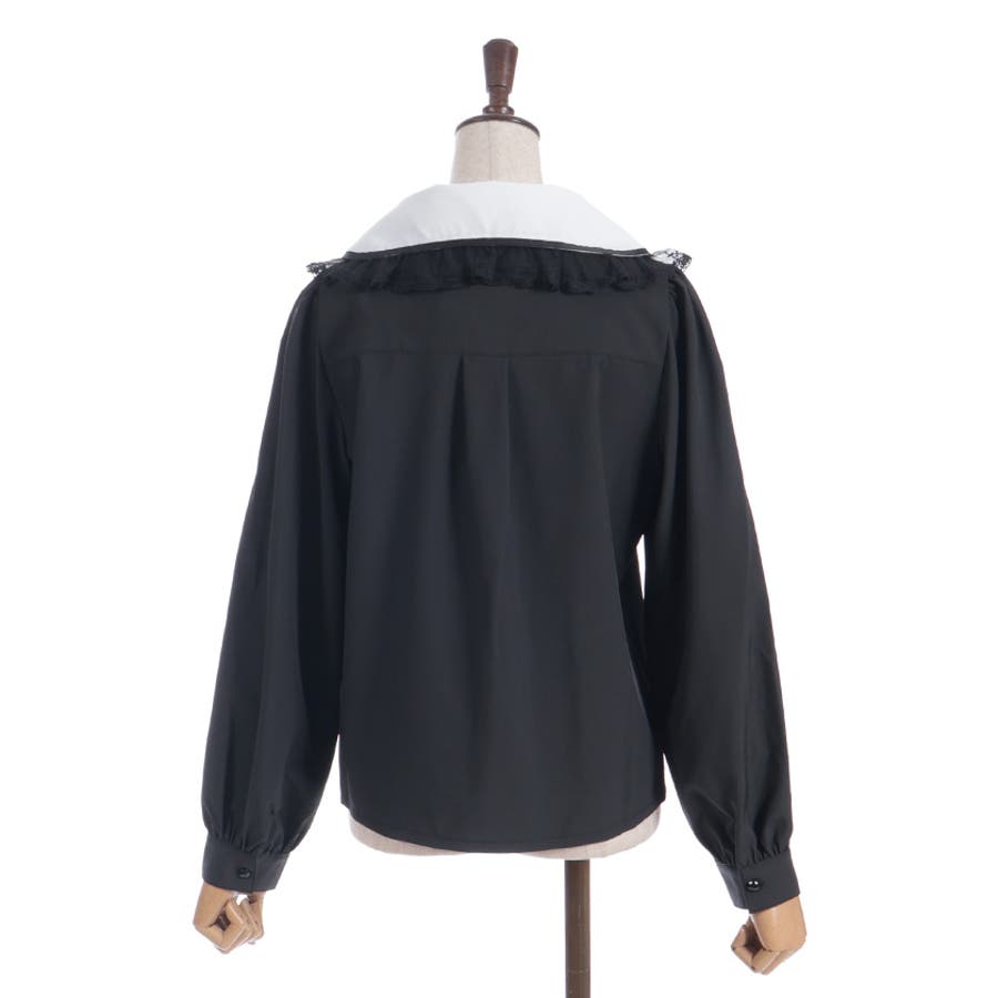 大き目の襟にたっぷりとレースをあしらったブラウスです。