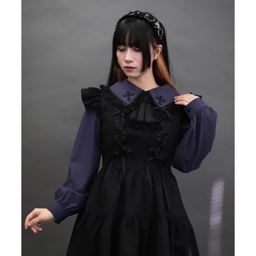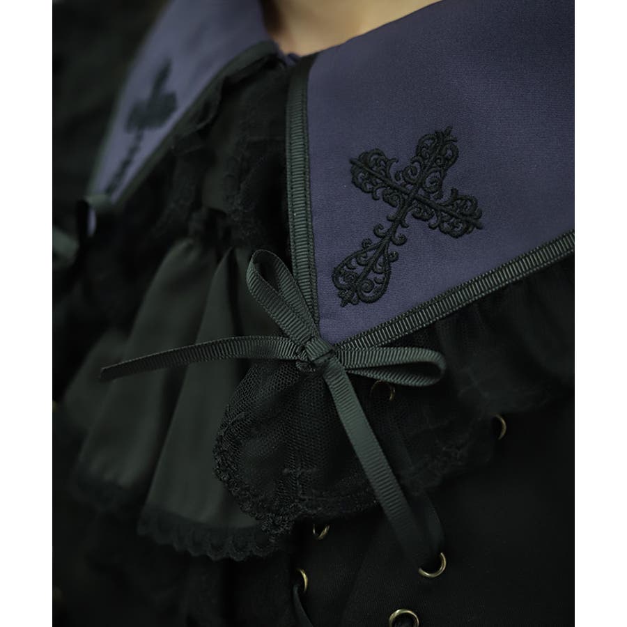 アクセントにクロスを刺繍であしらいゴシックな雰囲気に仕上げました。