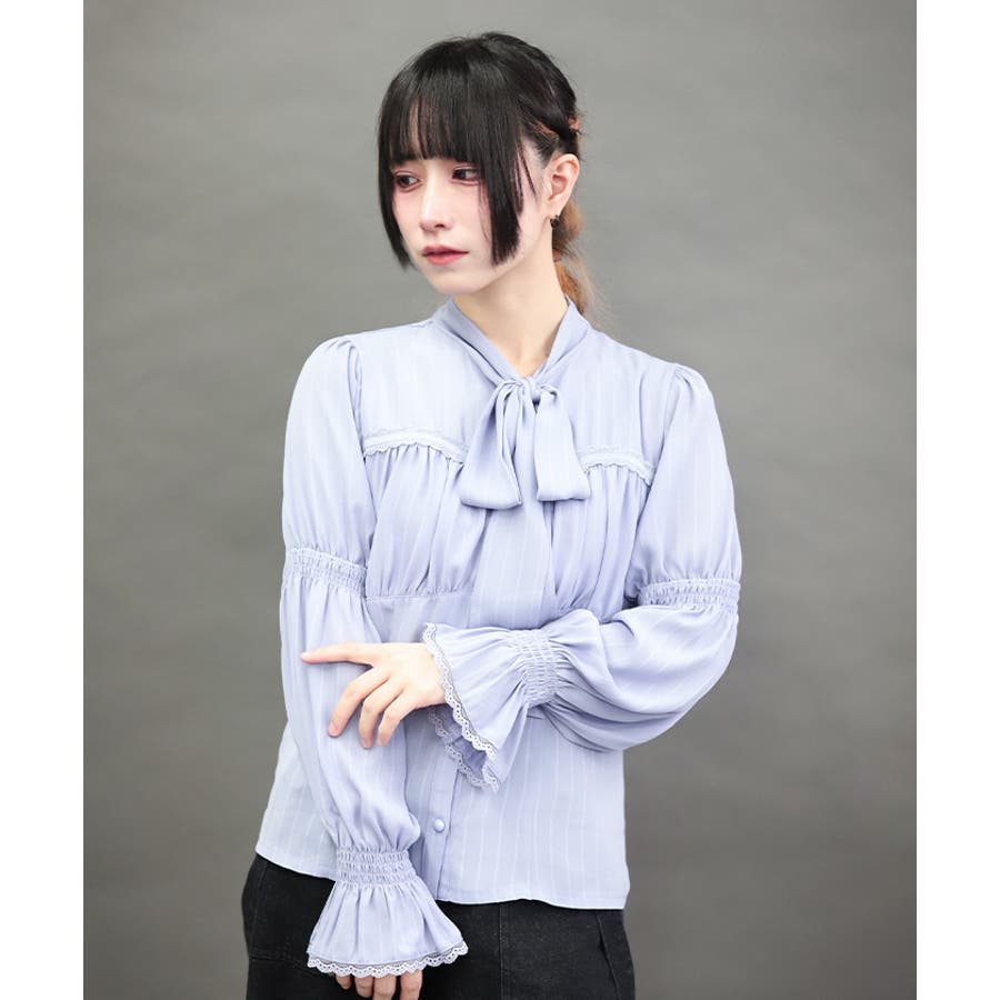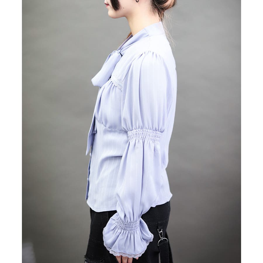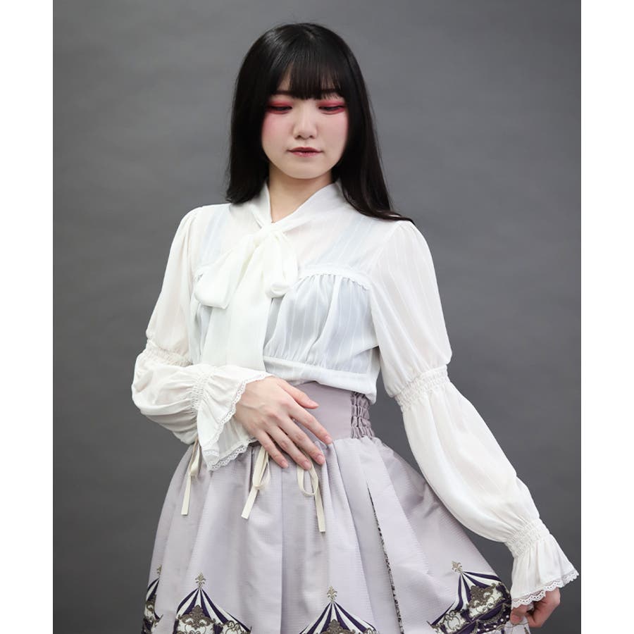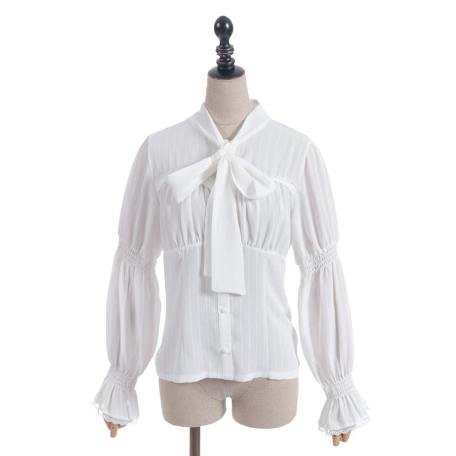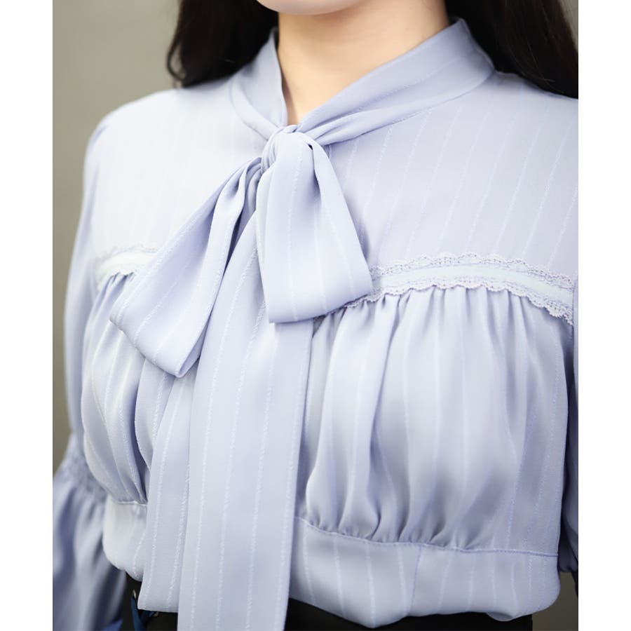 上品なシアー感のあるストライプ素材を使用したブラウスです。