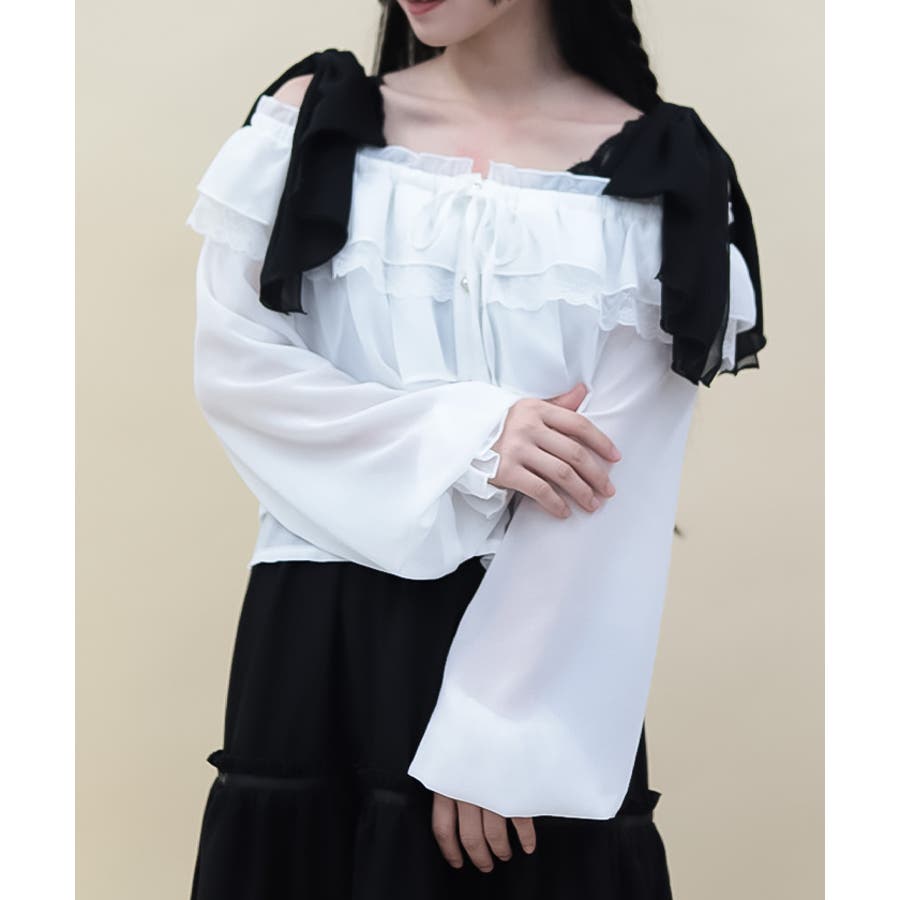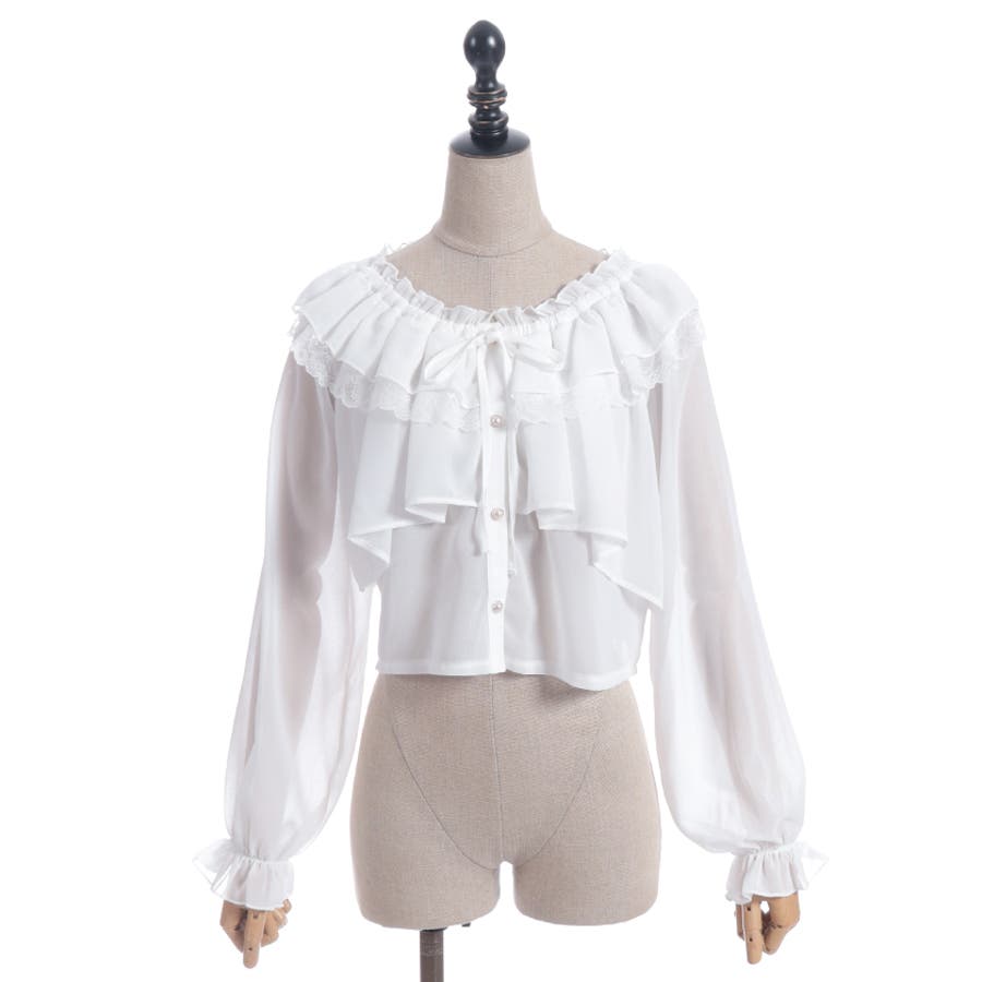 軽やかなシフォンのフリルが涼し気なブラウスです。