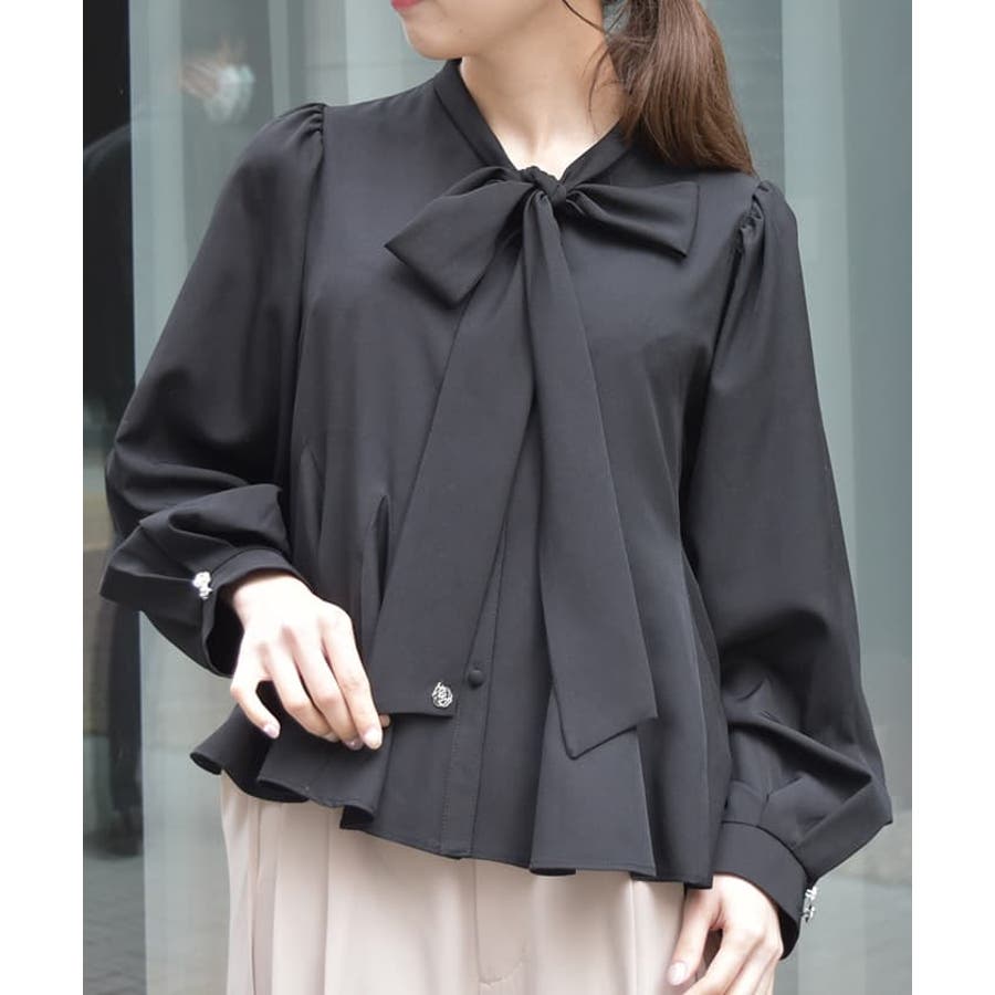 ペプラム風リボンタイブラウス