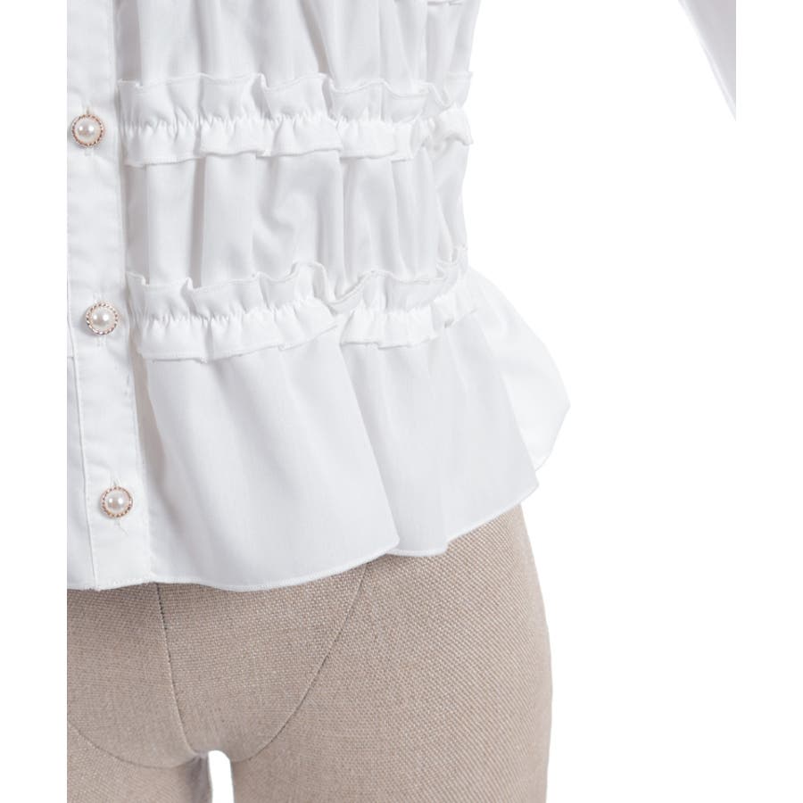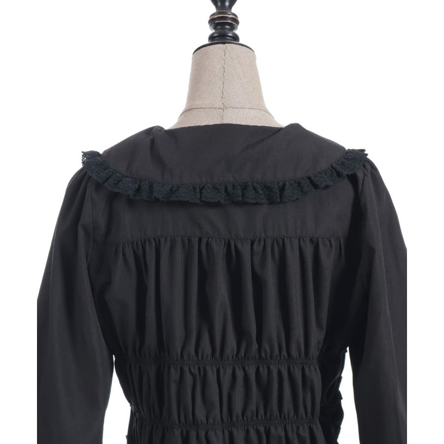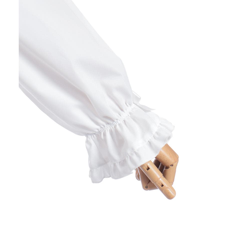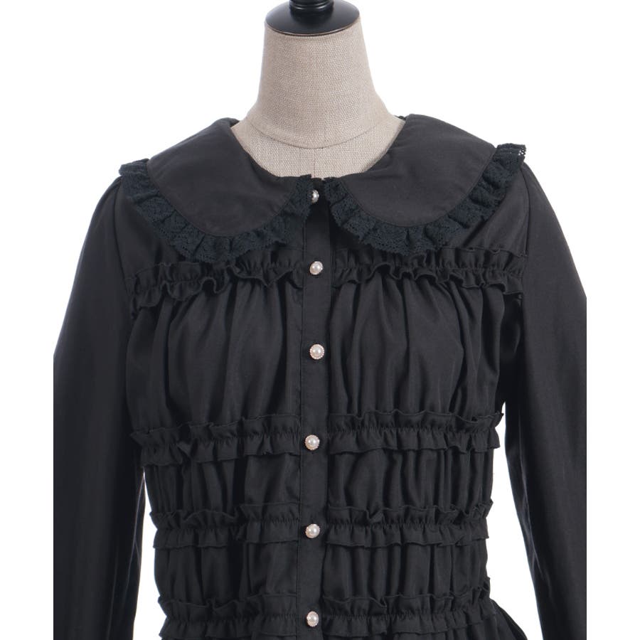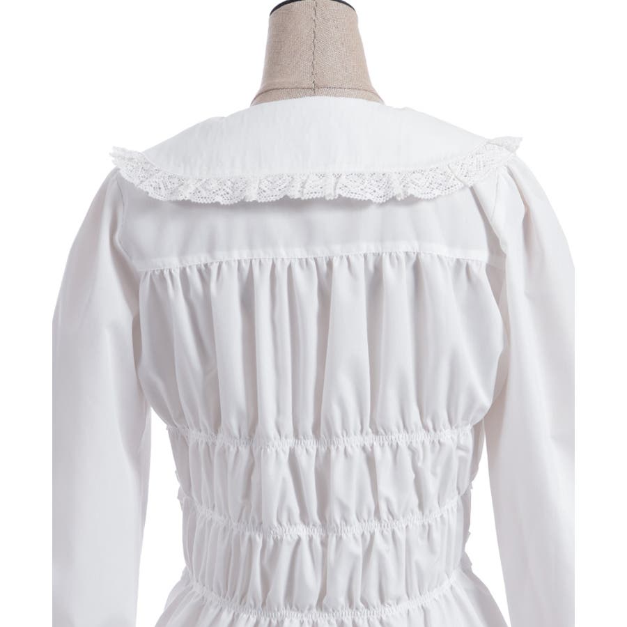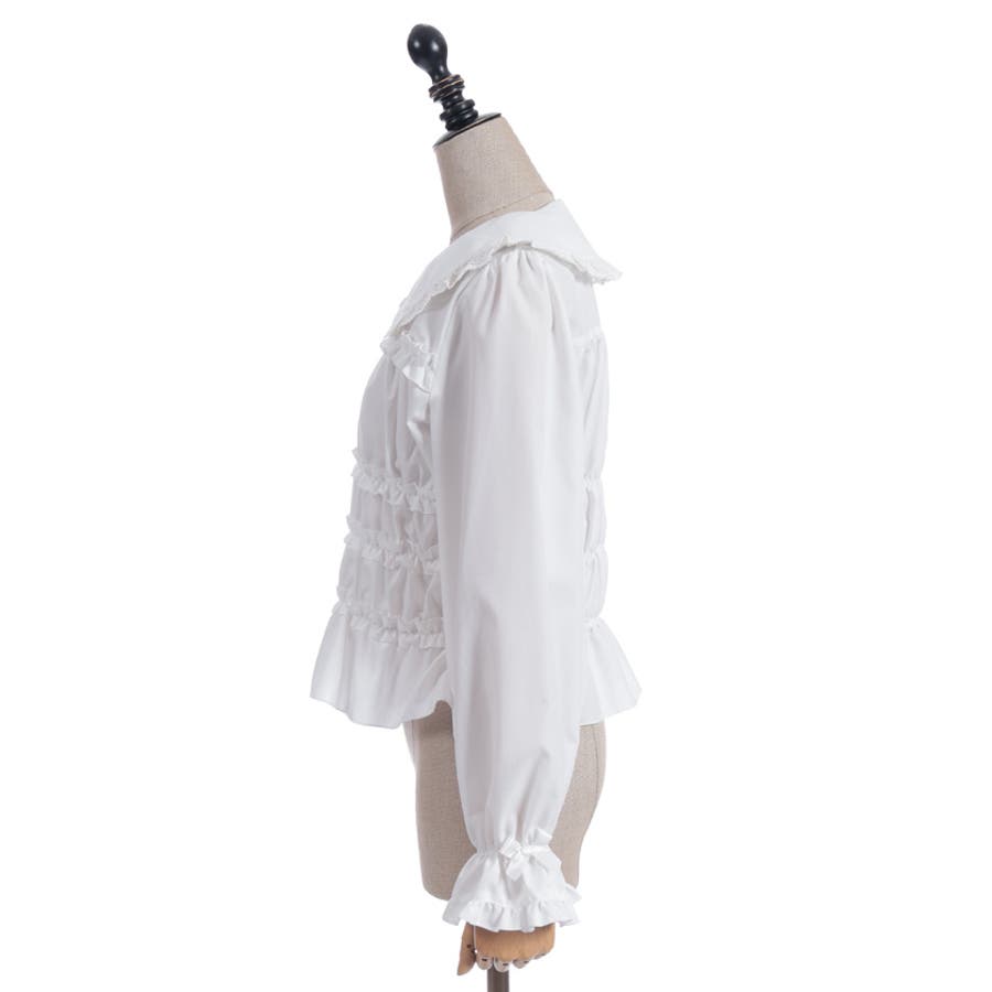 シャーリングのシルエットがクラシカルな丸襟のブラウス