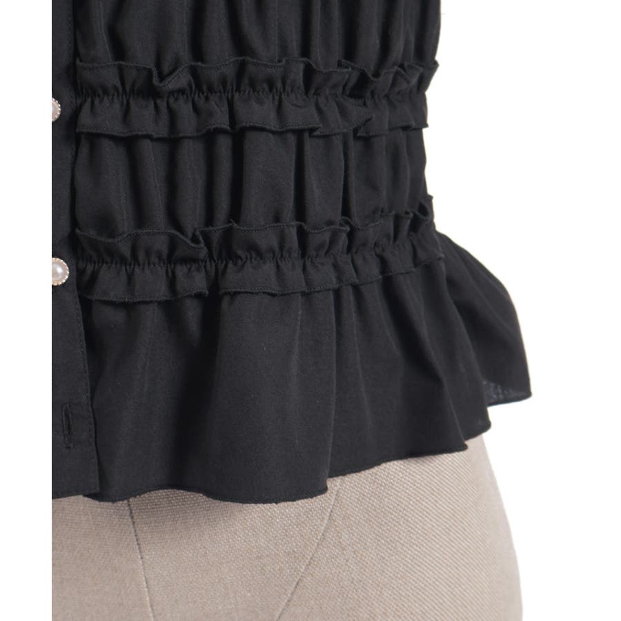 シャーリング部分にあしらったフリル使いがガーリーな印象に。