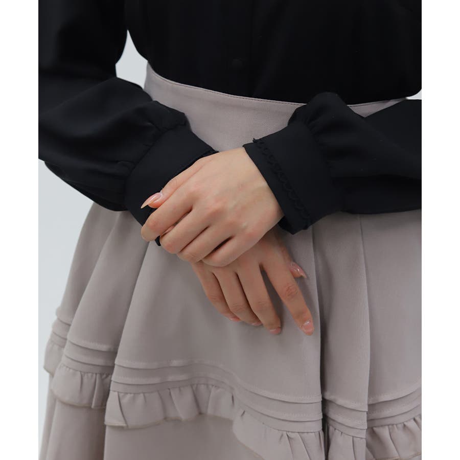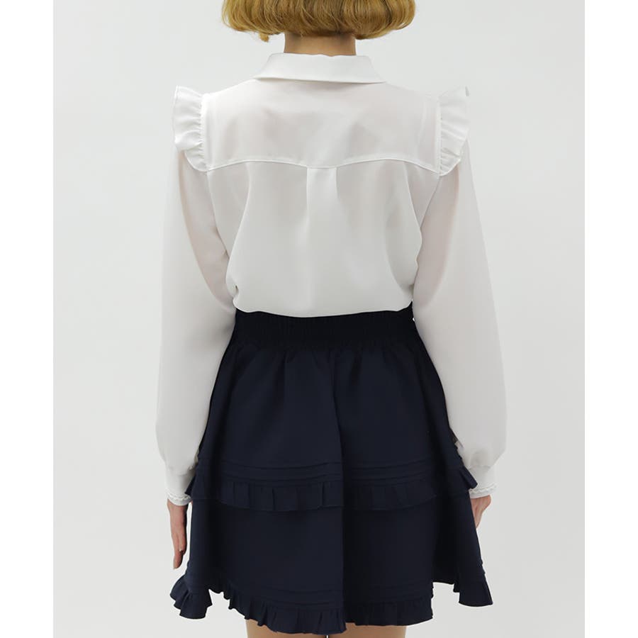 肩のフリルがガーリーなシルエットを演出します。