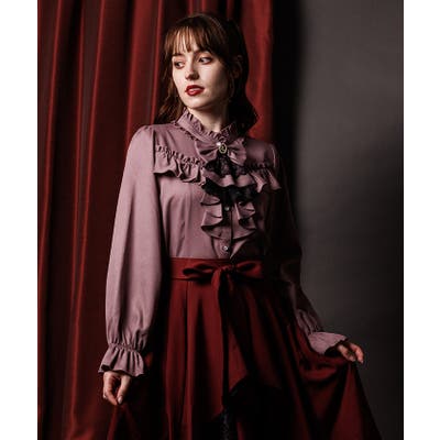 【ワイン】リボン×ジャボブローチ付ブラウス