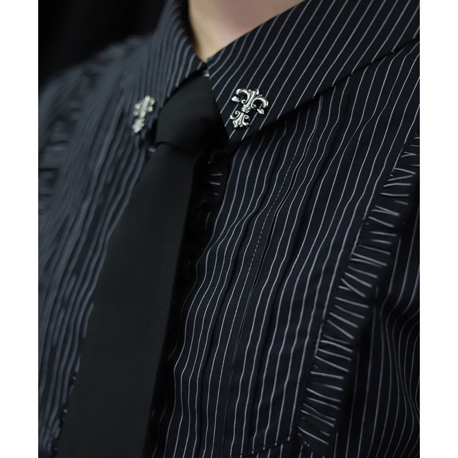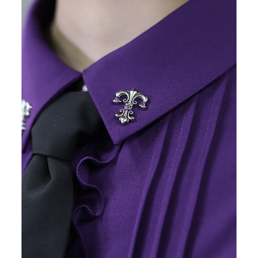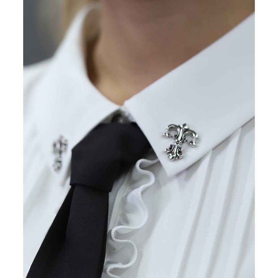 ボタンで着脱が出来るネクタイやブローチがセットになっているので色々なアレンジがお楽しみいただけます。