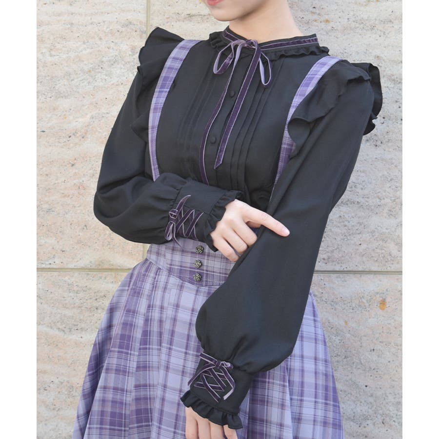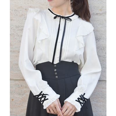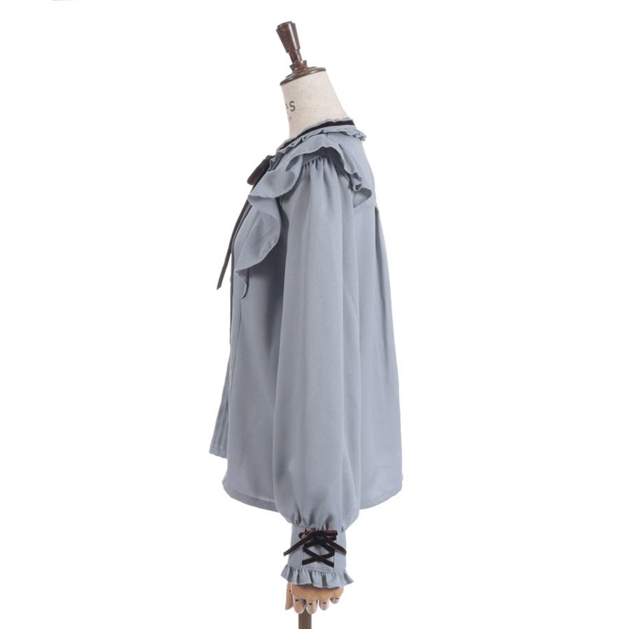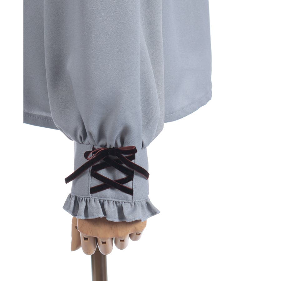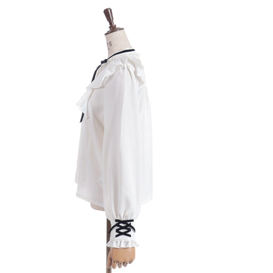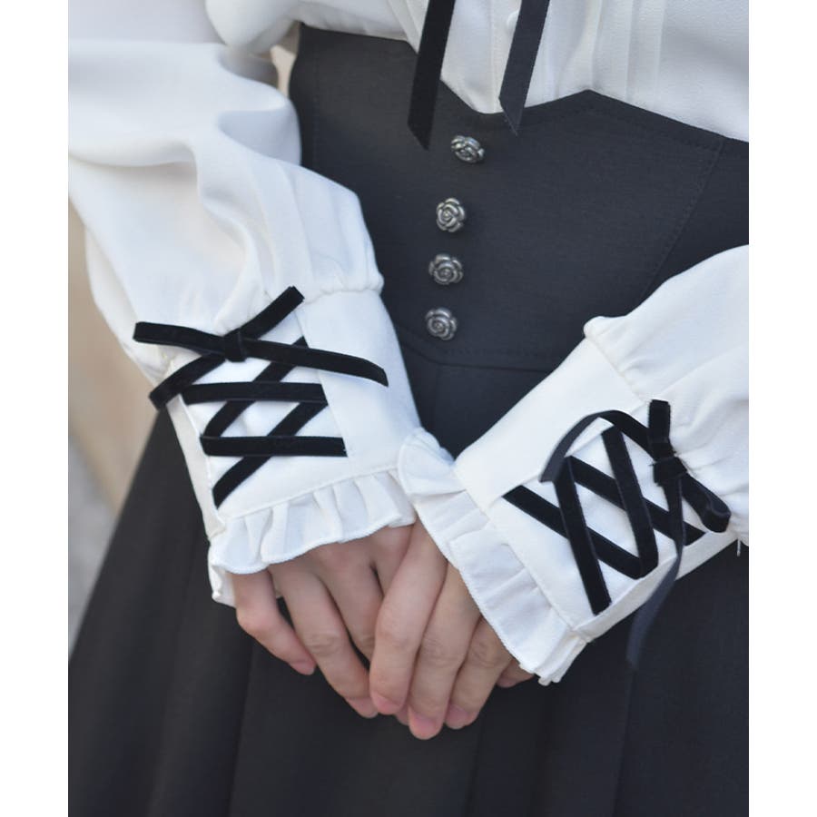 袖のカフスにレースアップをほどこし、手元までフェミニンに仕上がるブラウス。