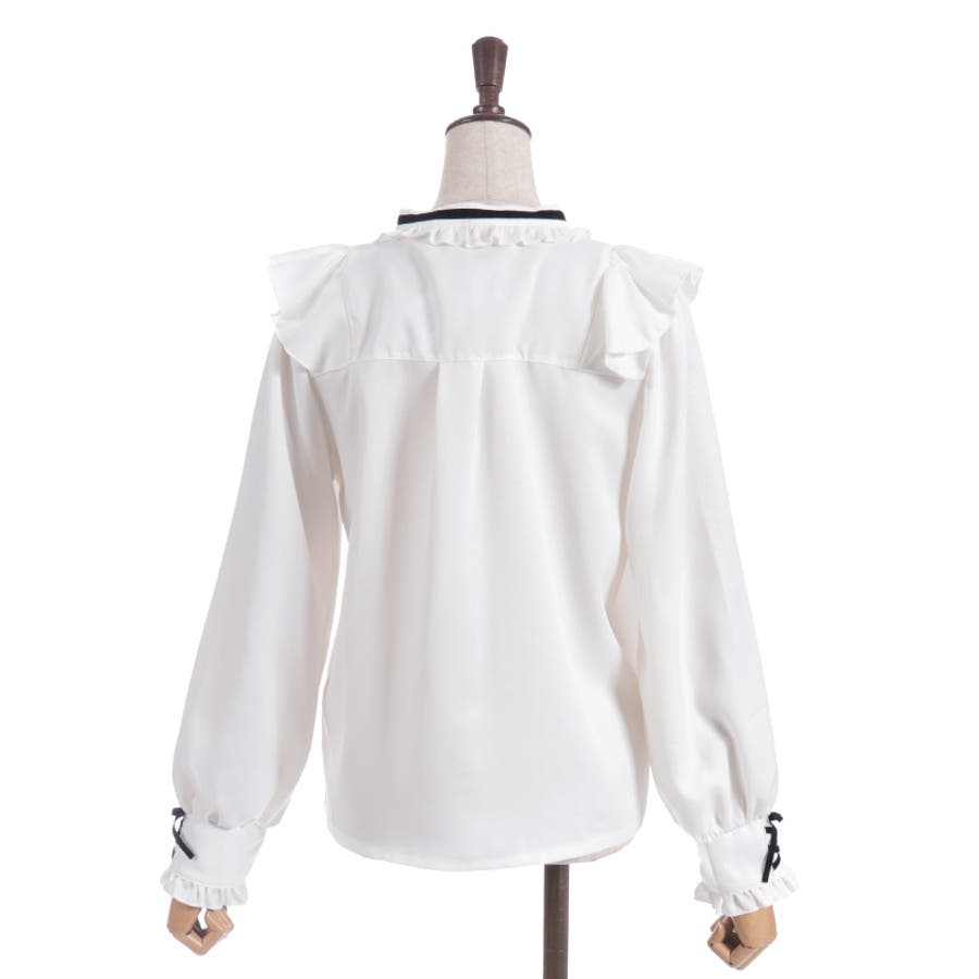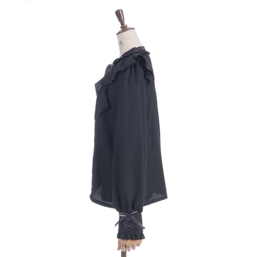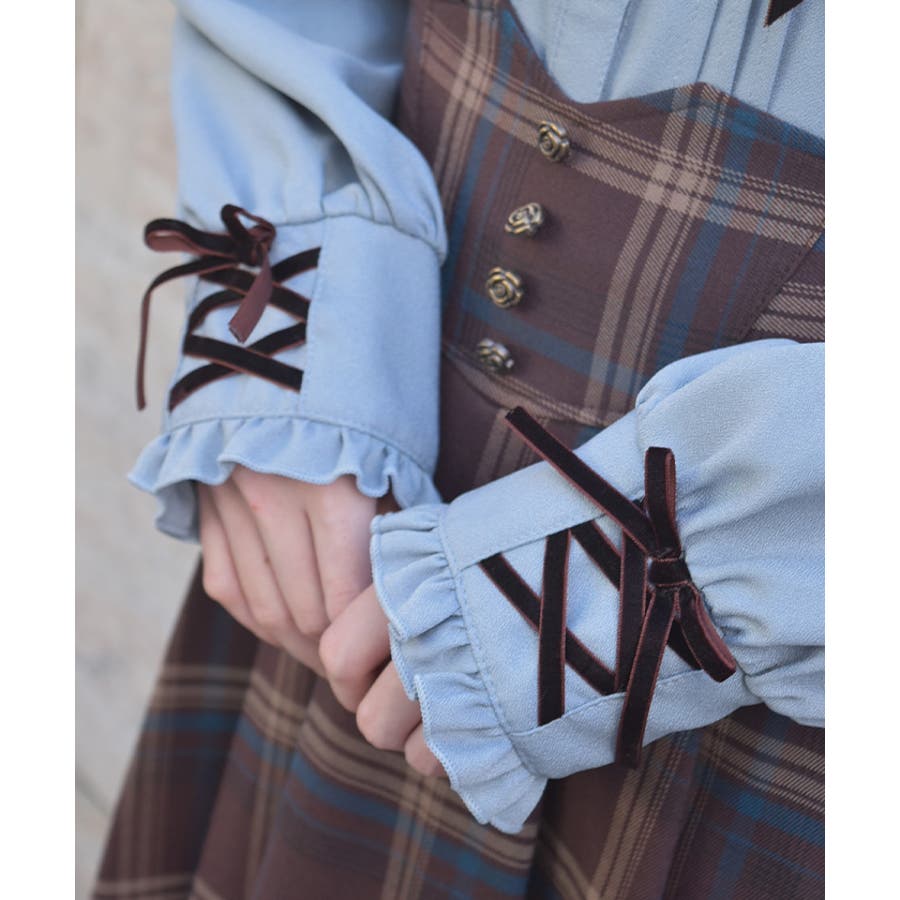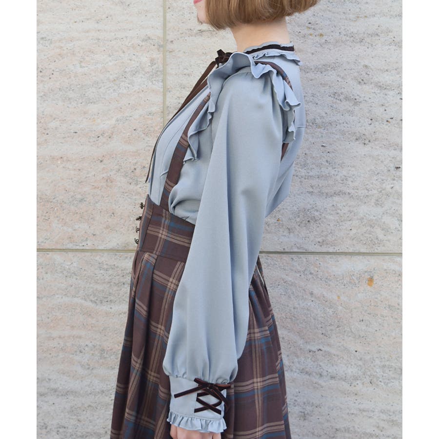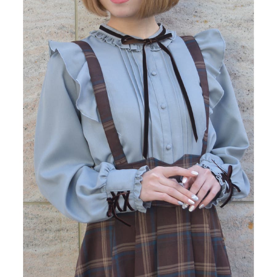 袖のカフスにレースアップをほどこし、手元までフェミニンに仕上がるブラウス。