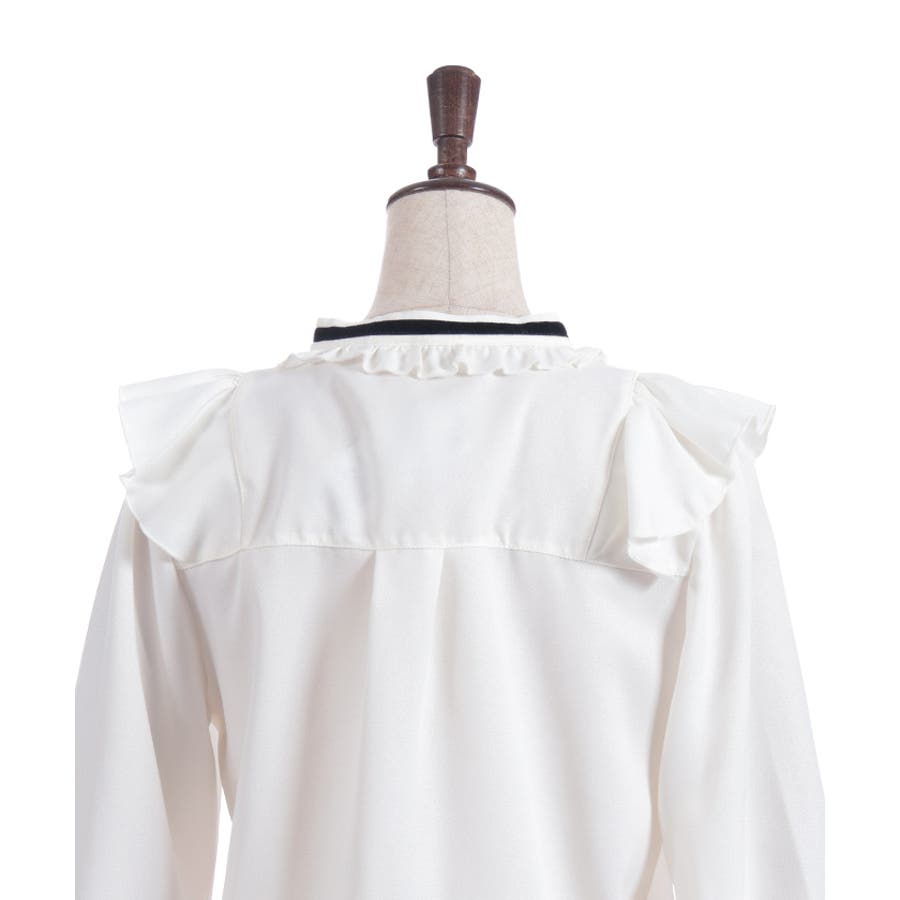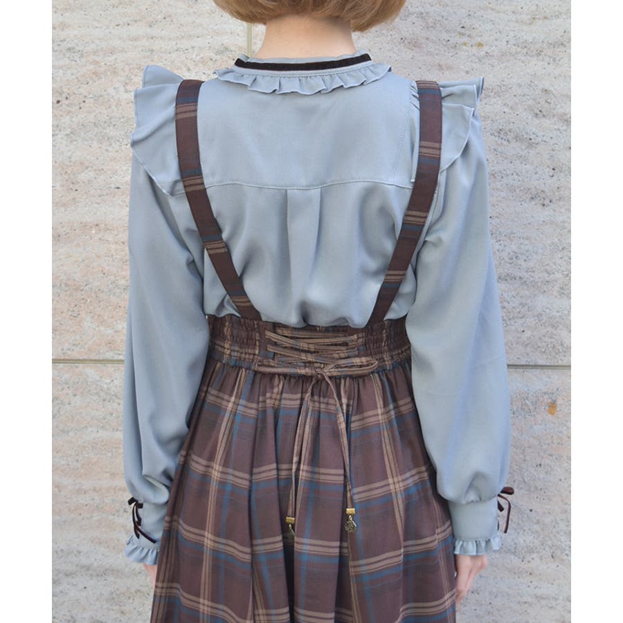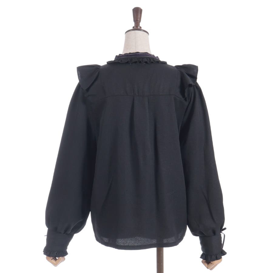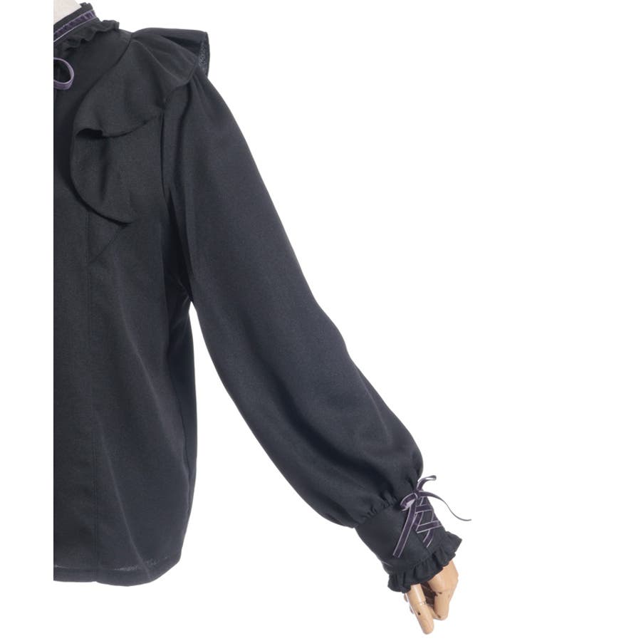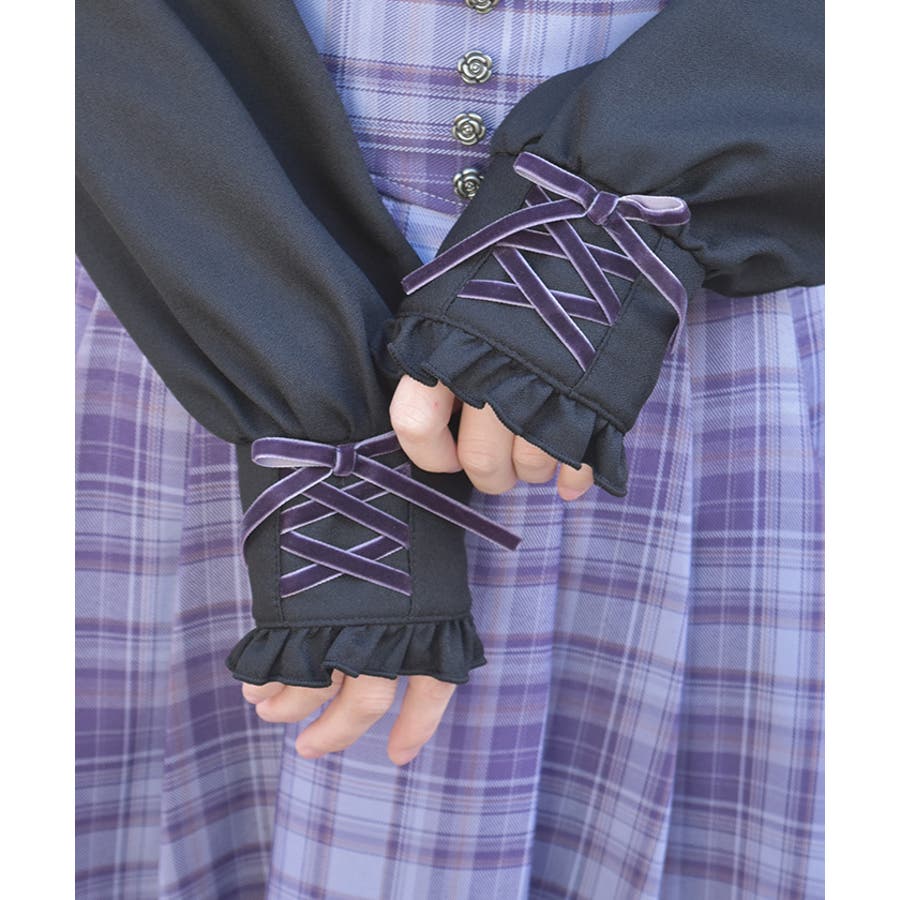 袖のカフスにレースアップをほどこし、手元までフェミニンに仕上がるブラウス。