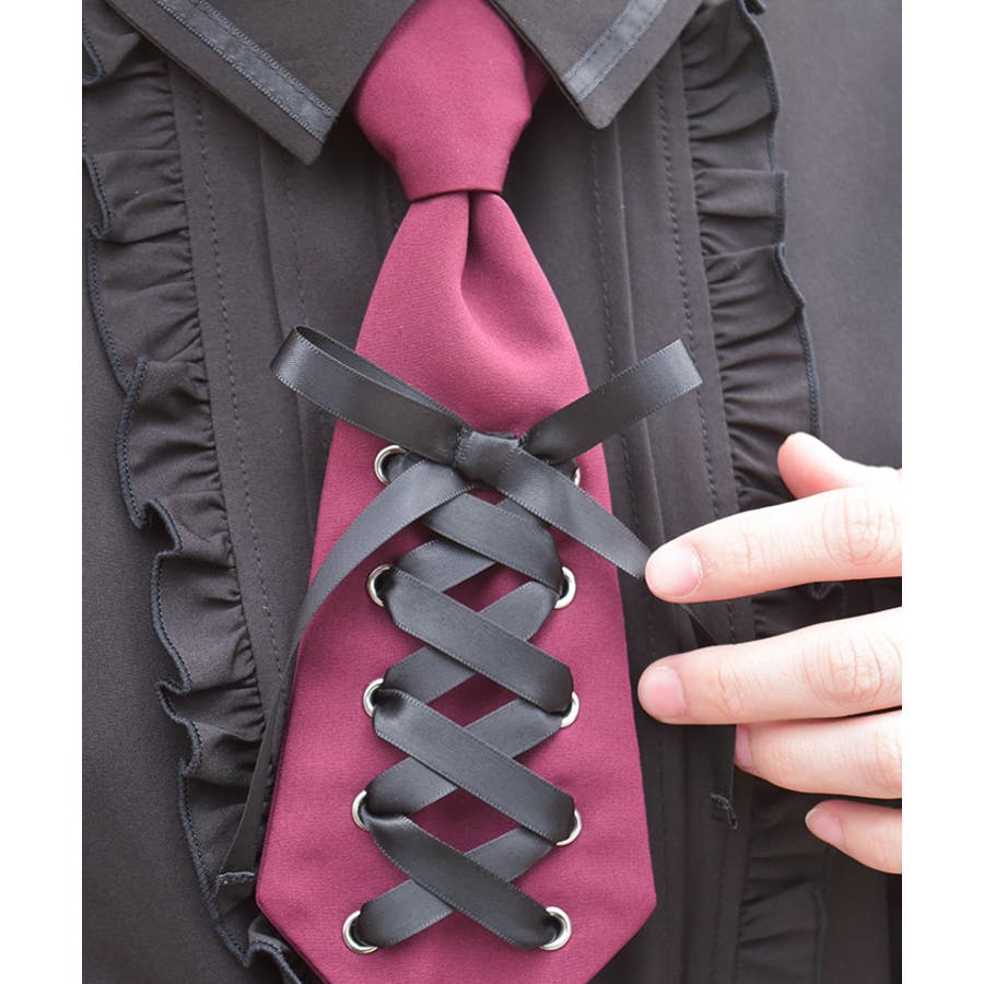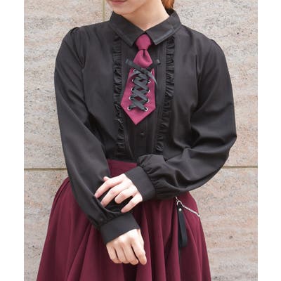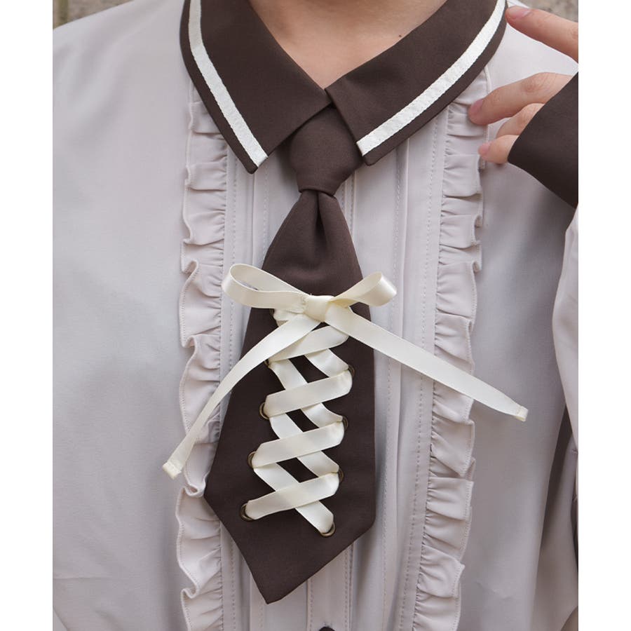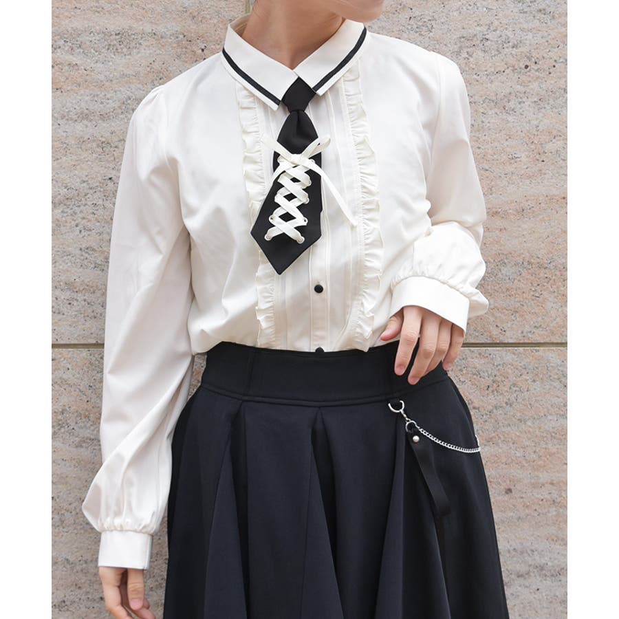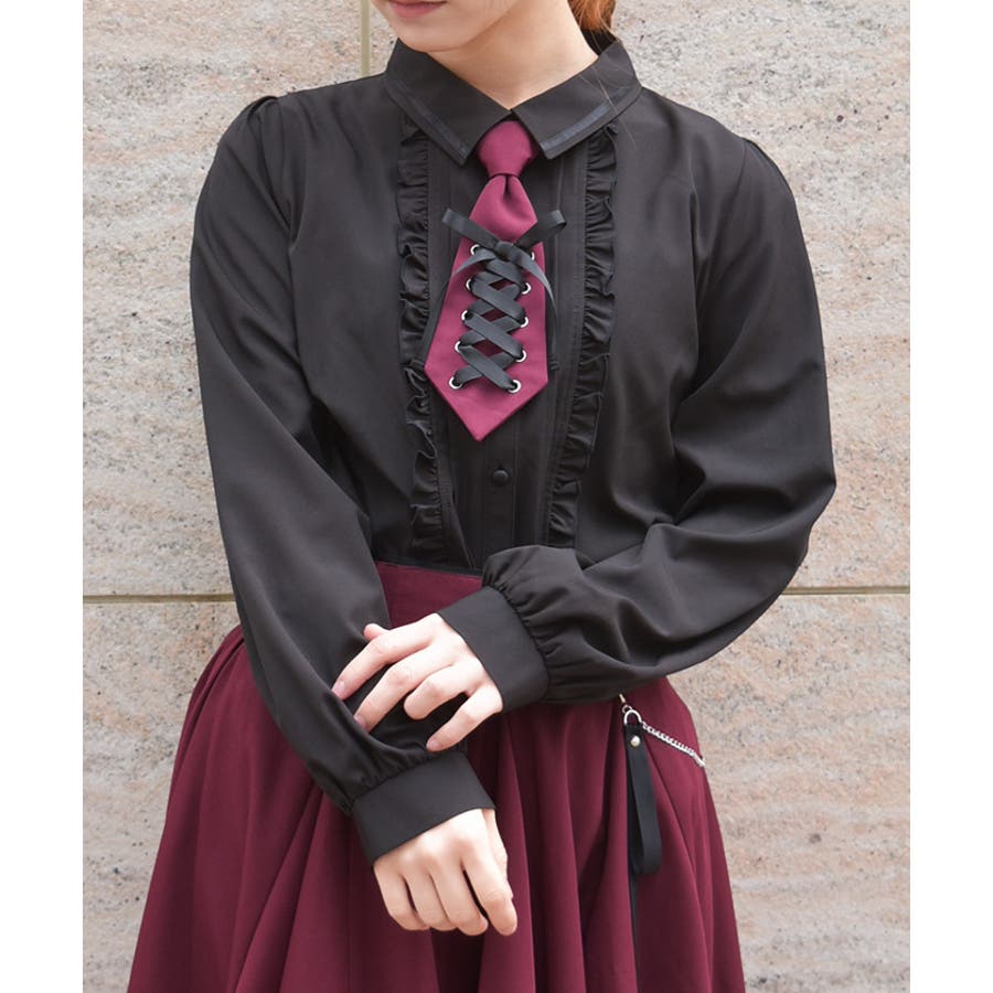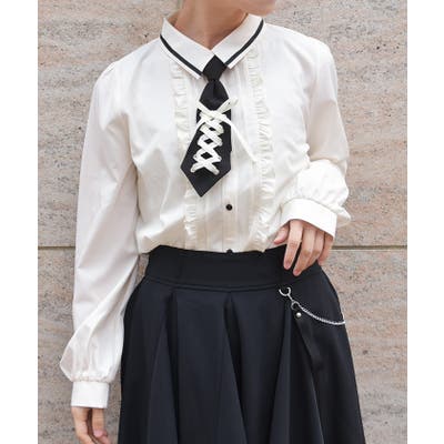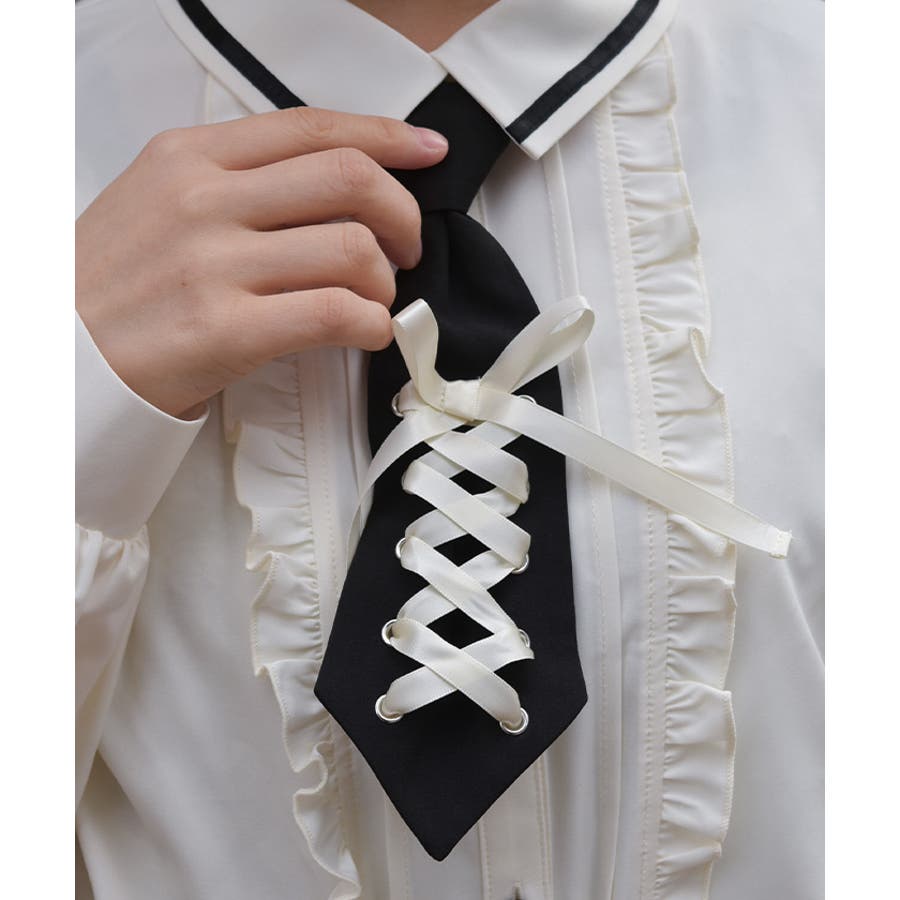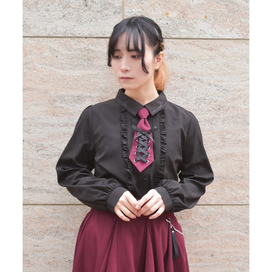 レースアップデザインを落とし込んだネクタイ付きで、きちんと感と遊び心を両立したブラウス。