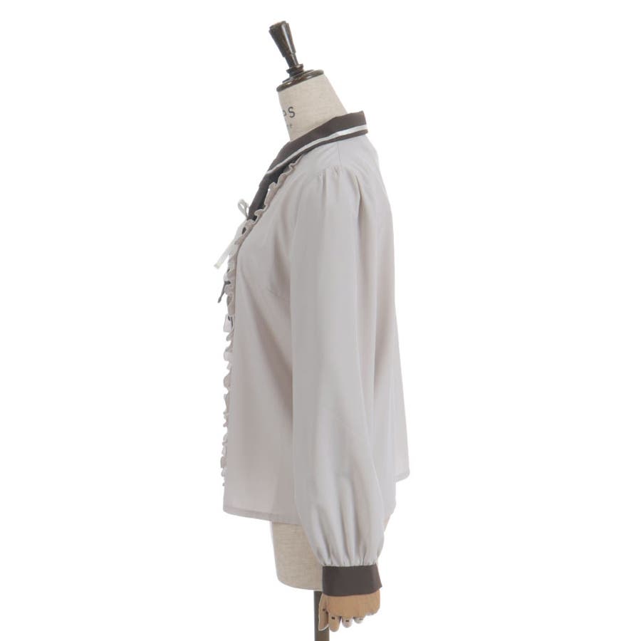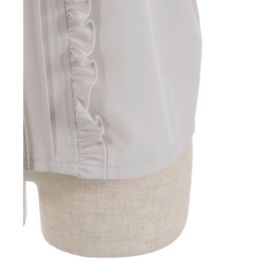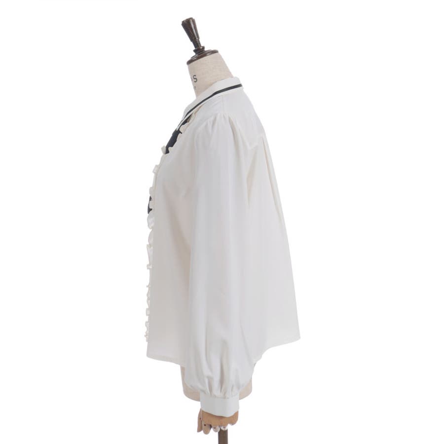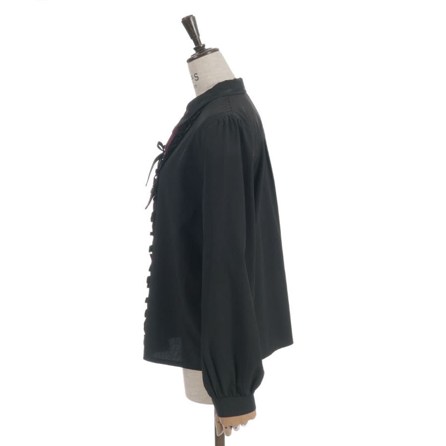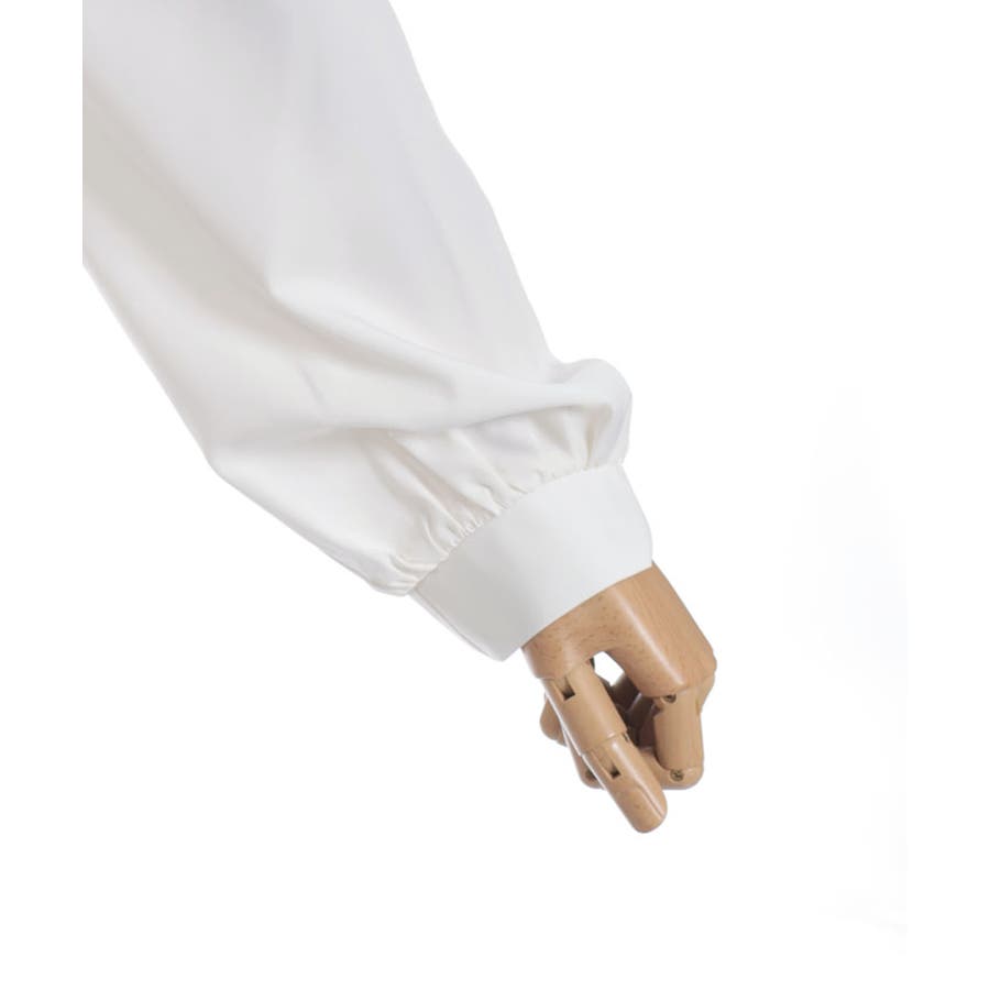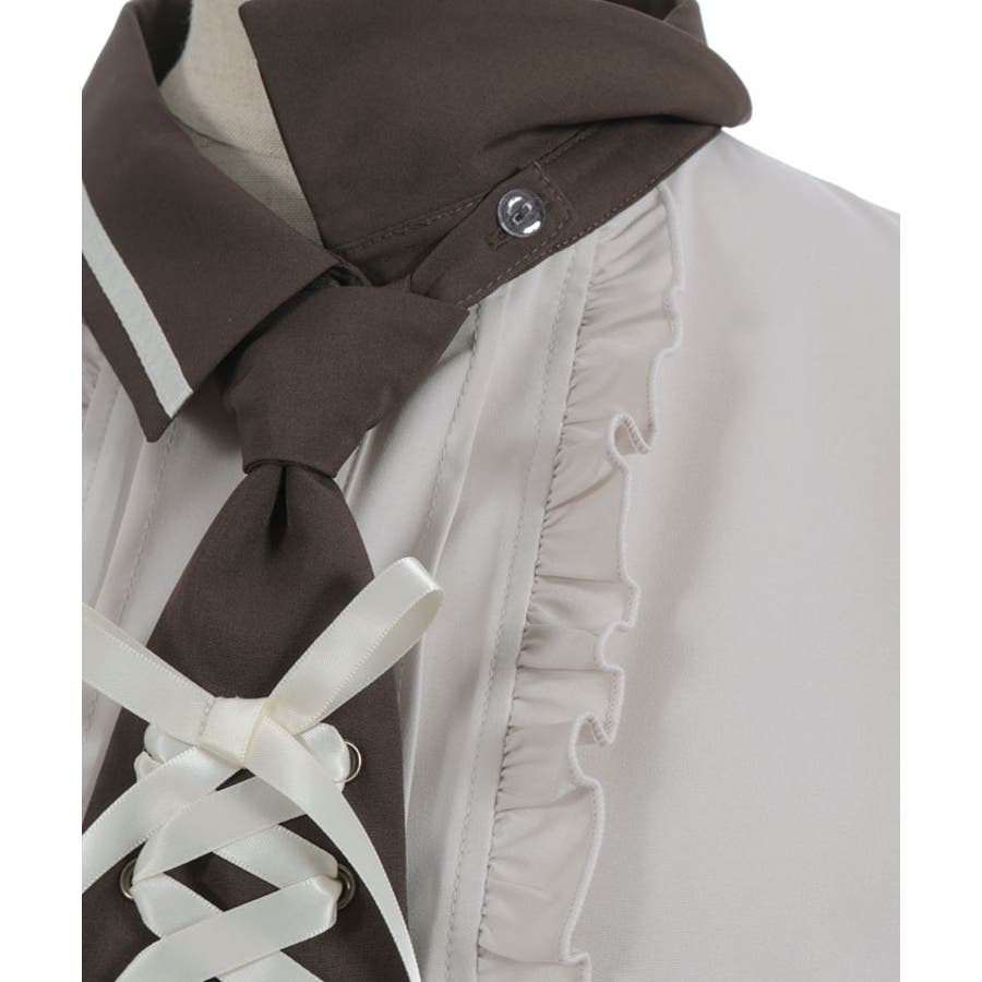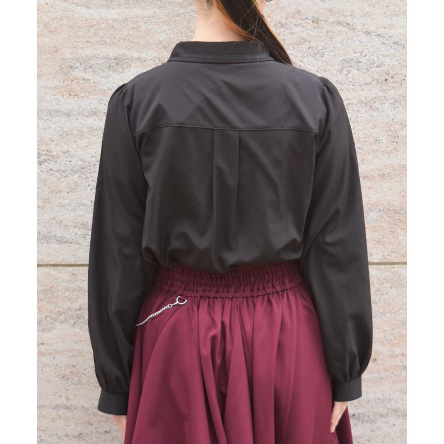身頃はシンプルにまとめているため着回しがしやすく、ネクタイとレースアップディテールがさりげないアクセントとして映えます。甘さを抑えた上品な印象で、オンにもオフにも取り入れやすい一着です。