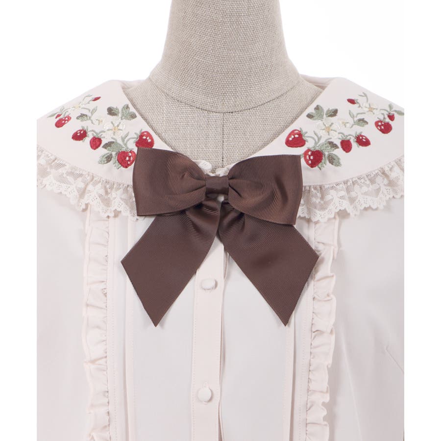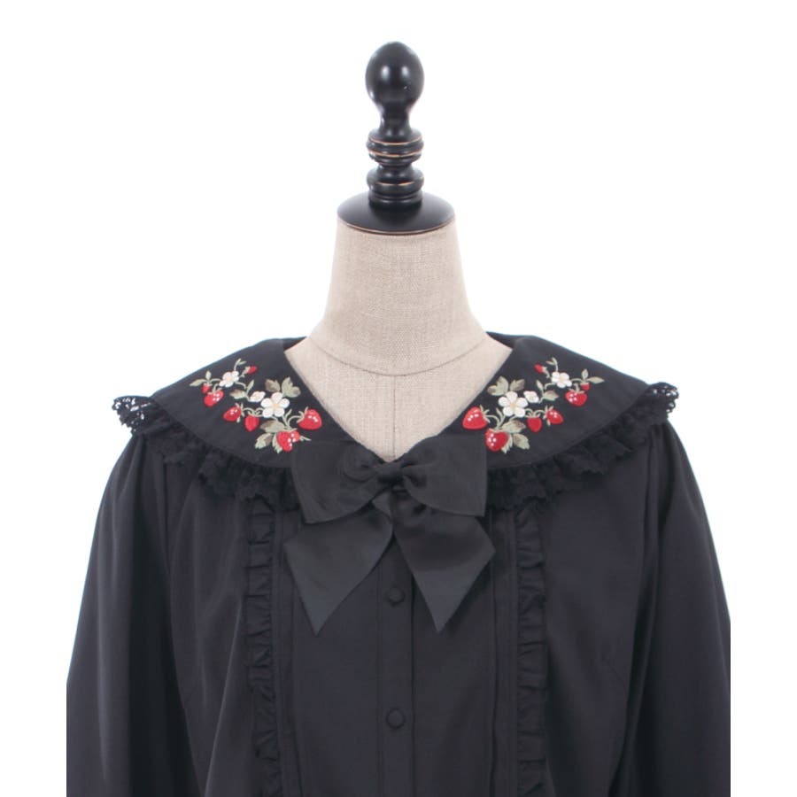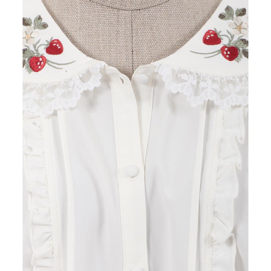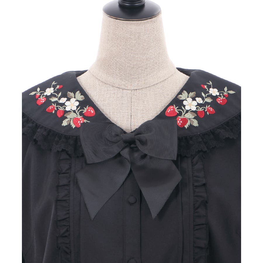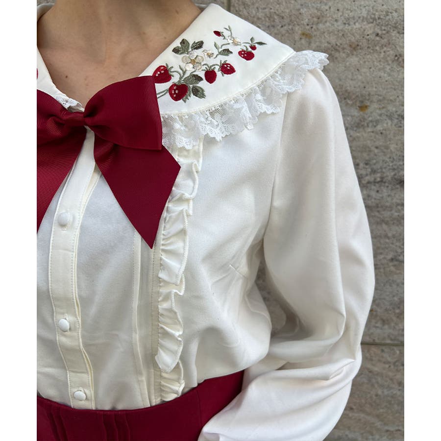 まるで苺畑の様にたっぷりと襟に苺の刺?をあしらって春らしいガーリーな1枚に仕上げました。