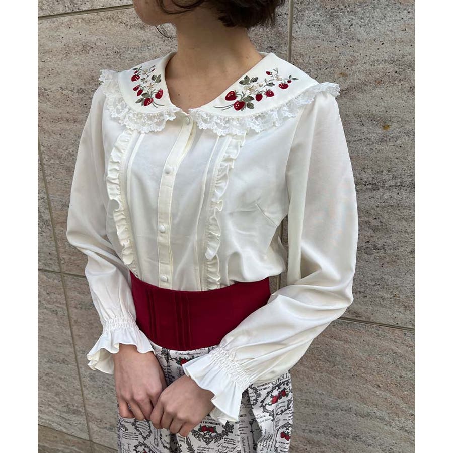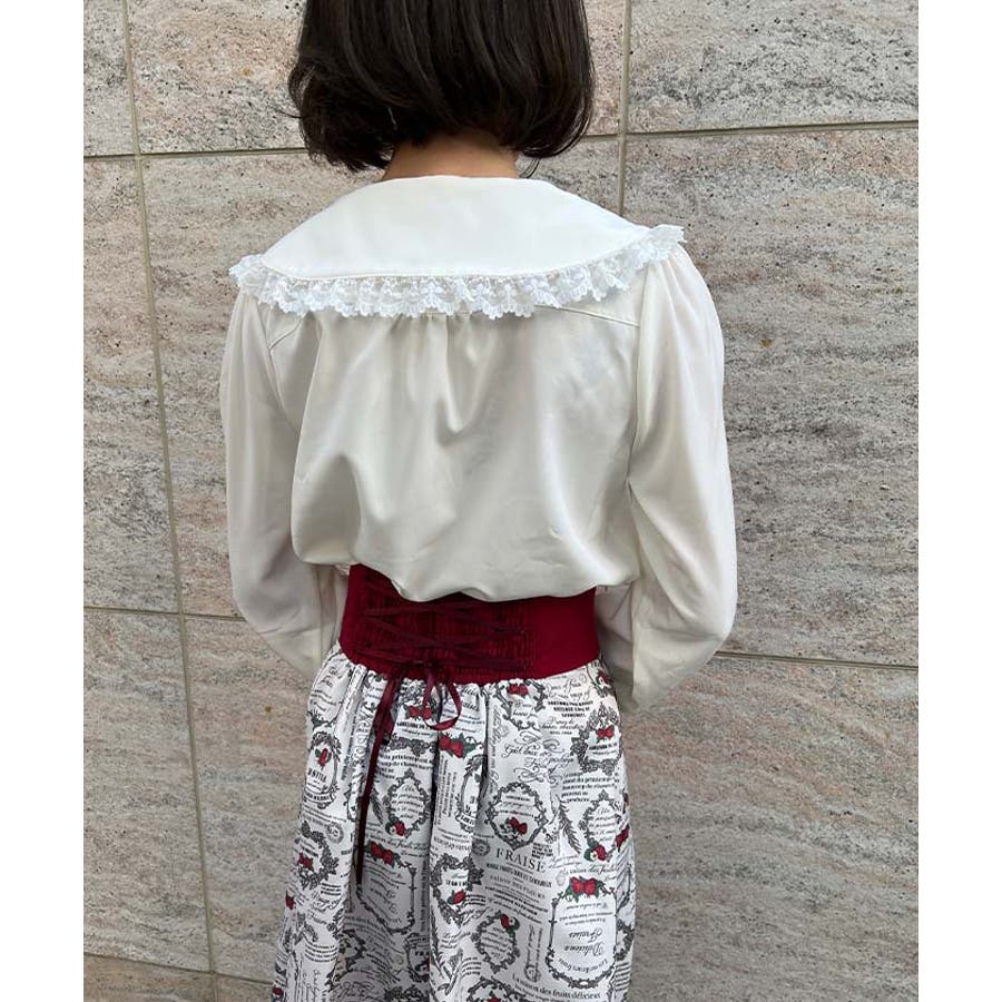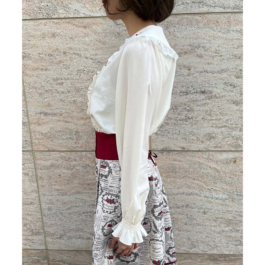 フリルやレースなどの可愛いポイントを詰め込んだブラウスです。