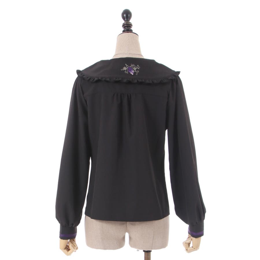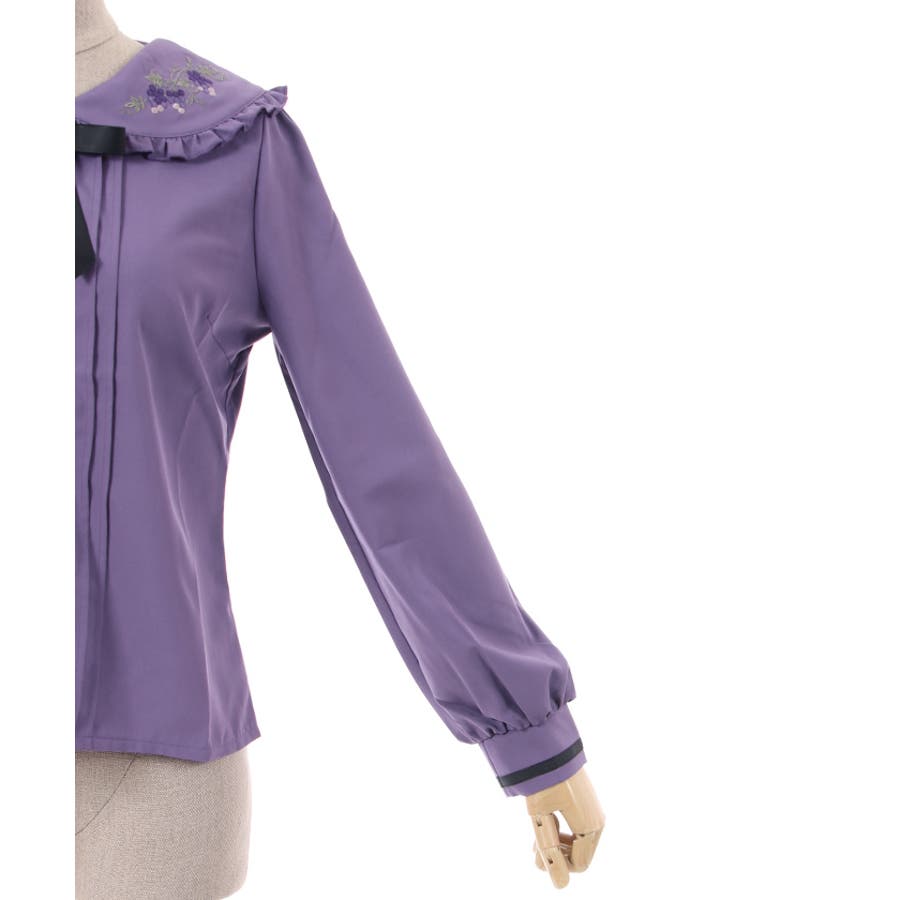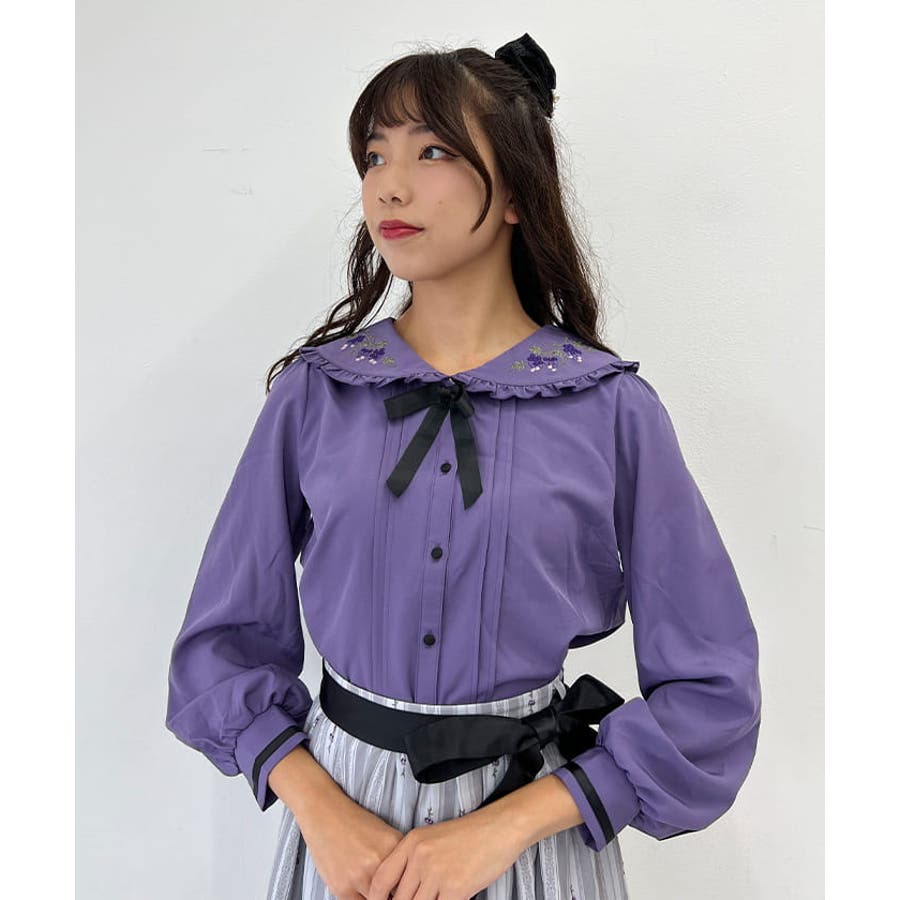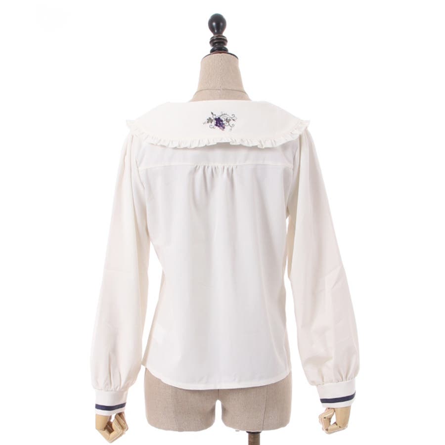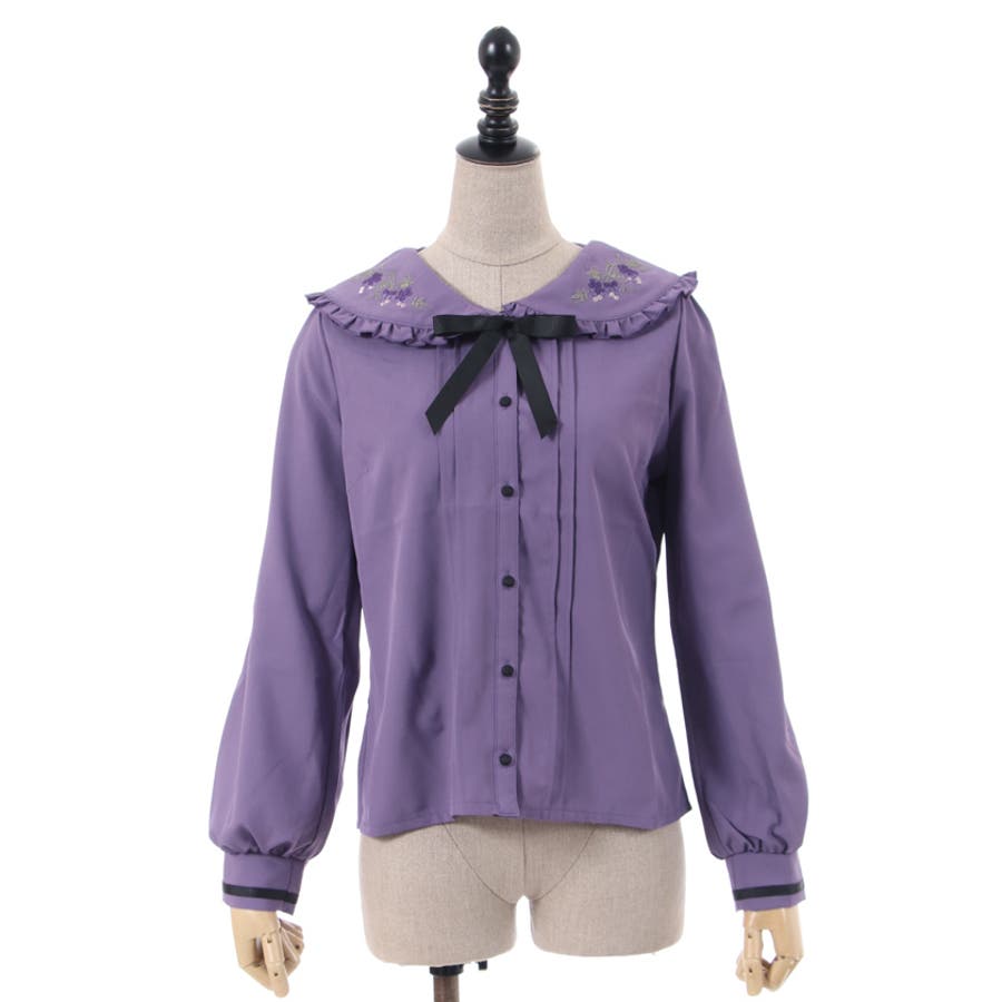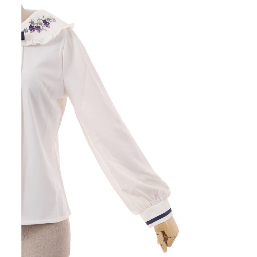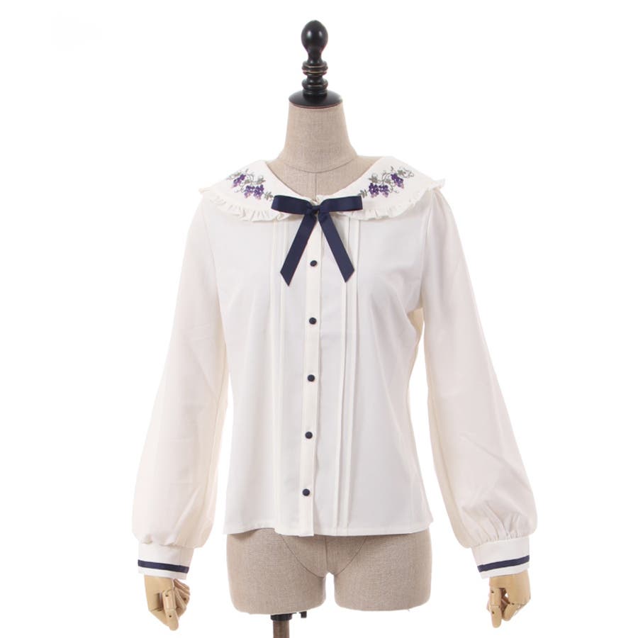 フランスの伝統行事であるワイン用ブドウの収穫期をイメージした刺繍が目を惹くブラウスです。