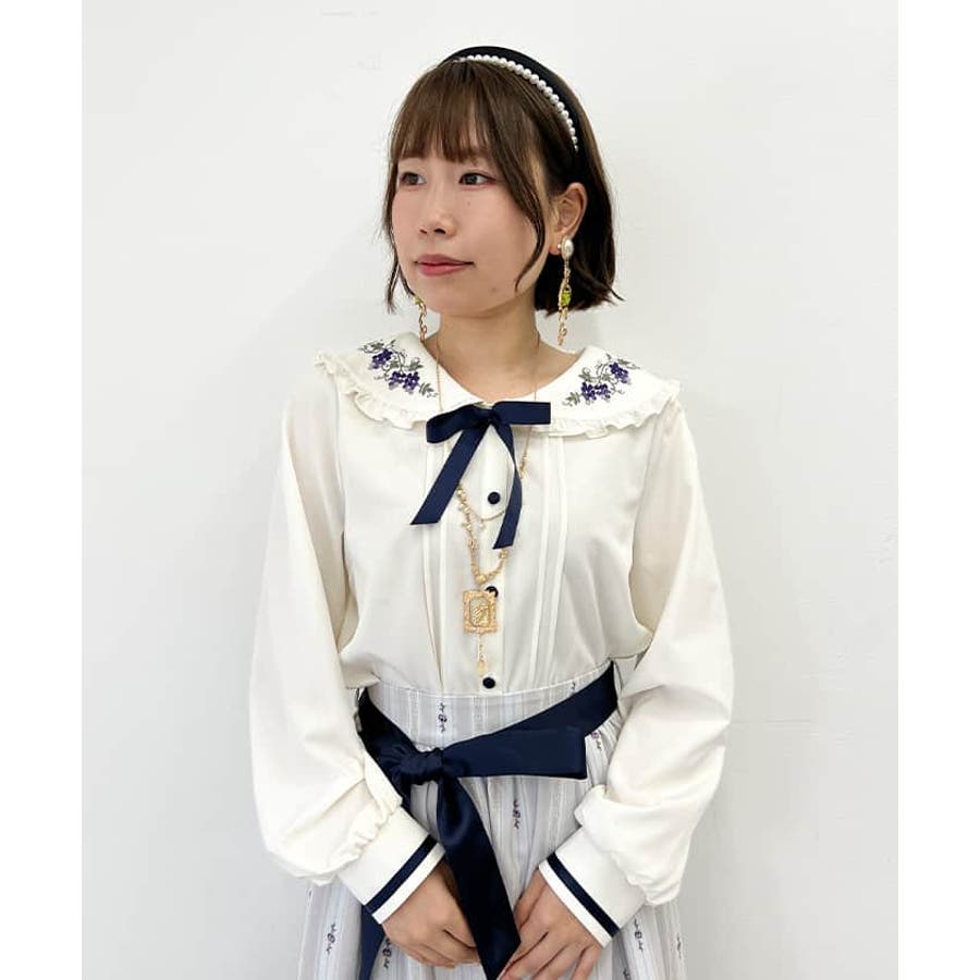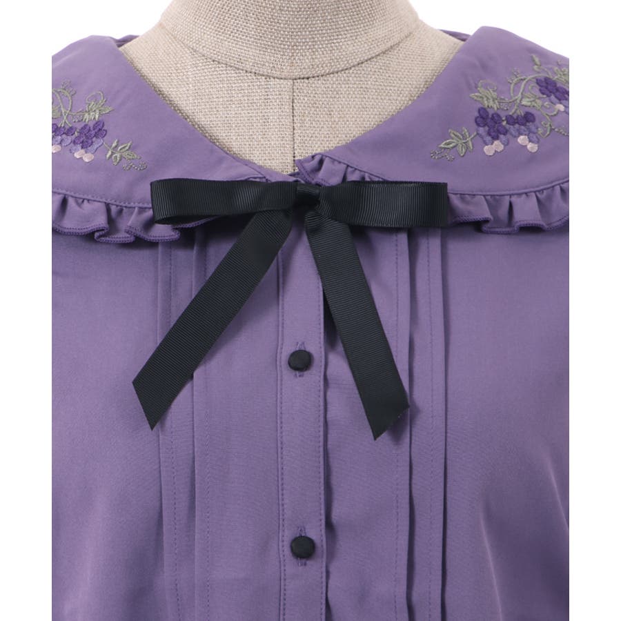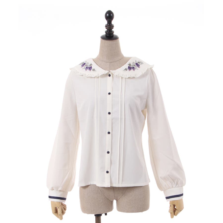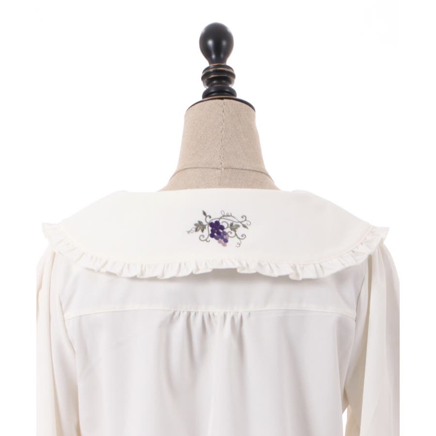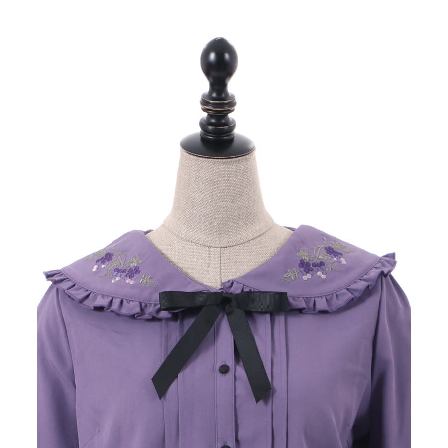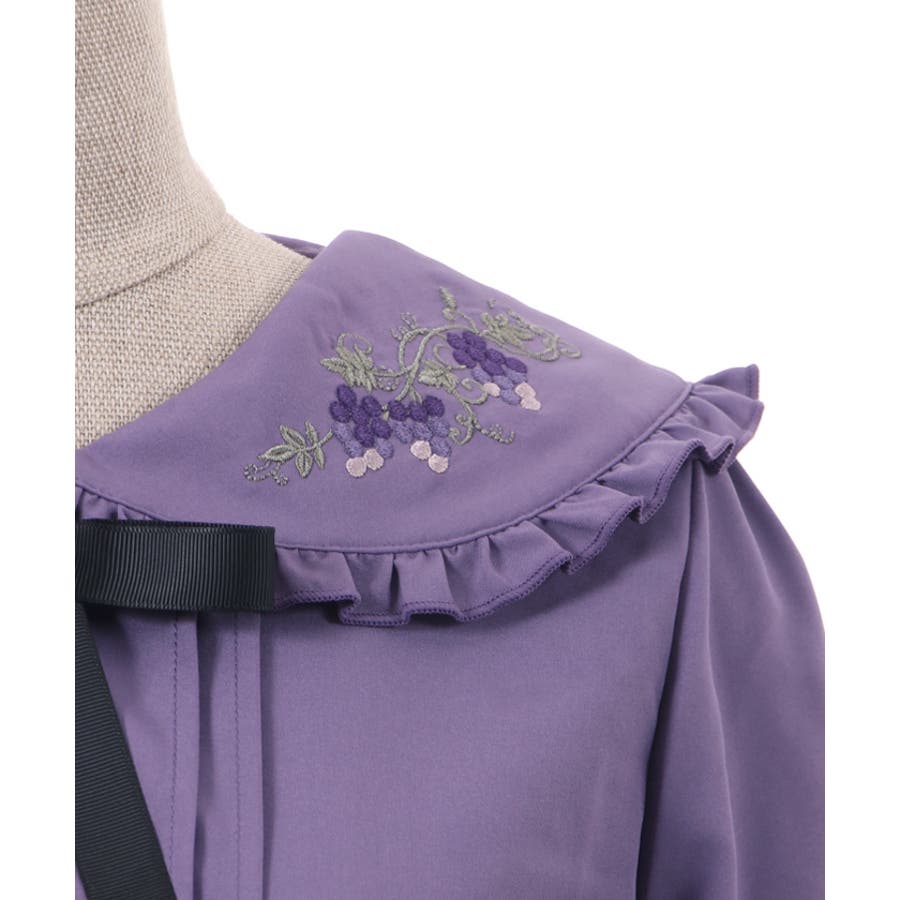 襟元を飾るブドウの刺繍が華やかなアイテム♪