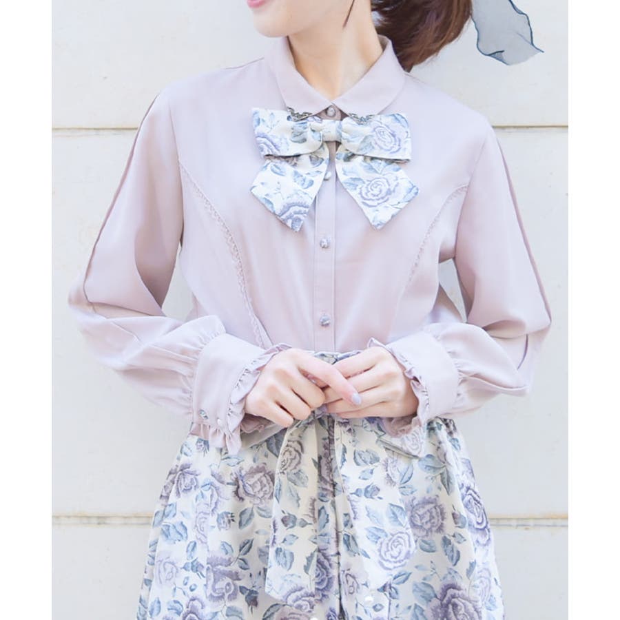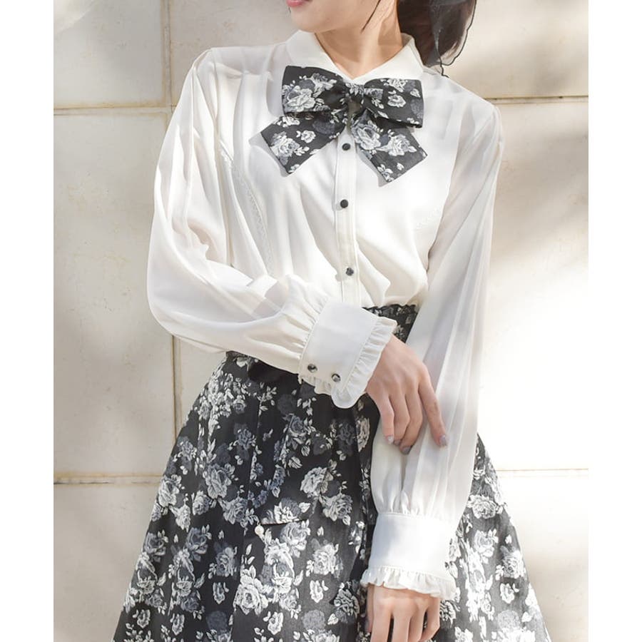ジャカードリボン付ブラウス