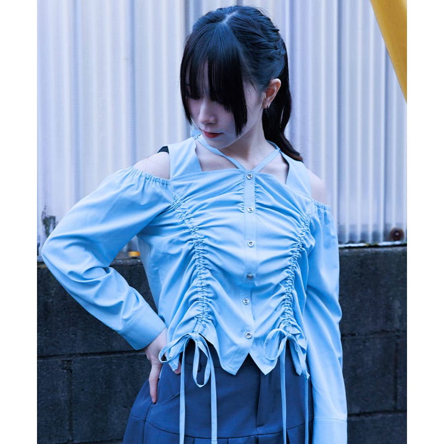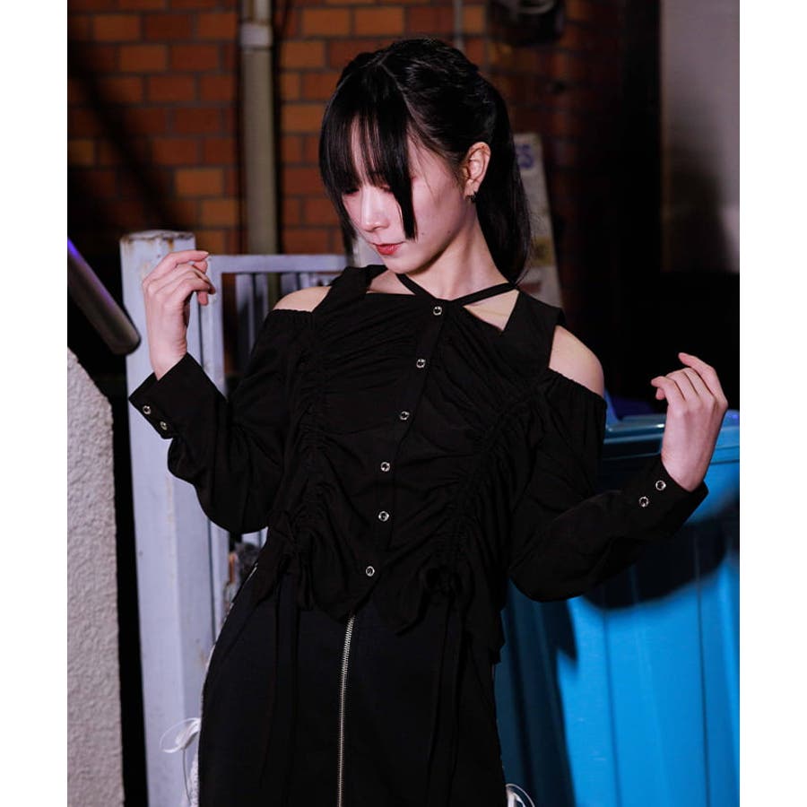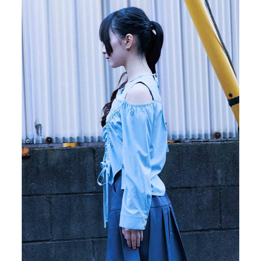 ドロストデザイン肩あきブラウス