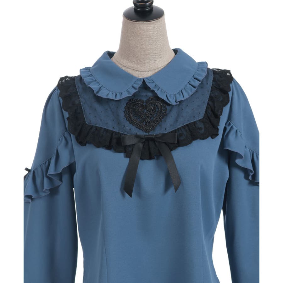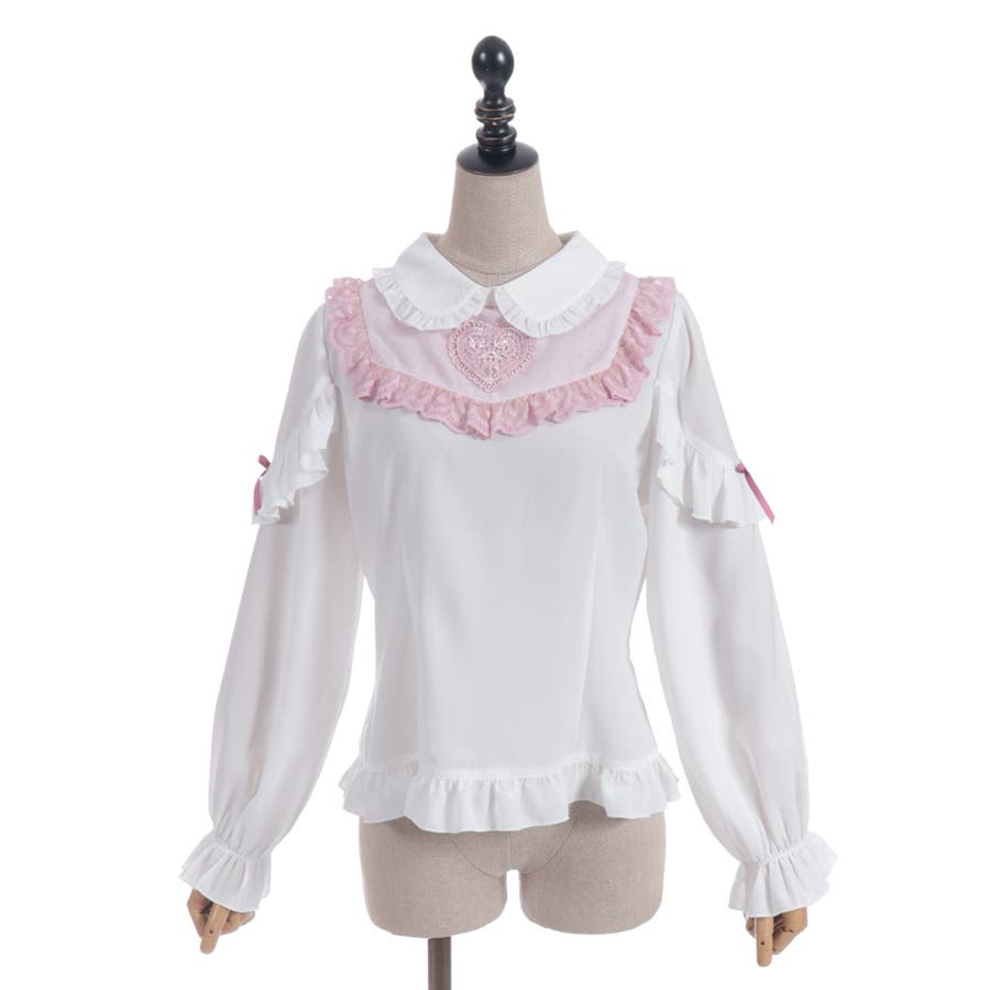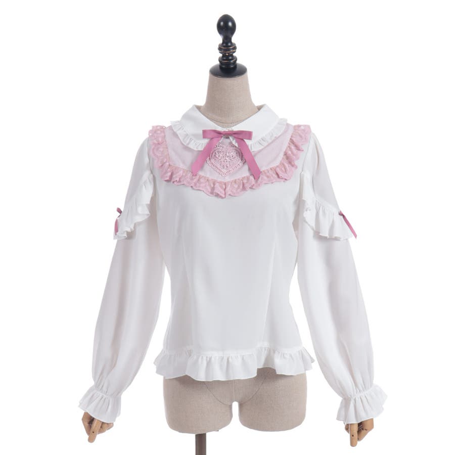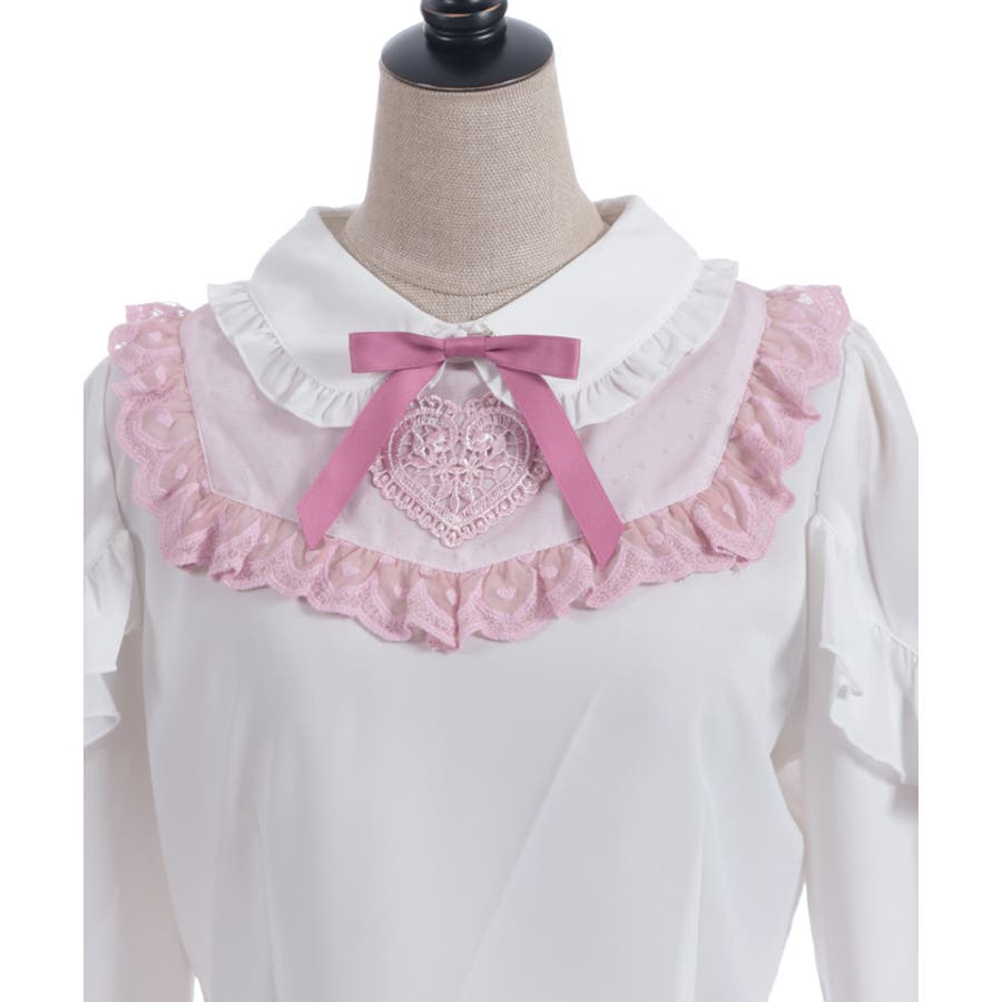 胸元にあしらったハートモチーフのレースが目を惹くブラウスです。