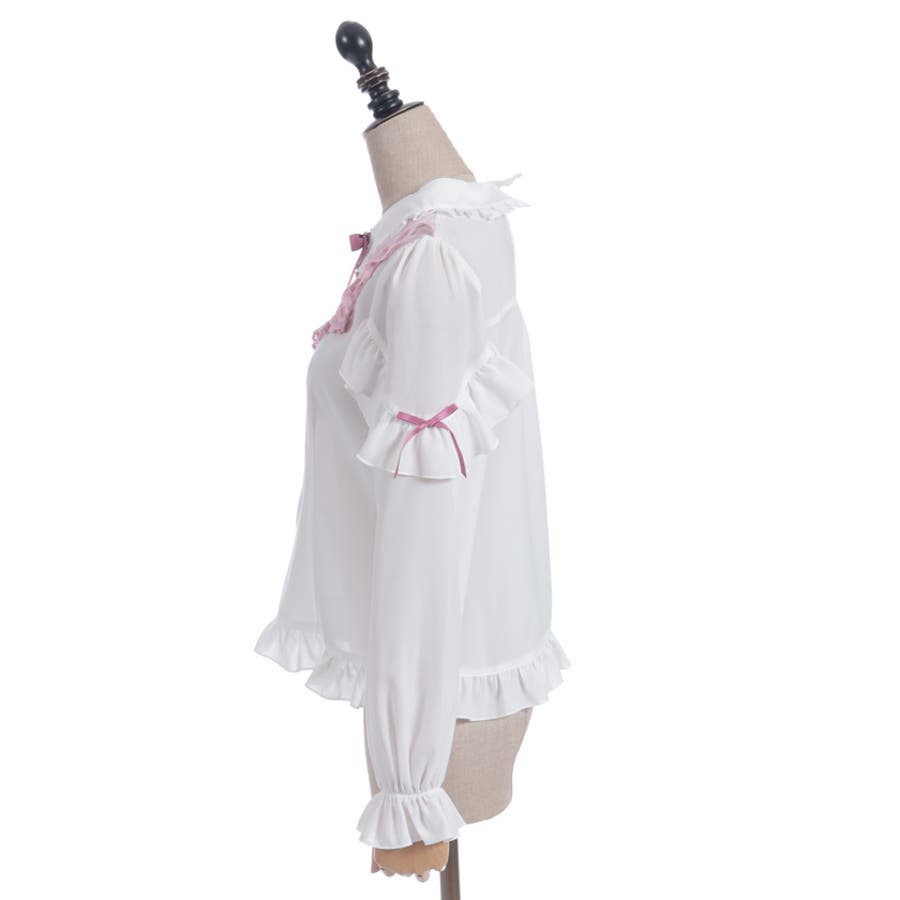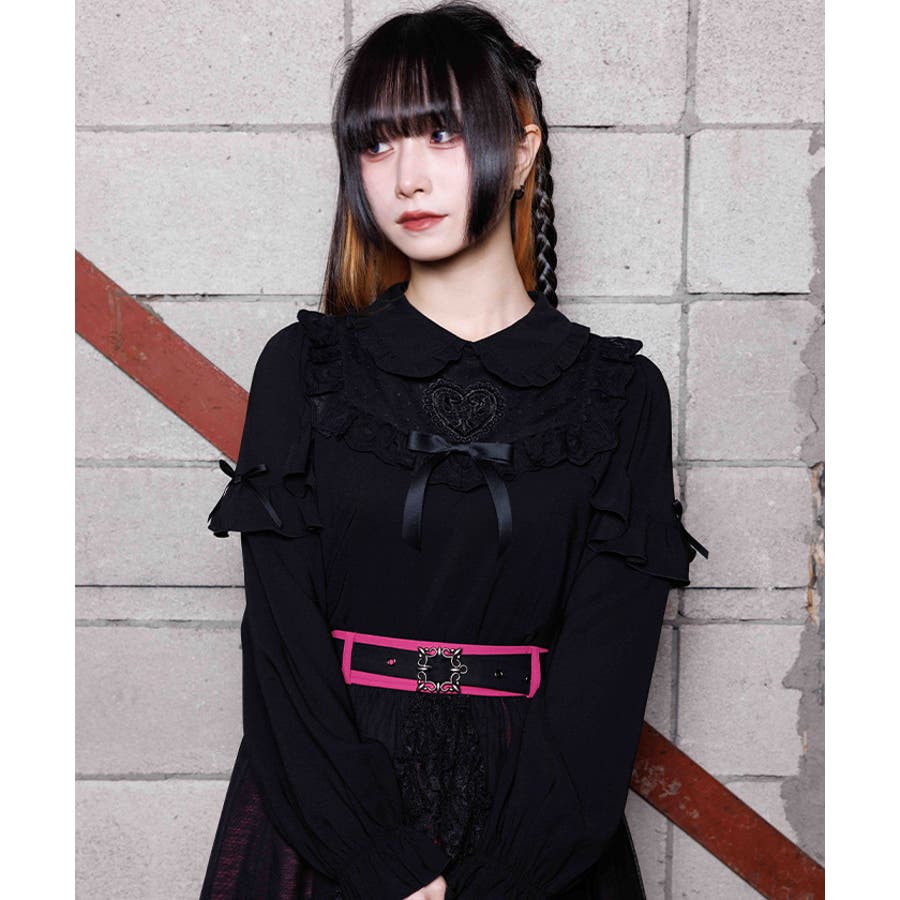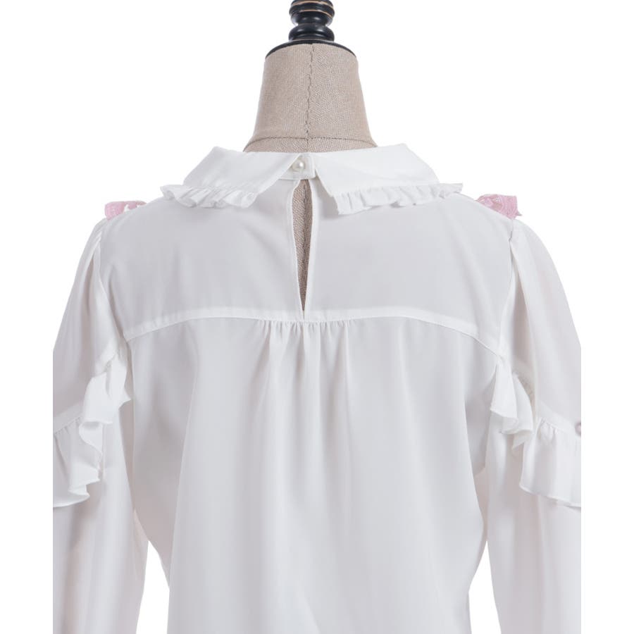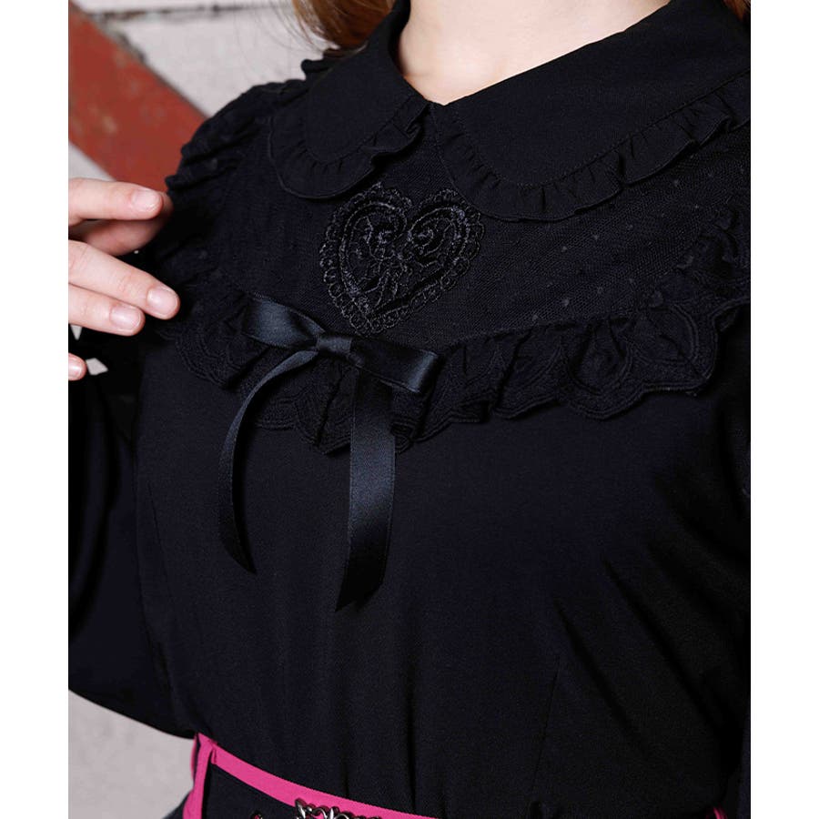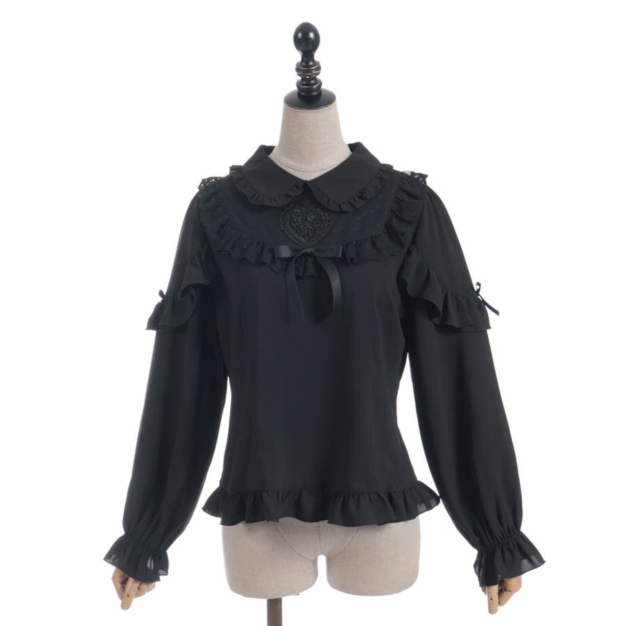 胸元にあしらったハートモチーフのレースが目を惹くブラウスです。