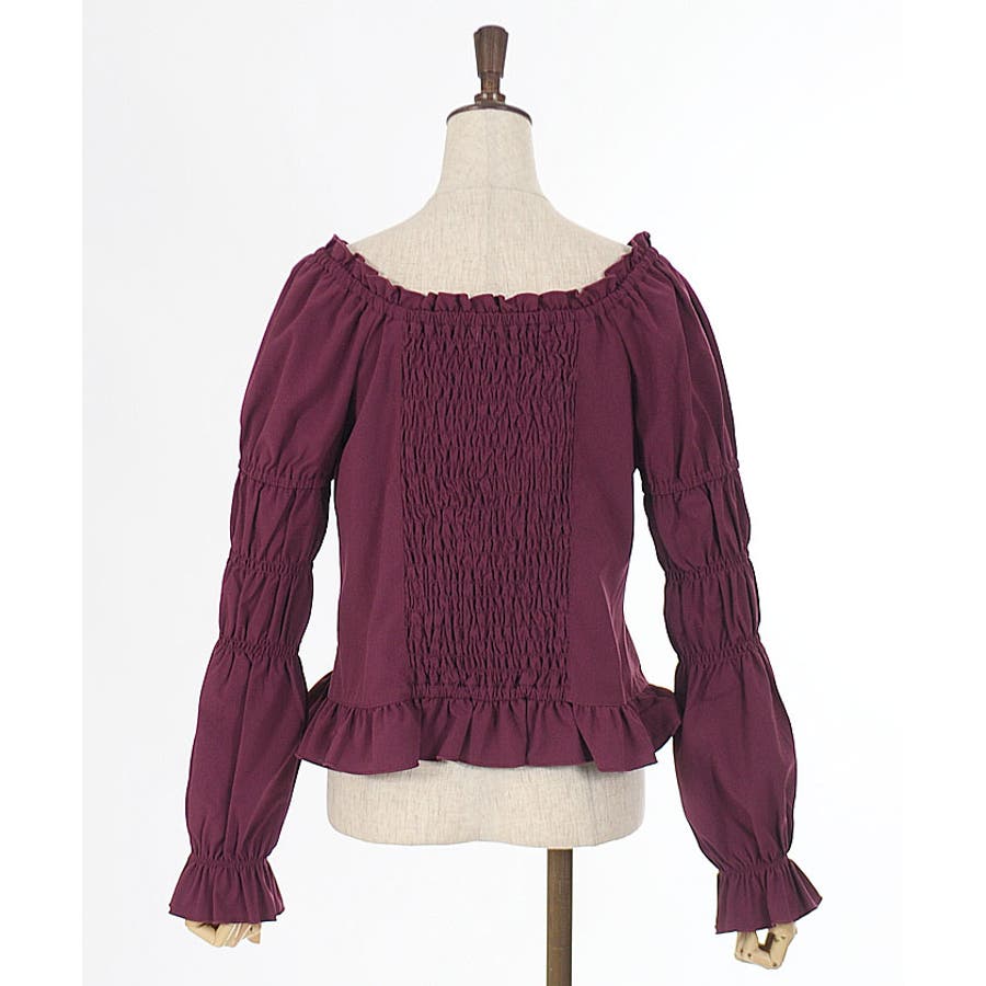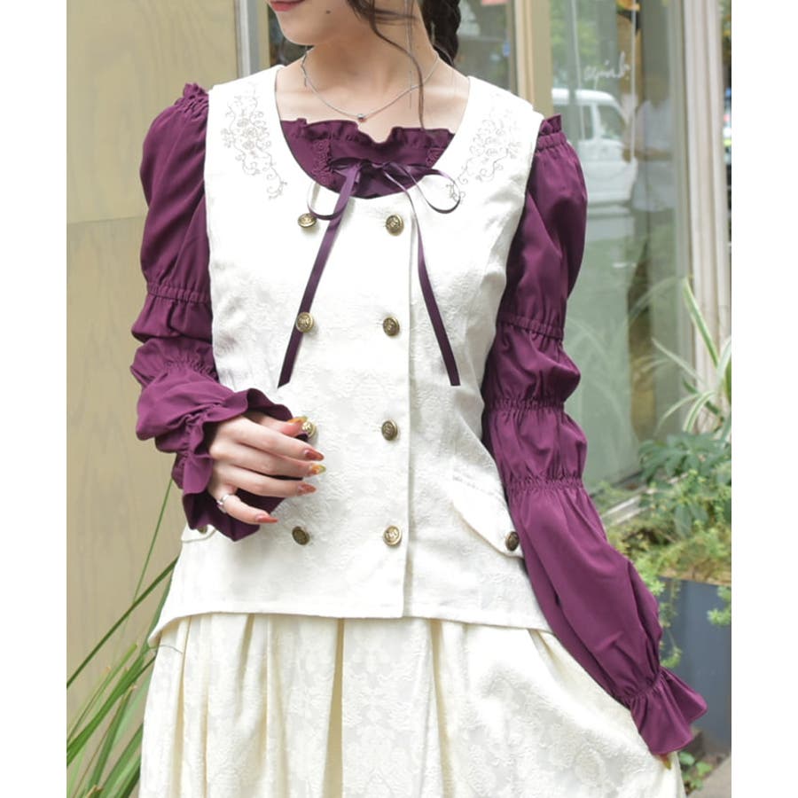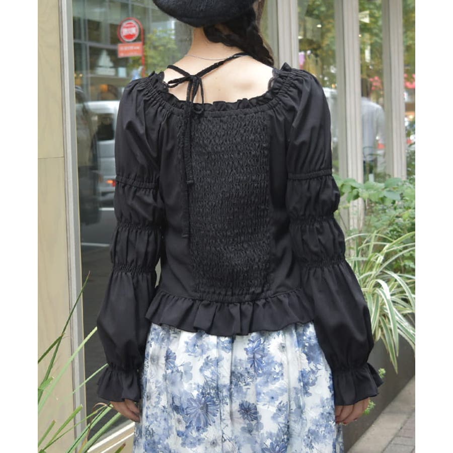 表面のシワ感や袖のパフスリーブが優美なデザイン。
