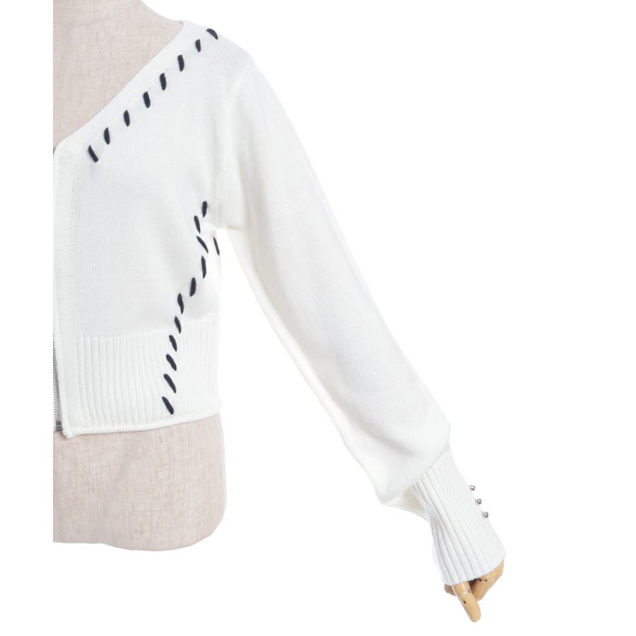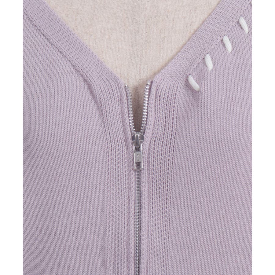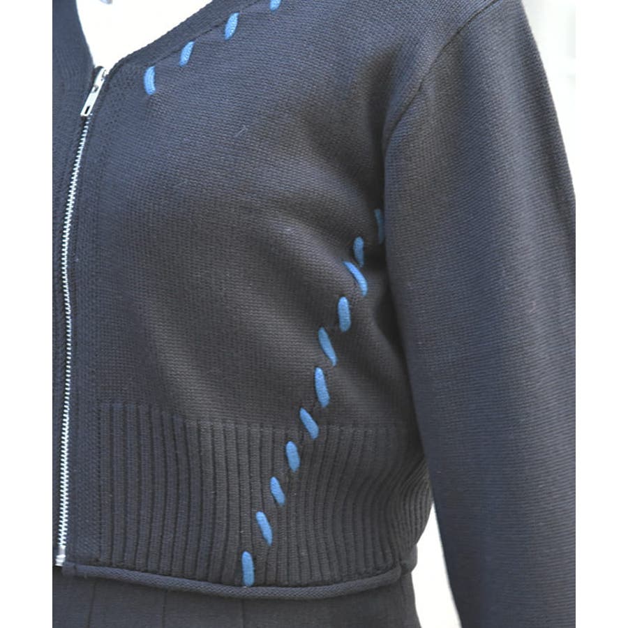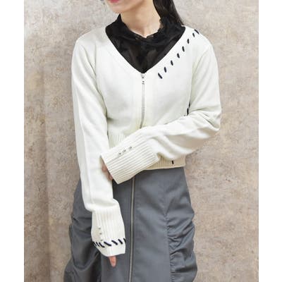 ジップ付ステッチショートカーディガン