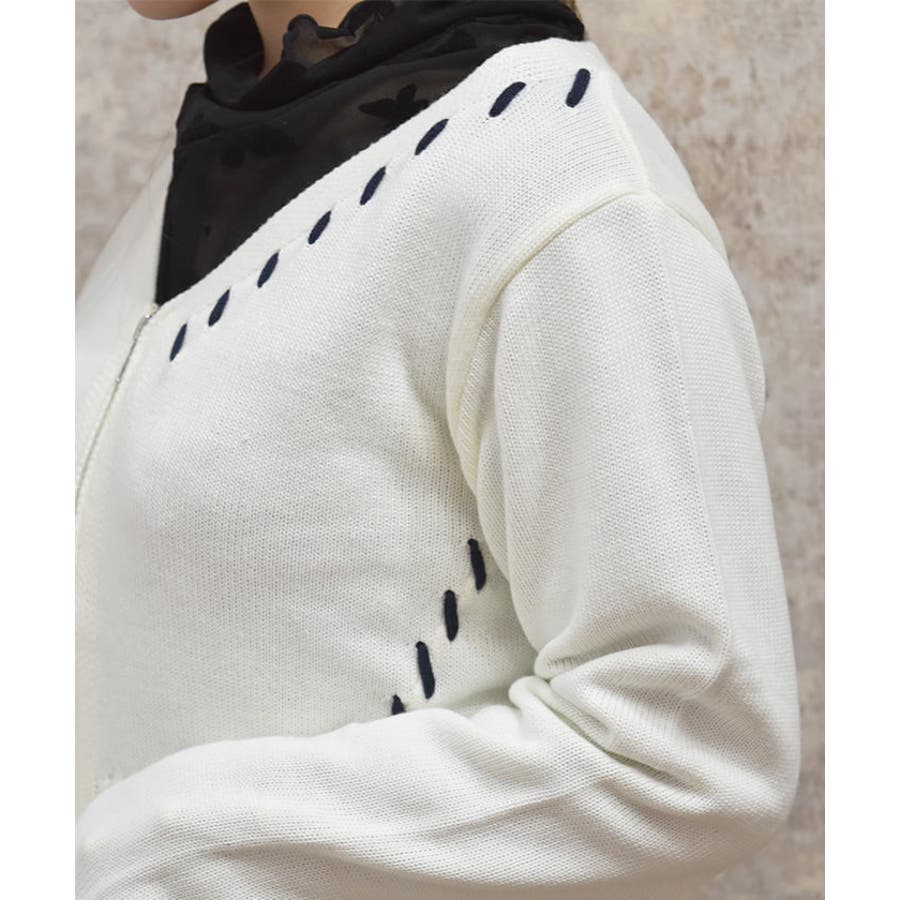 配色感のあるステッチデザインをあしらったカーディガンです。