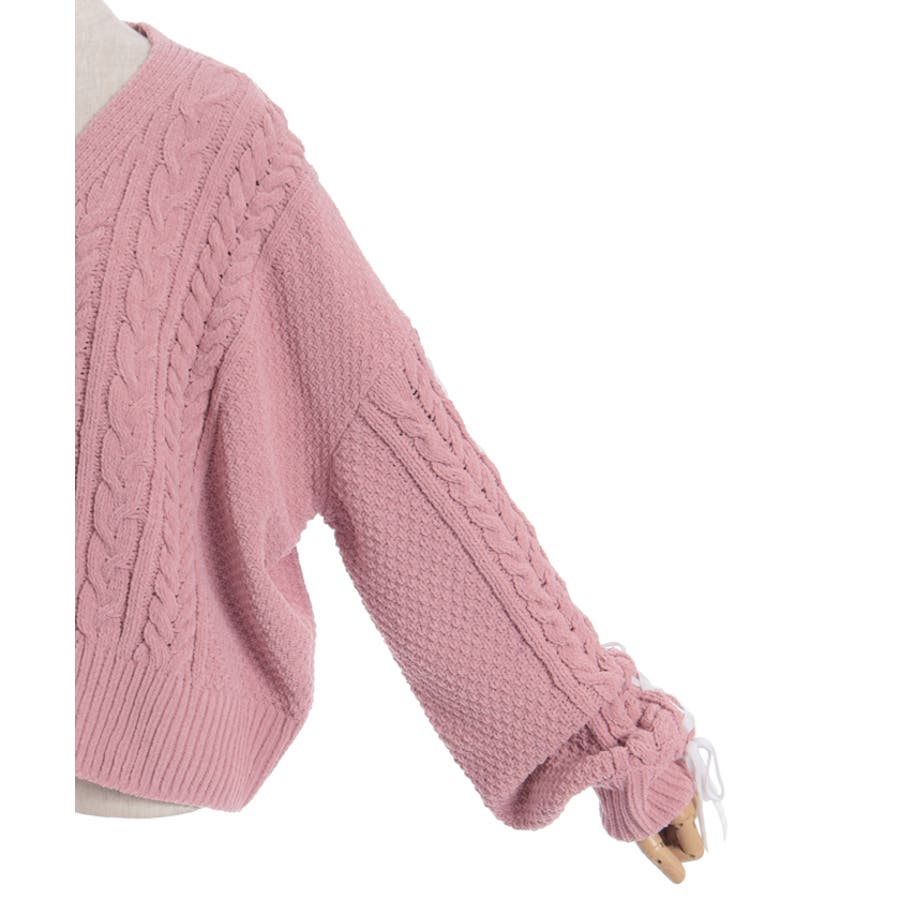 毎年大人気!編み上げデザインのべロアモールニットカーディガン