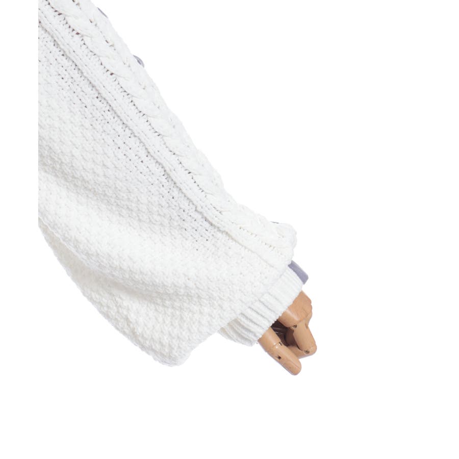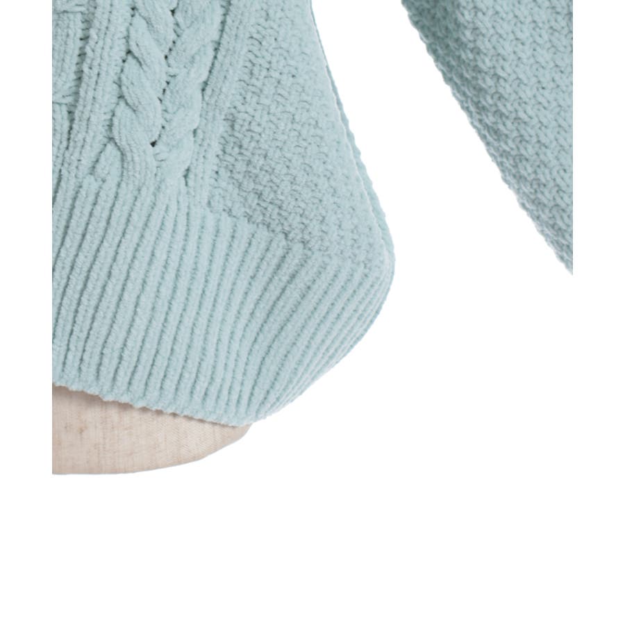なめらかでもちもちとした肌触りの良いモールヤーンで、見た目も着心地もほっこりあたたかなアイテム。