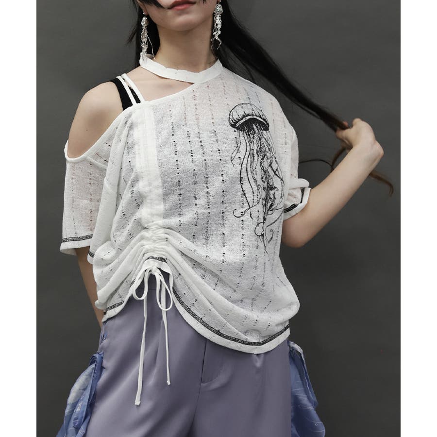クラゲプリントアシメプルオーバー