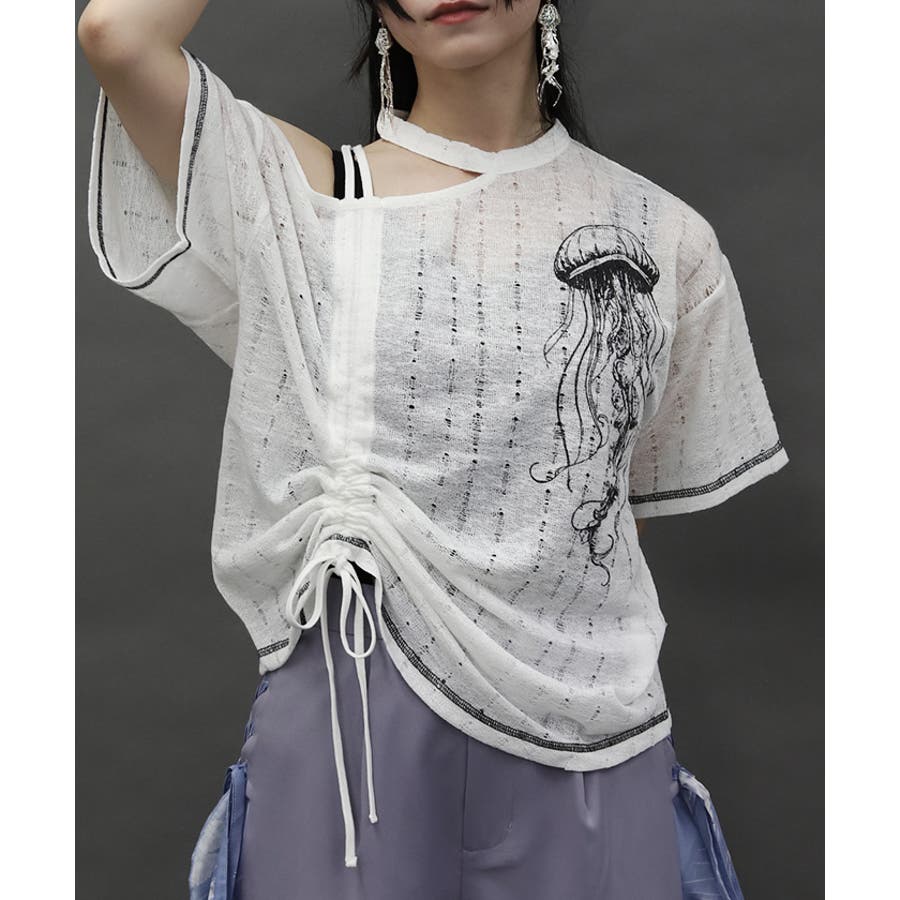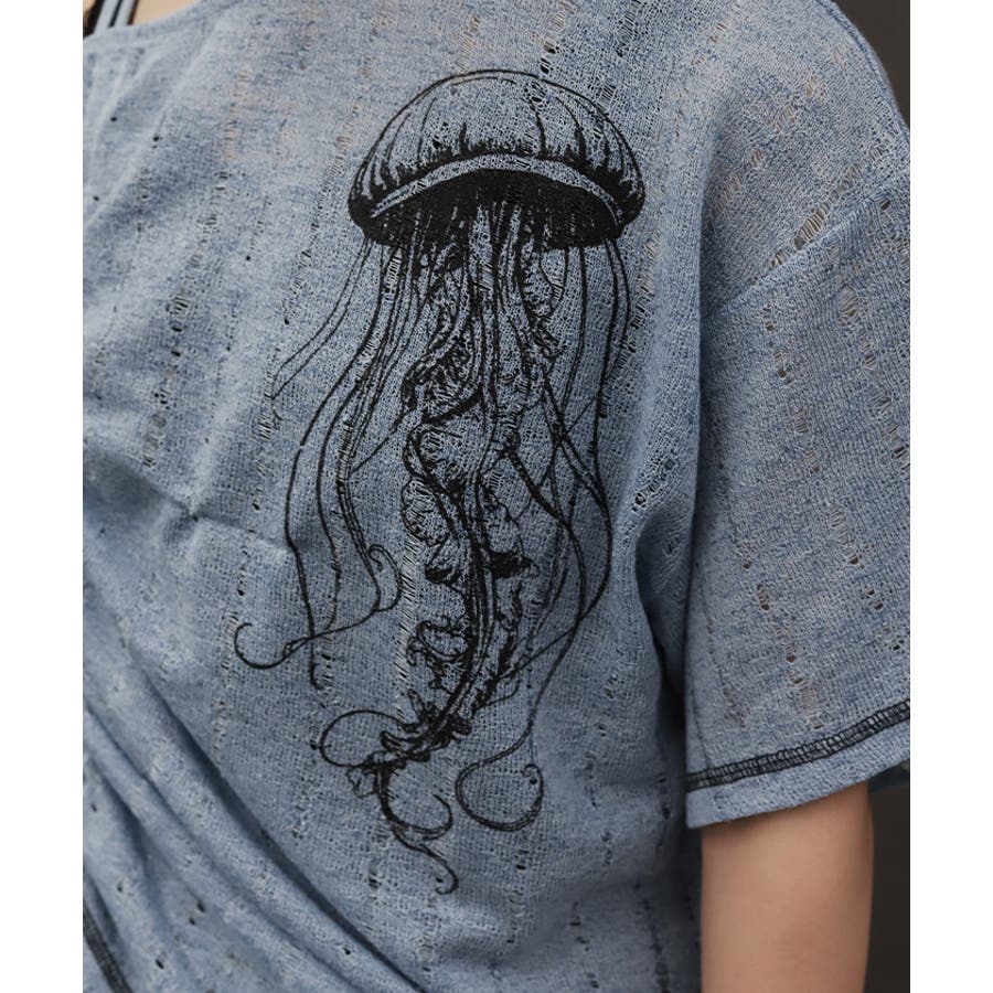 大胆にクラゲをプリントしたカットプルオーバーです。