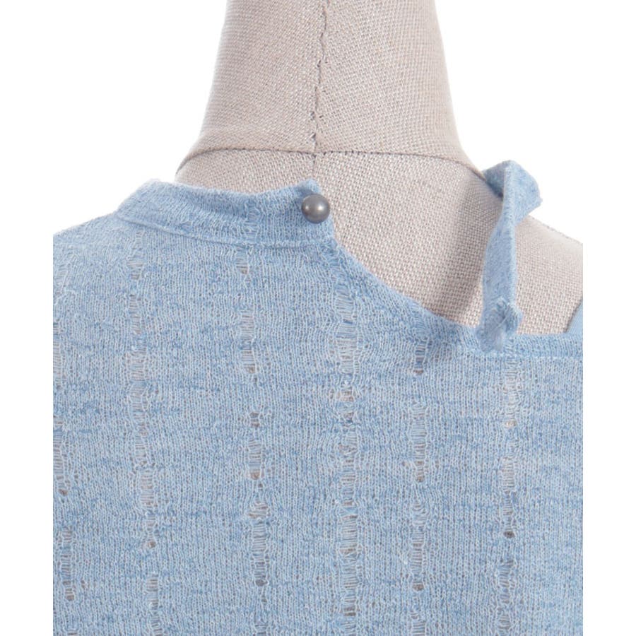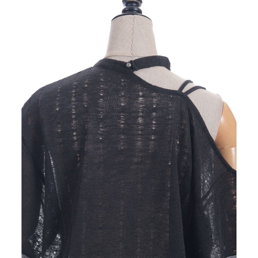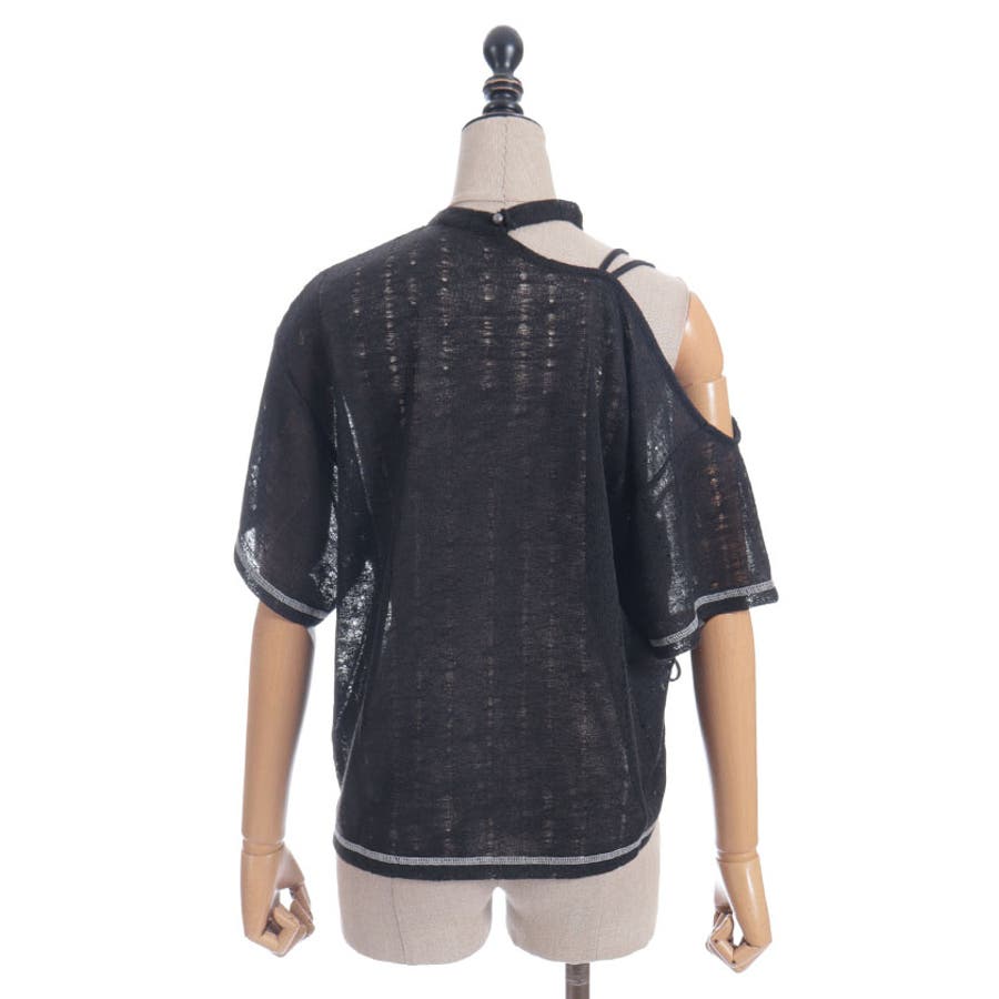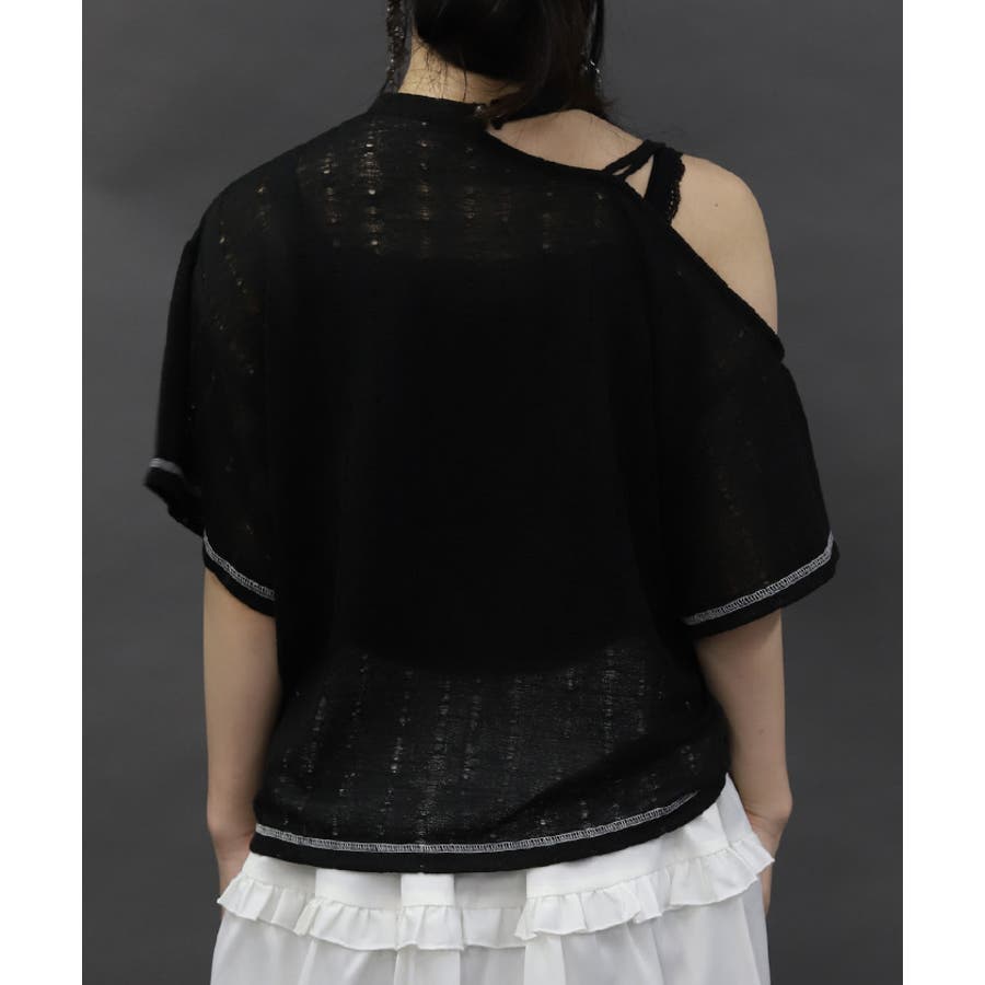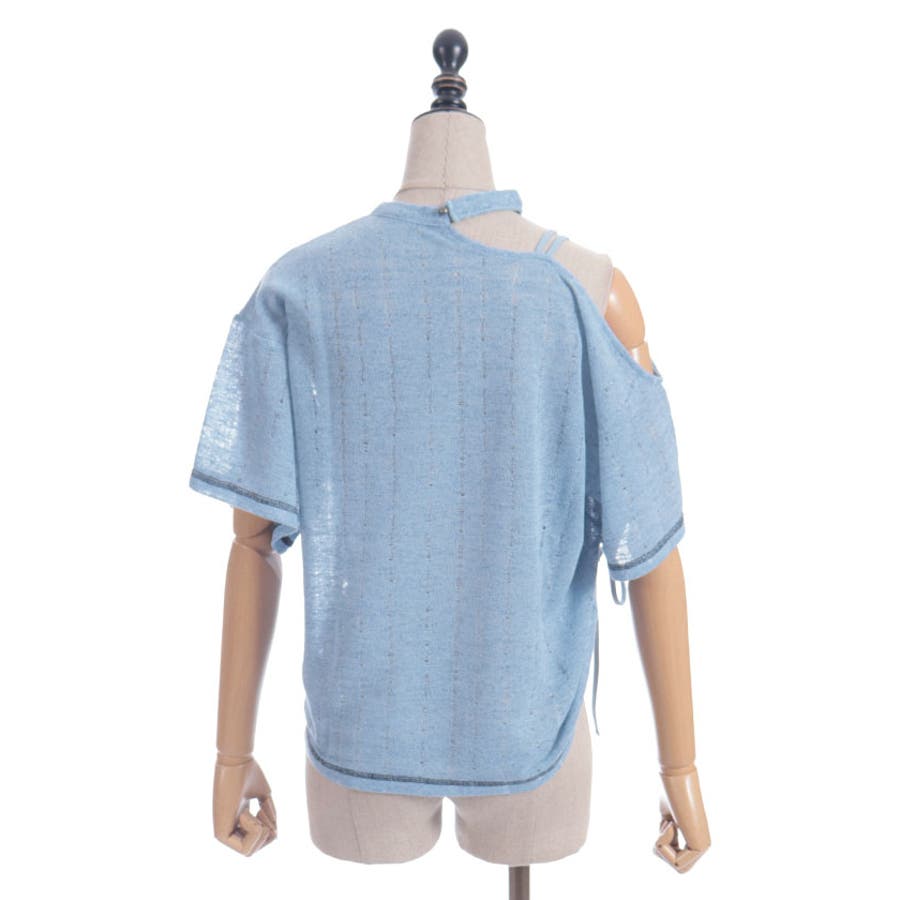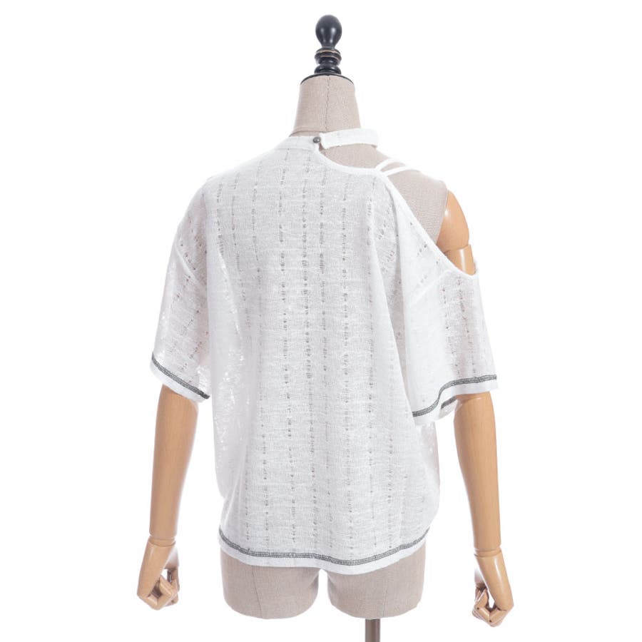 アシンメトリーな襟元がヘルシーな肌見せが叶うデザインになっています。