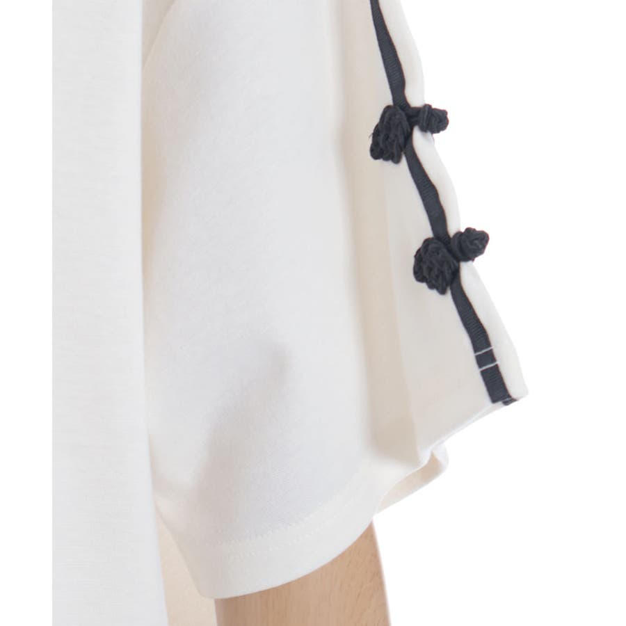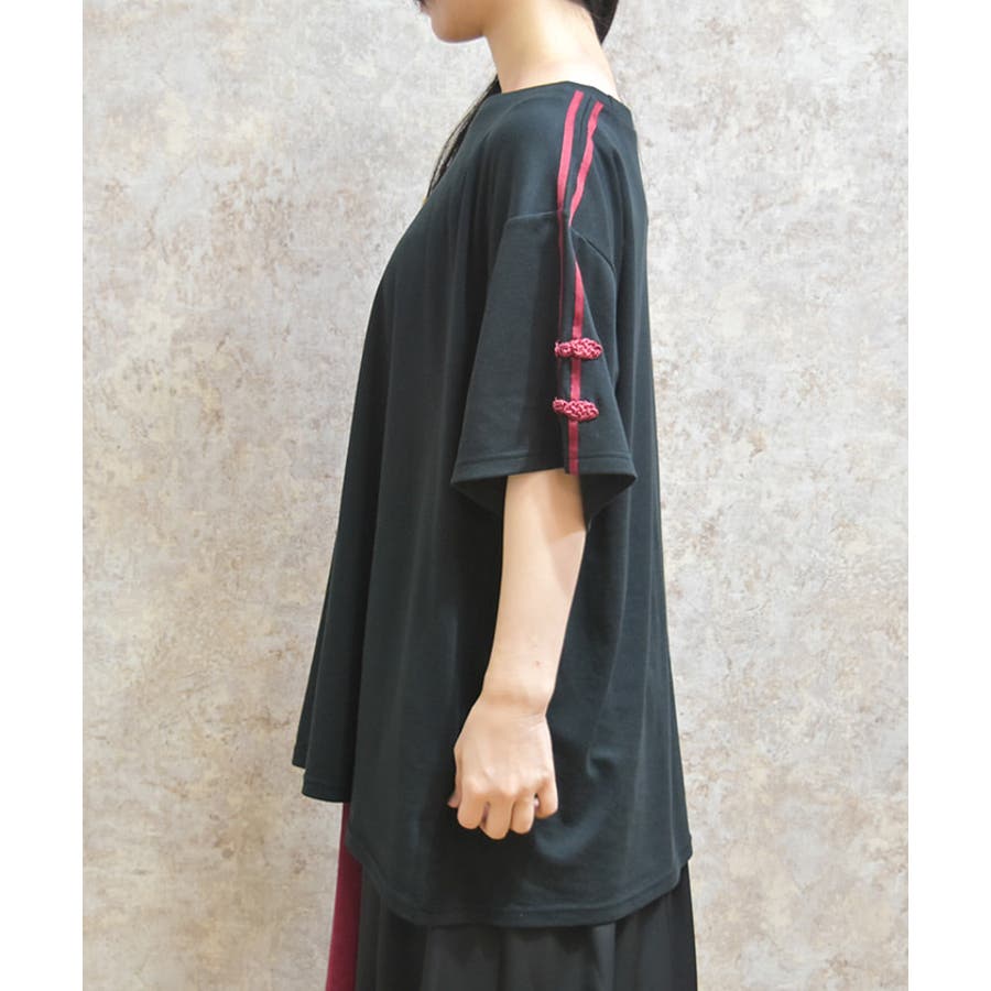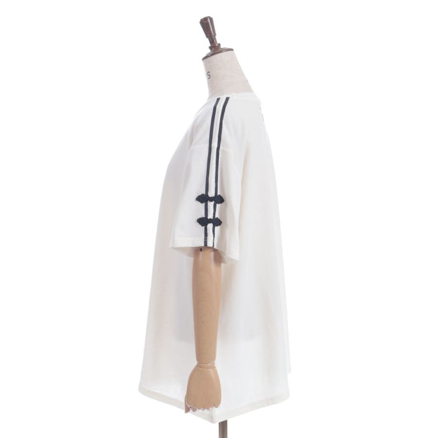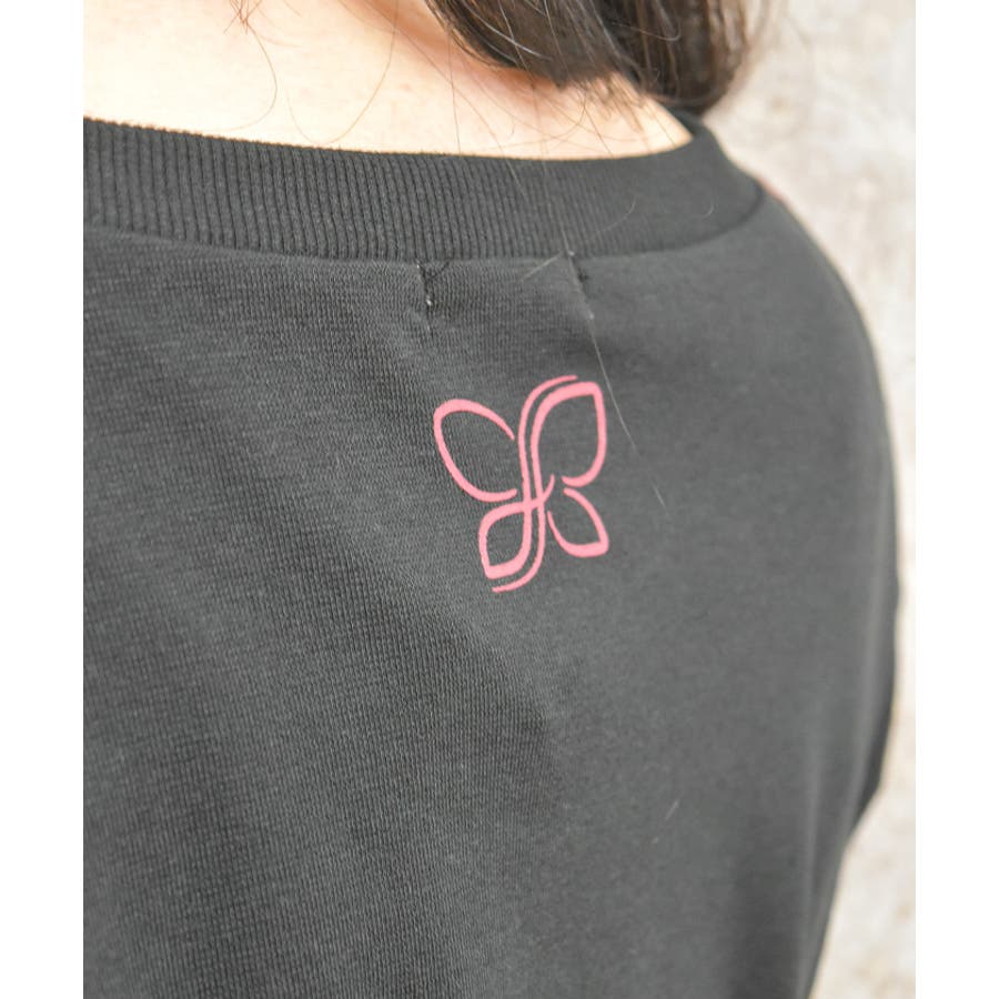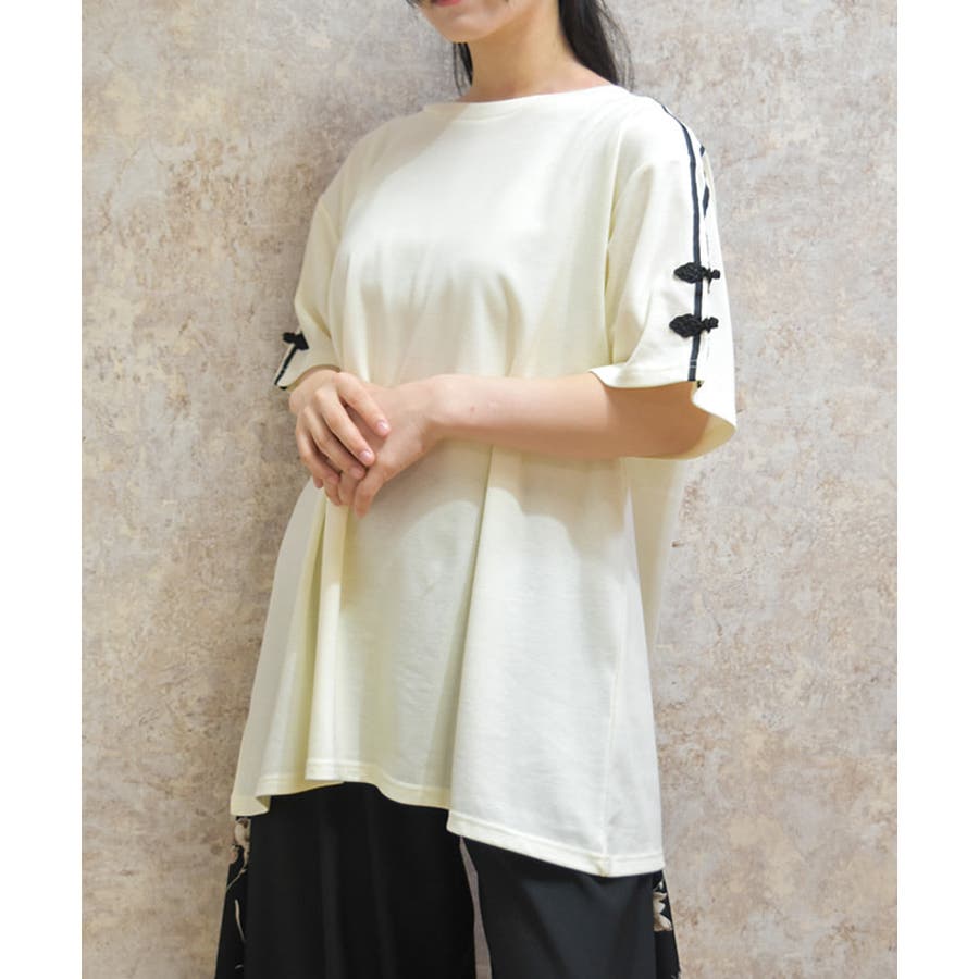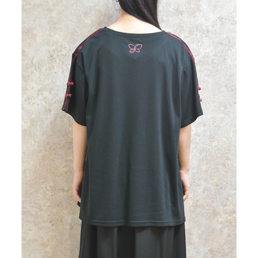 袖口のチャイナ釦×ラインデザインと、バックにあしらったバタフライプリントが程よいアクセントになった、使いやすさ抜群のオーバーサイズトップスです。