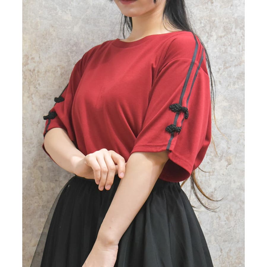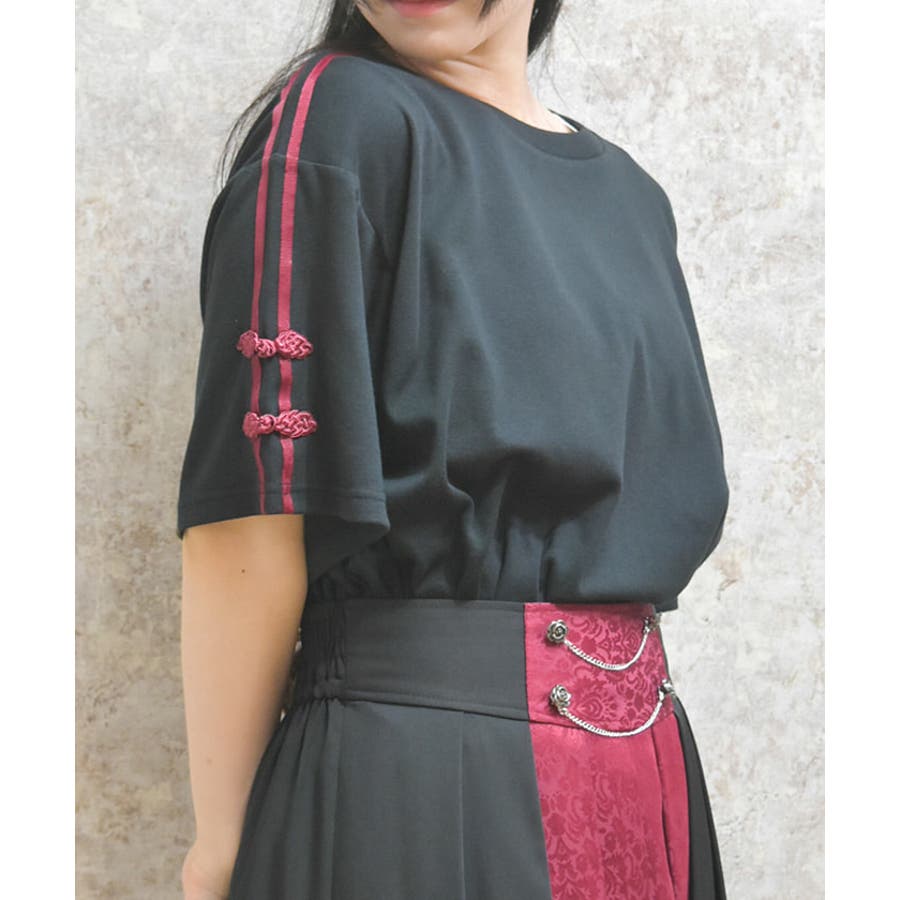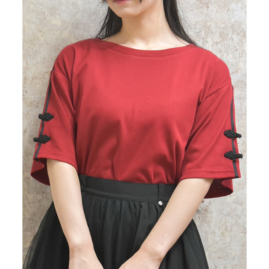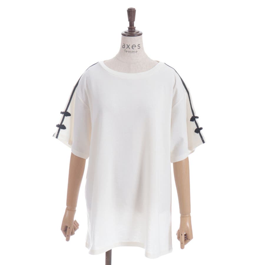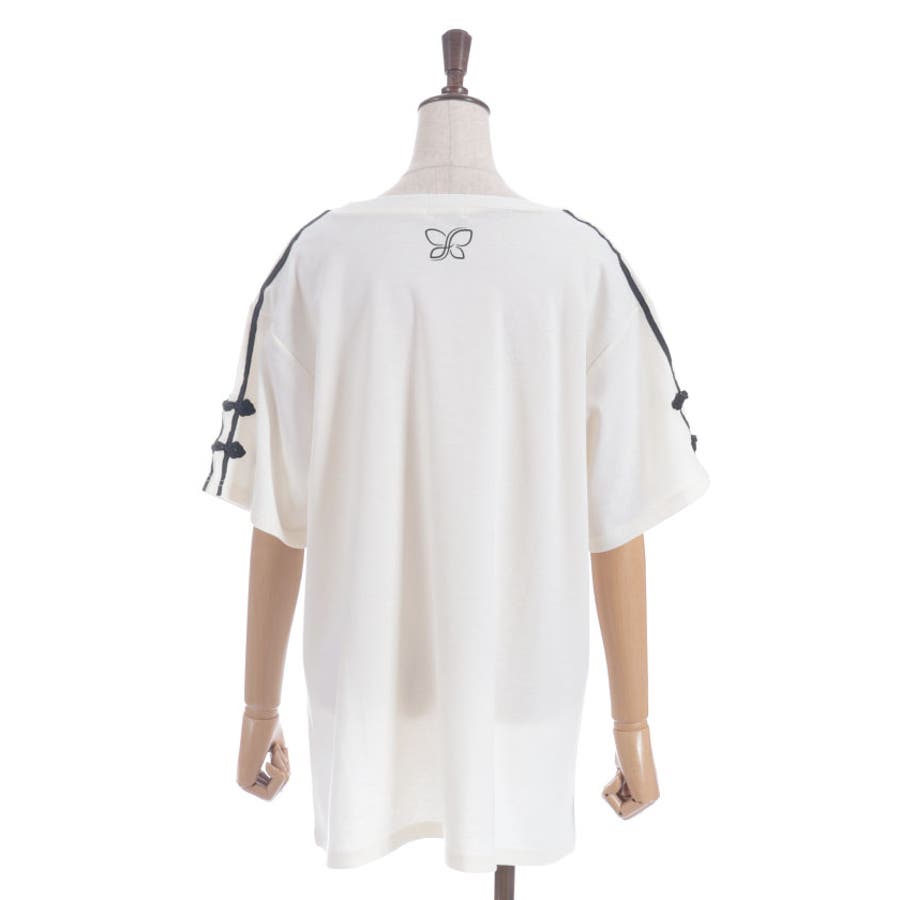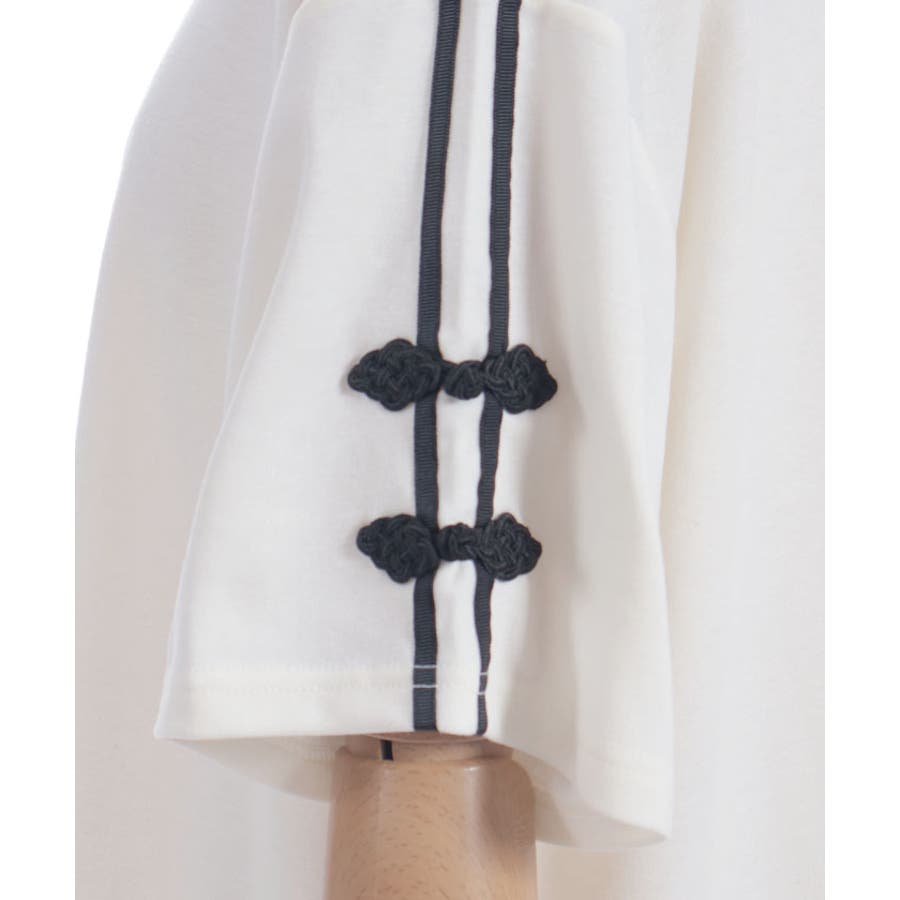袖口のチャイナ釦×ラインデザインと、バックにあしらったバタフライプリントが程よいアクセントになった、使いやすさ抜群のオーバーサイズトップスです。