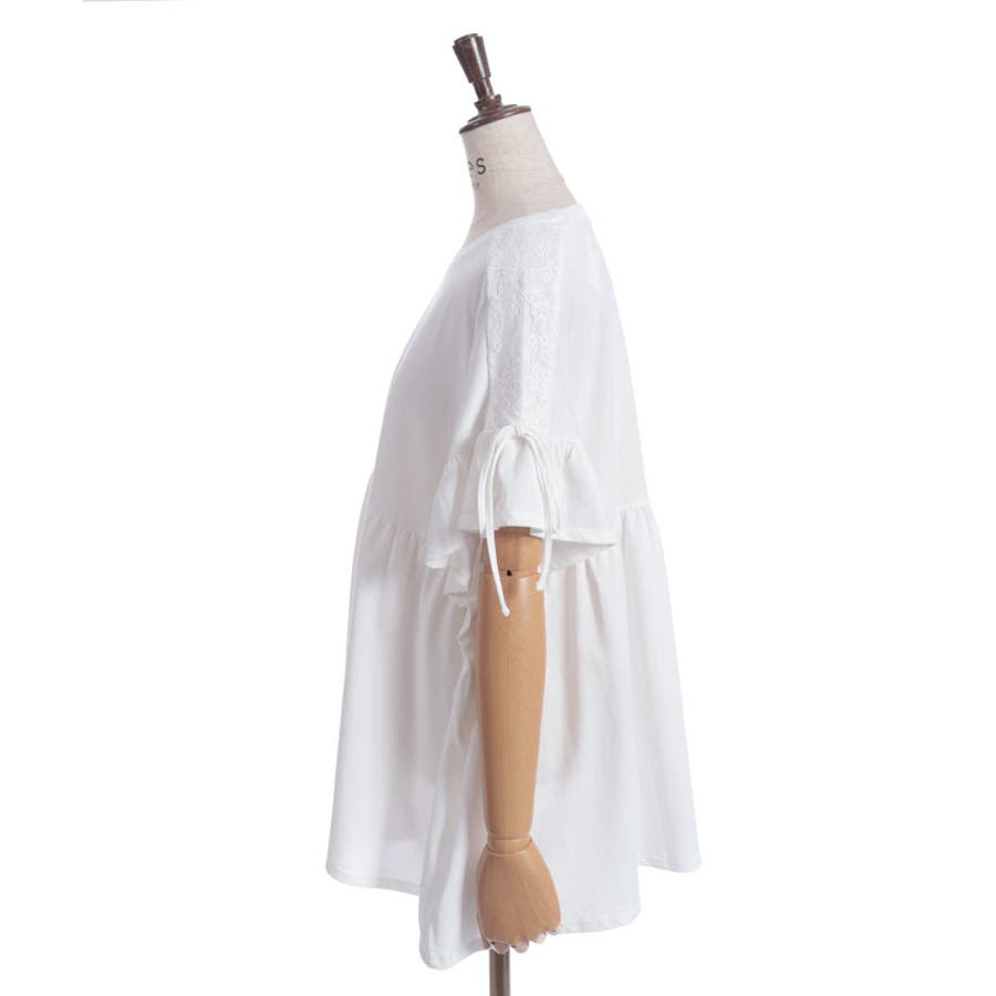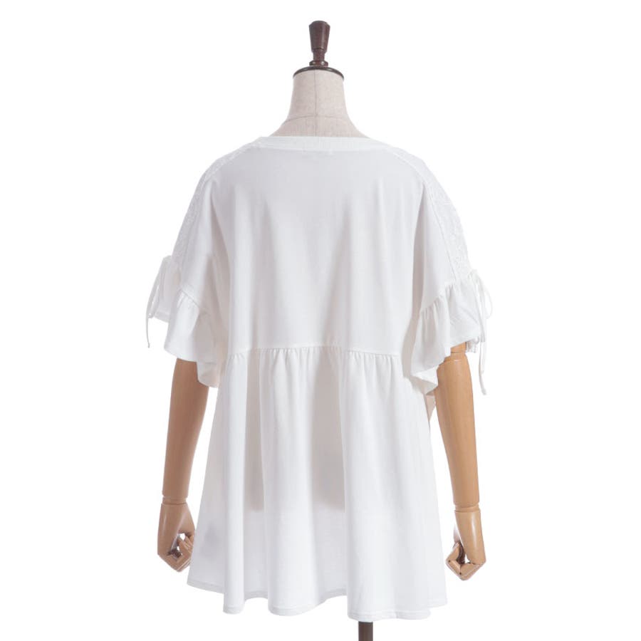広いフリル袖は、マチがついているので着用時にも安心です。