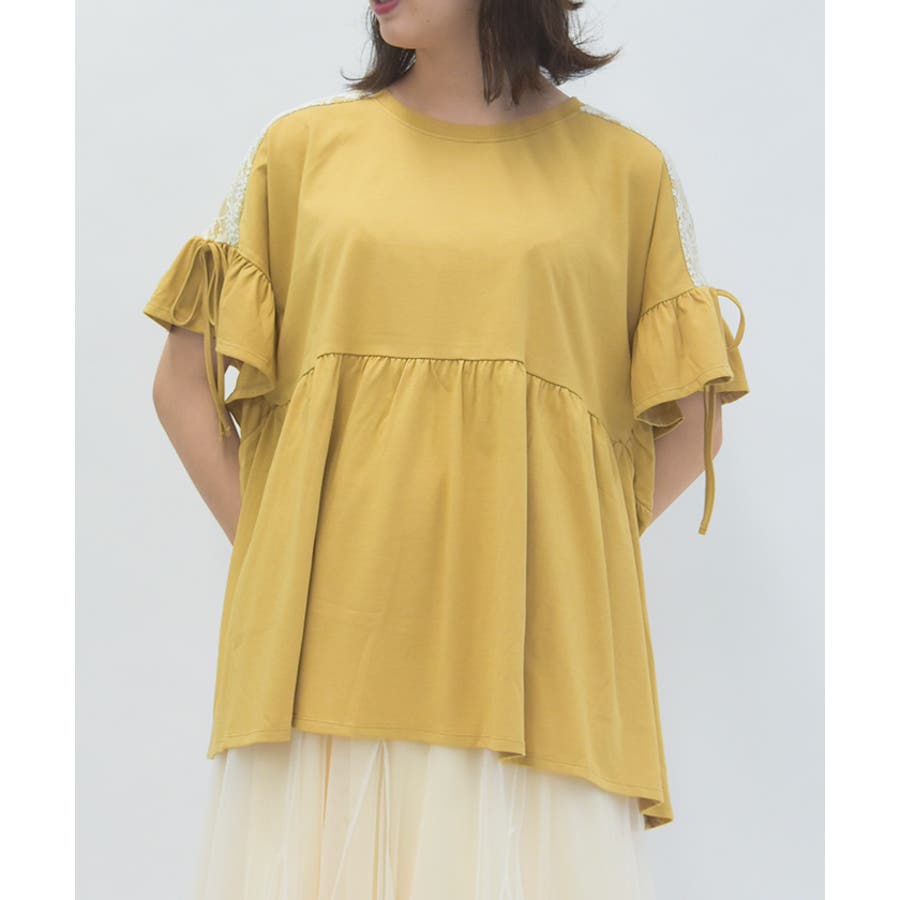 ヨーク切替でレースを重ね、フェミニンさをプラスしたデザイン。
