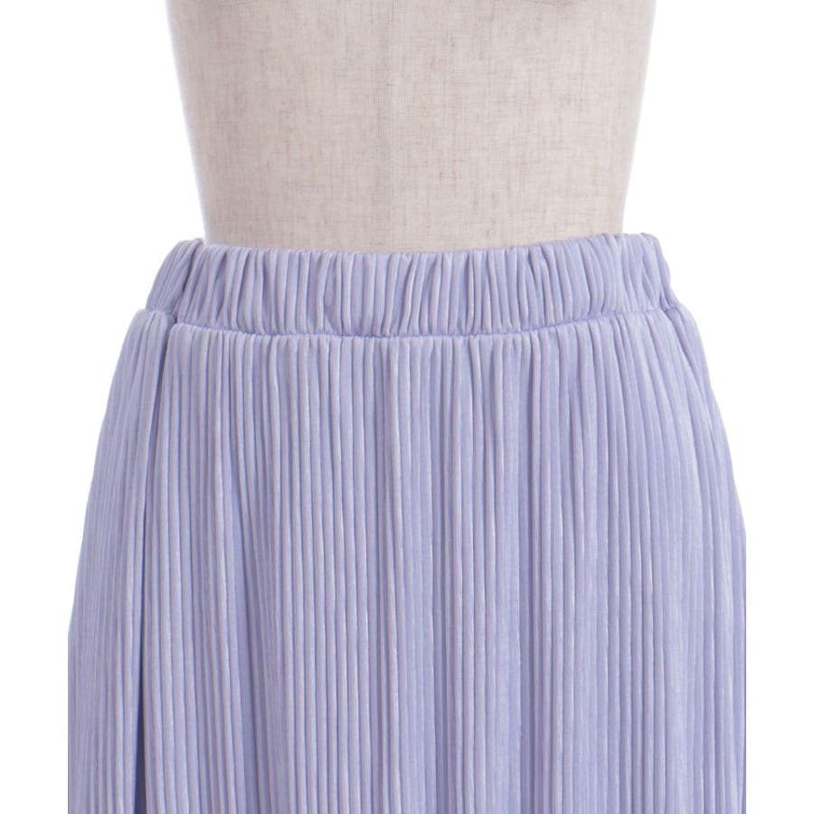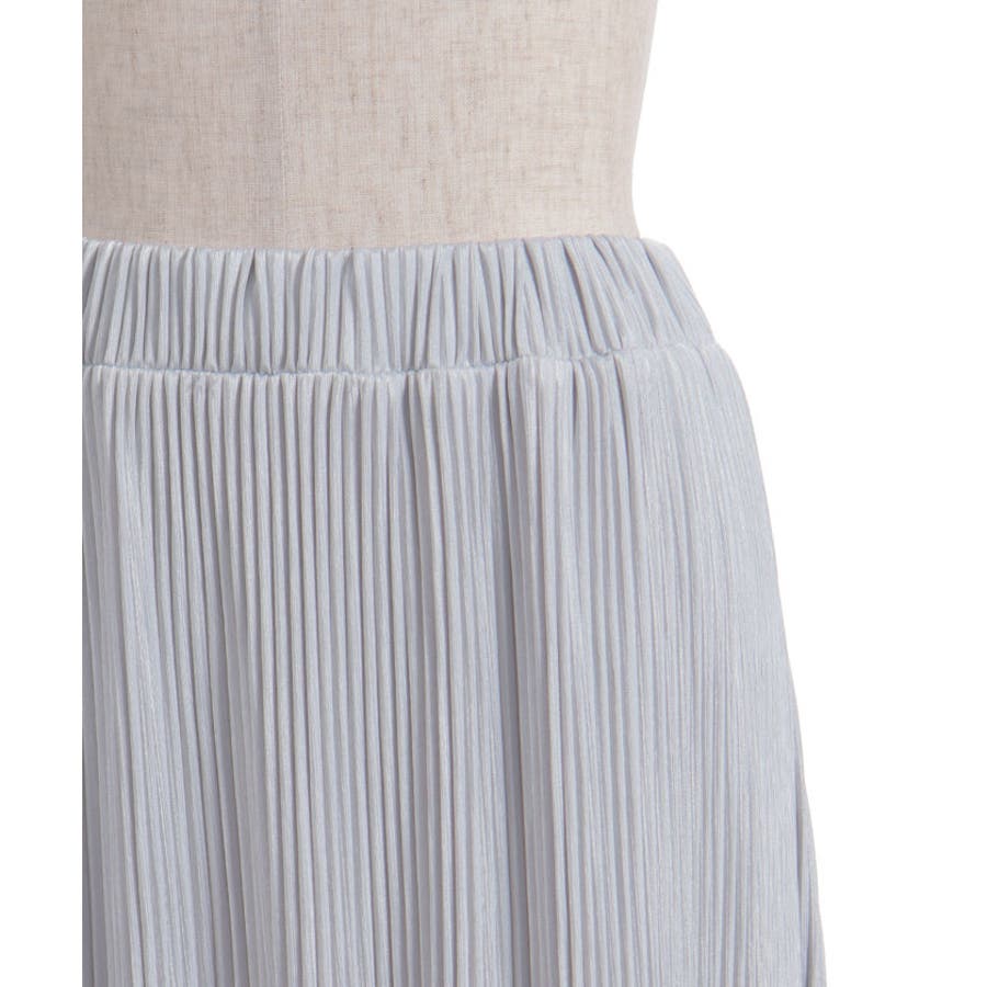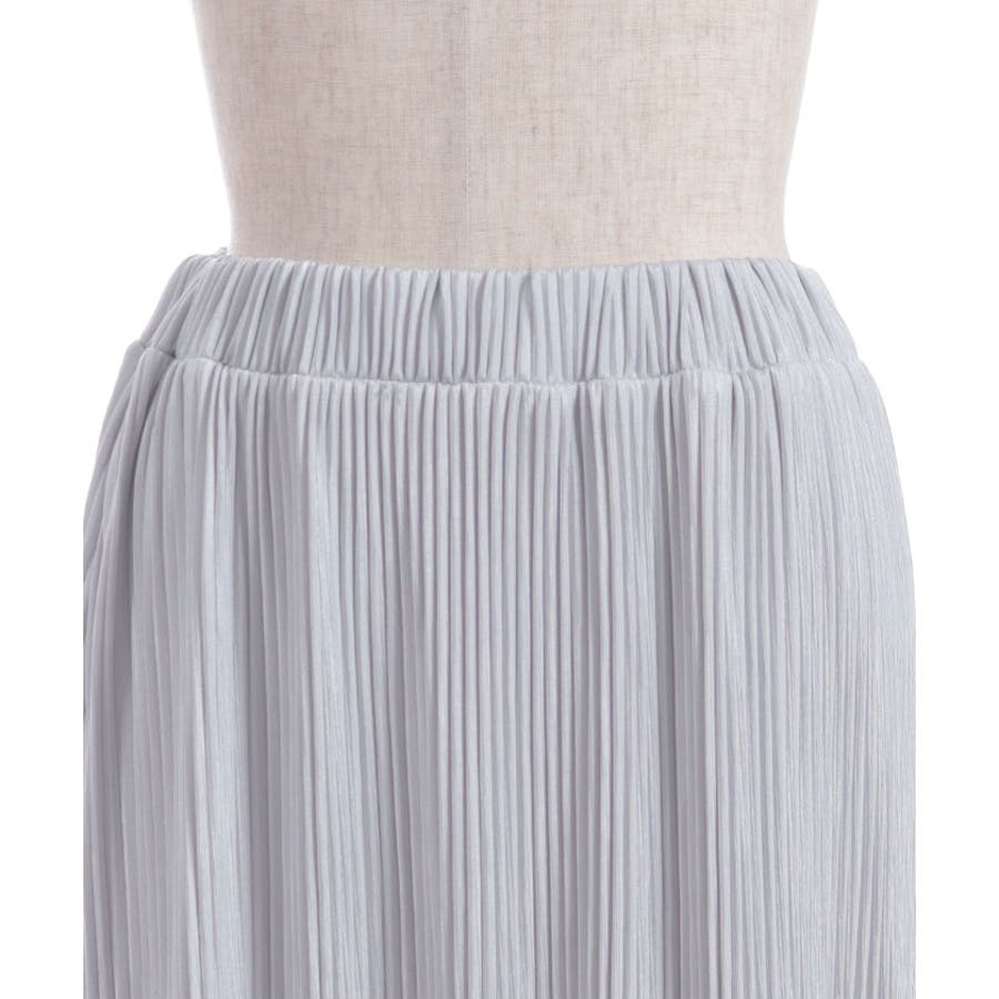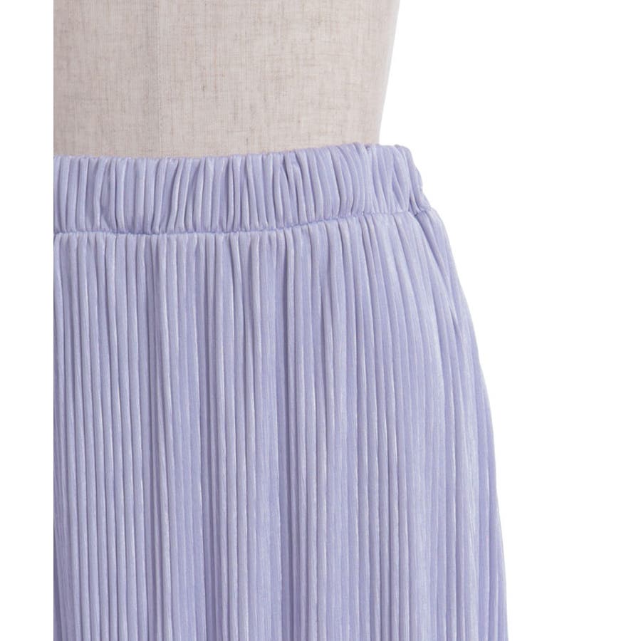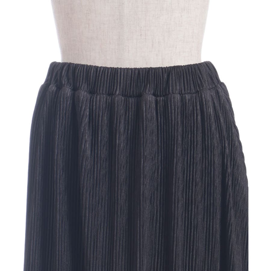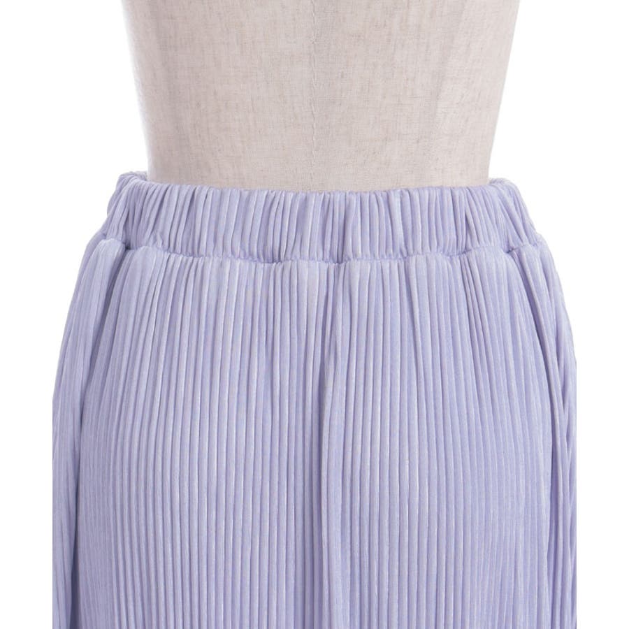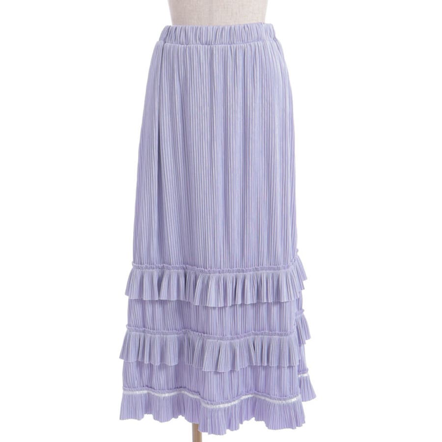縦ラインを強調する細かいプリーツがすっきり見えを叶えつつ、裾の段フリルで程よいボリューム感をプラス。