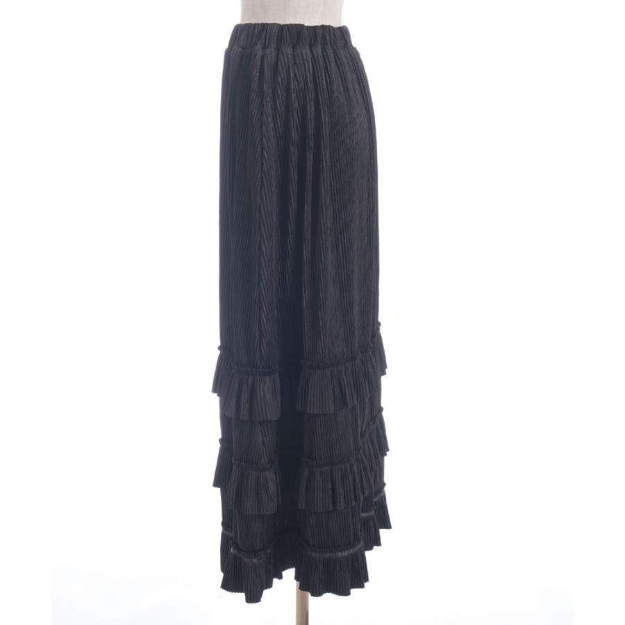動くたびに揺れるフリルが魅力的なロングスカート。