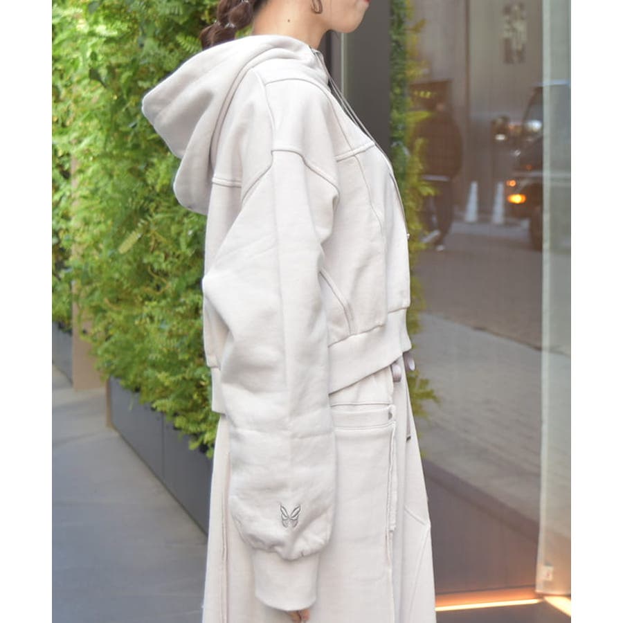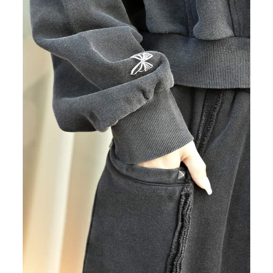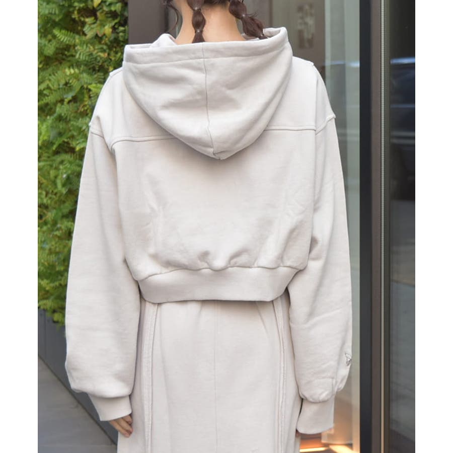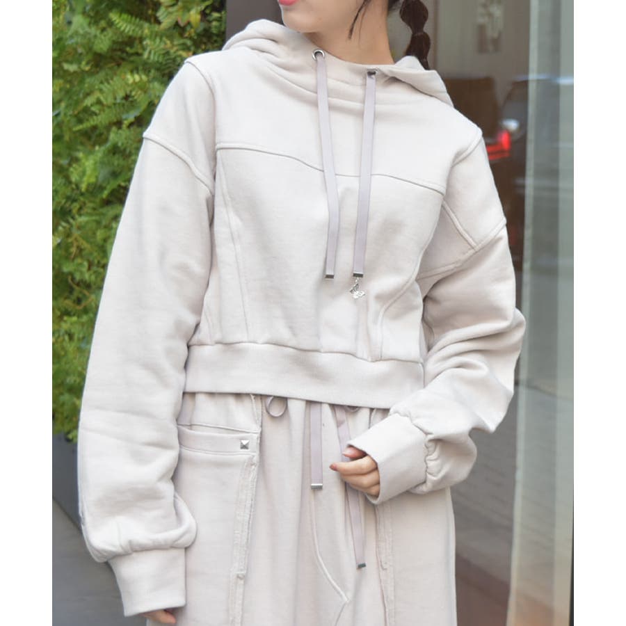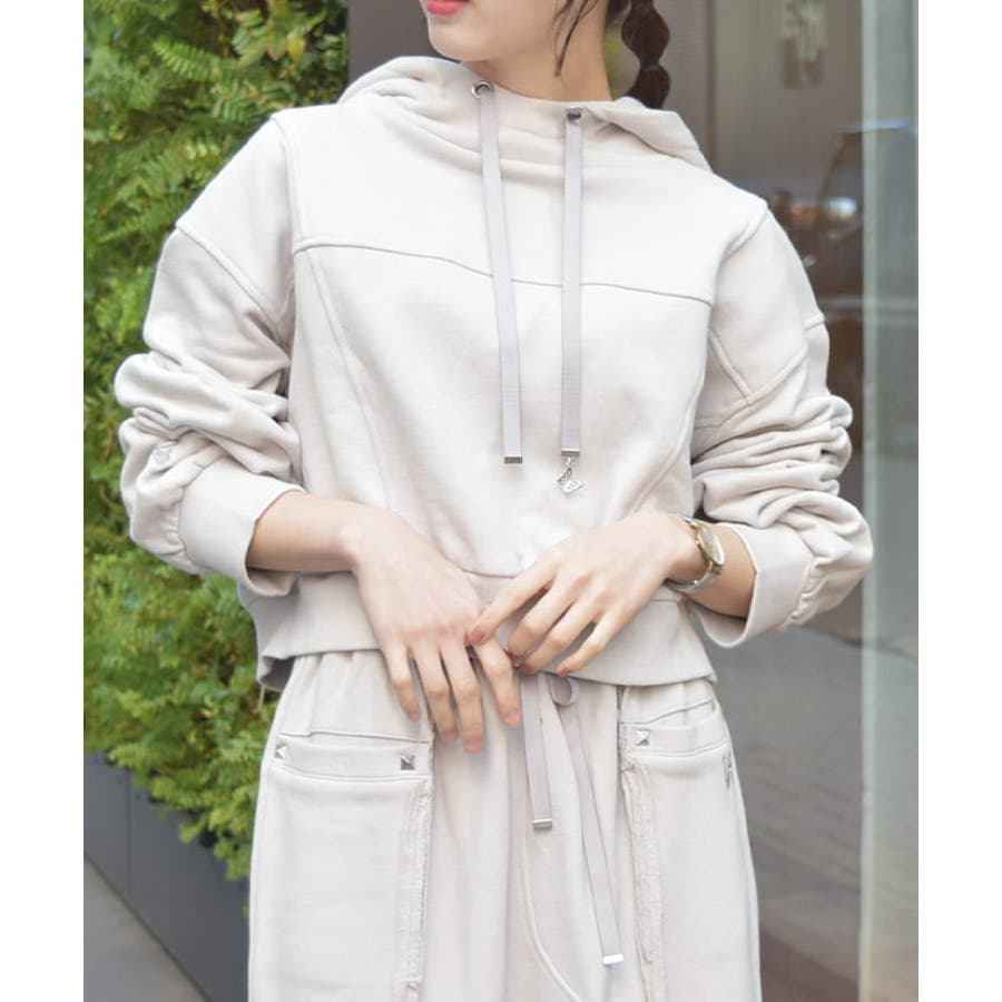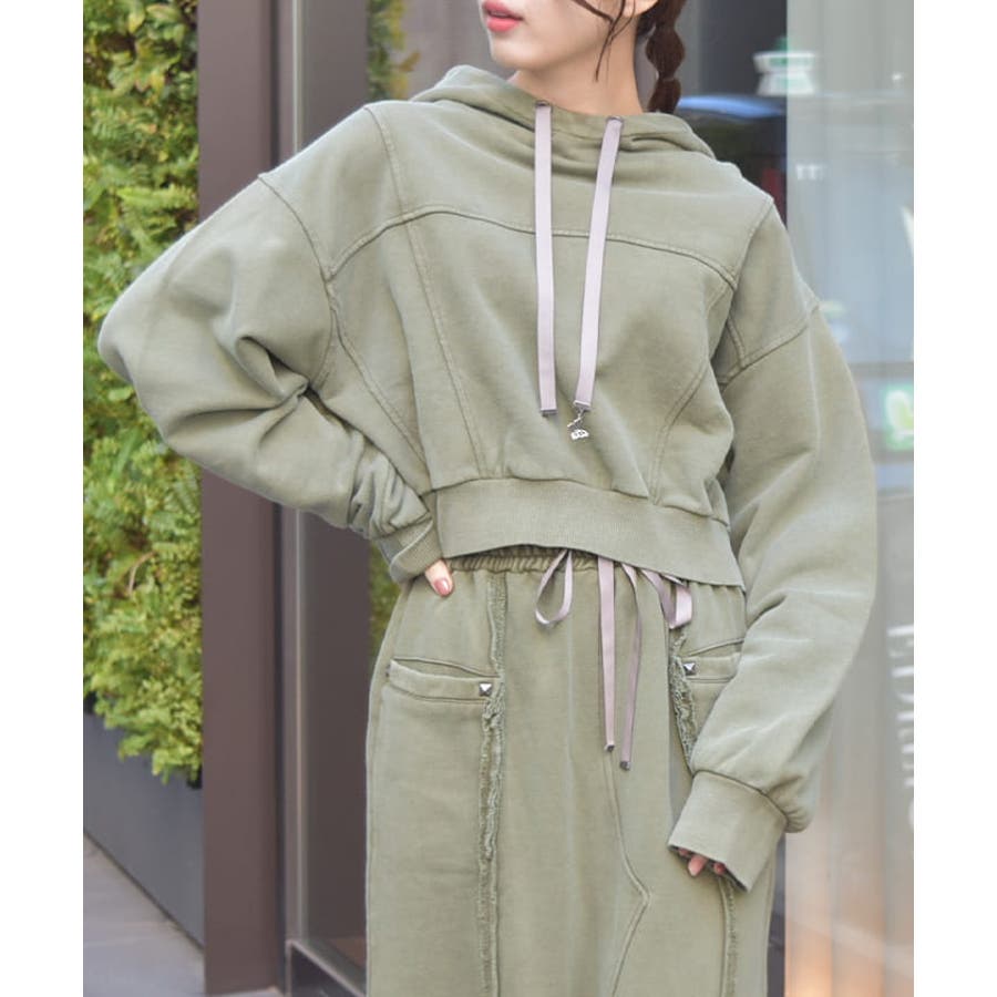 スカートと生地を連動し、セットアップ風に着こなせるスウェットです。
