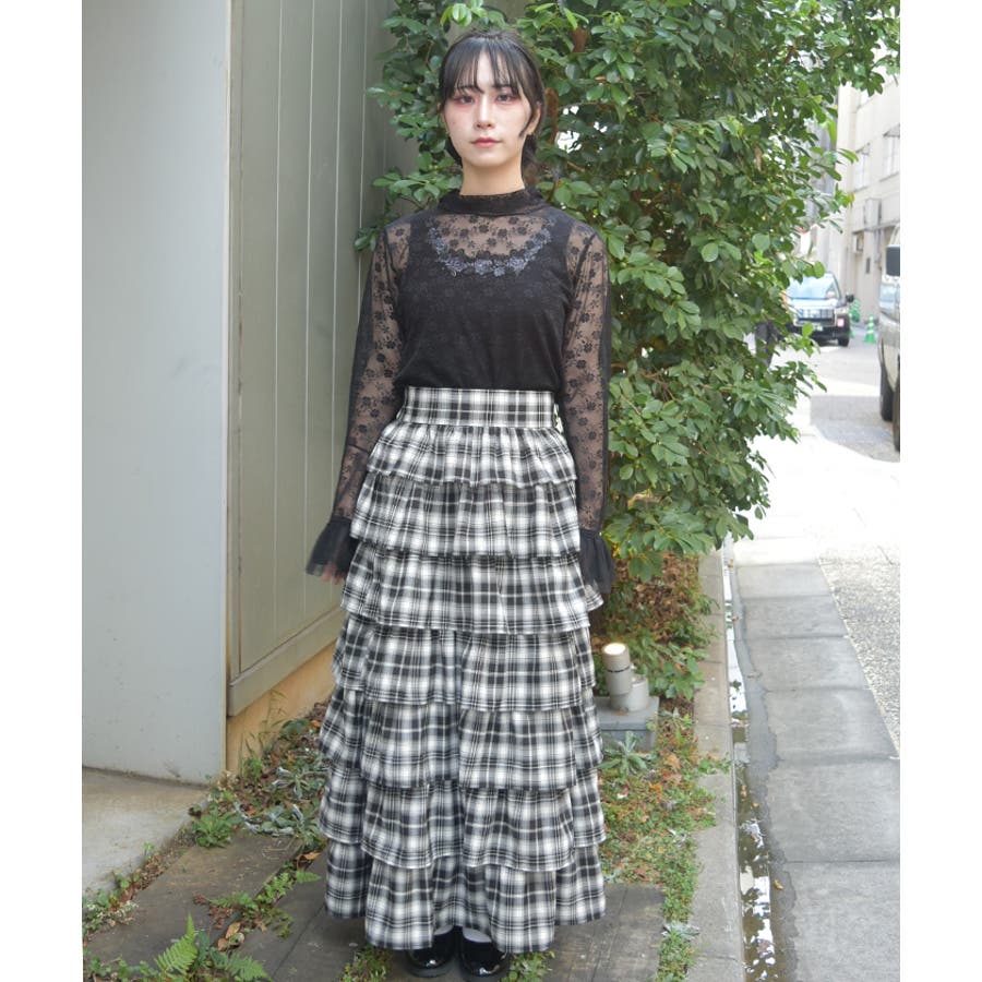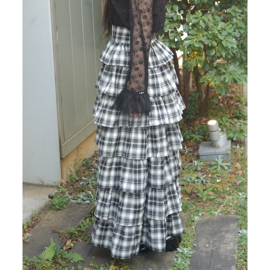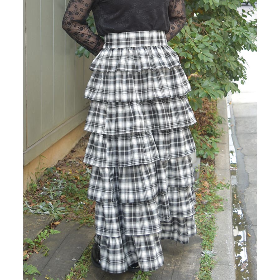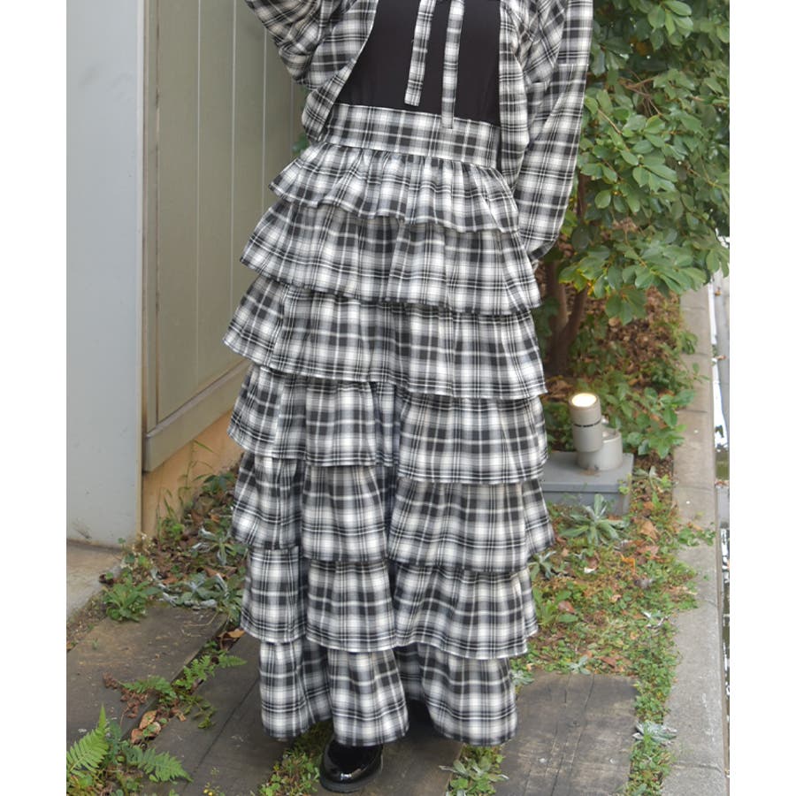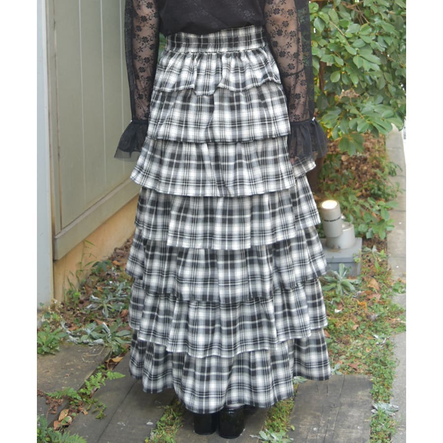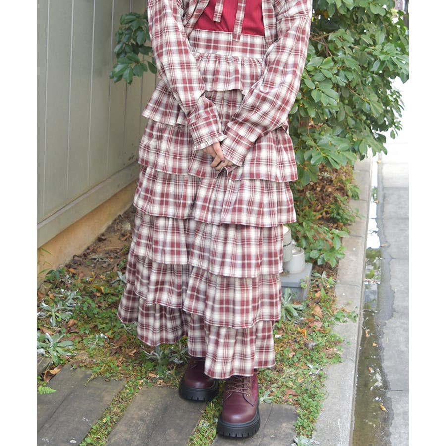 チェック柄ティアードスカート
