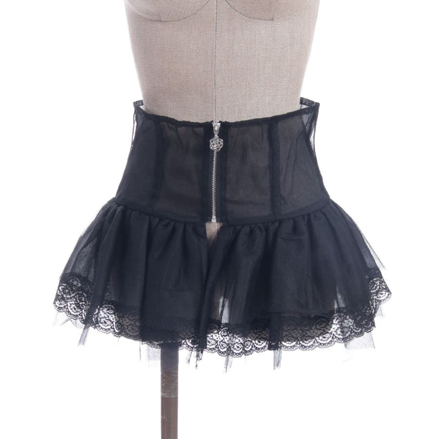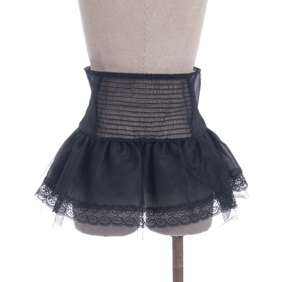 ペプラムシルエットがアクセントになったコルセット風のベルト。