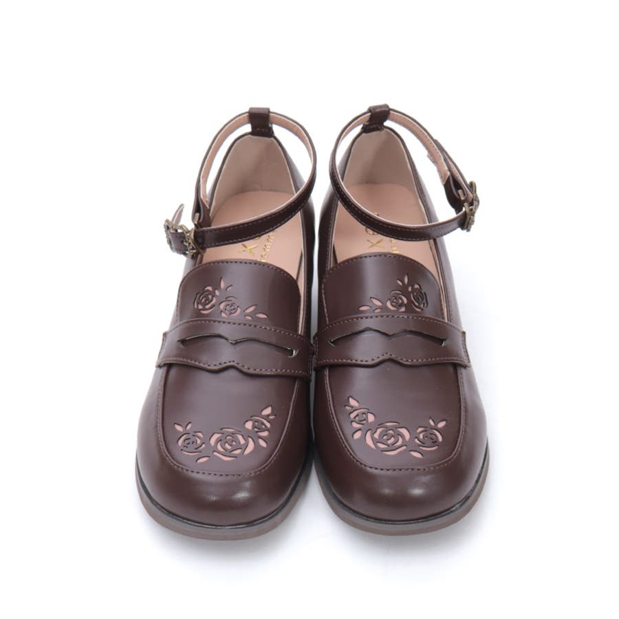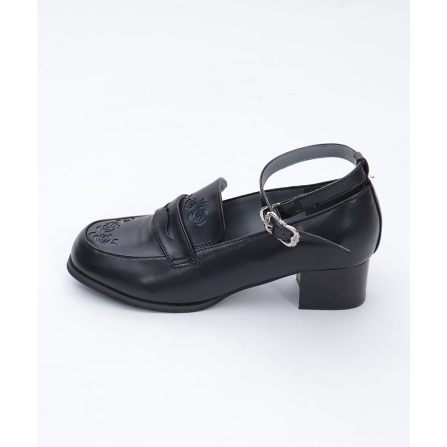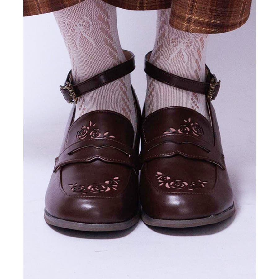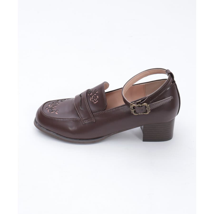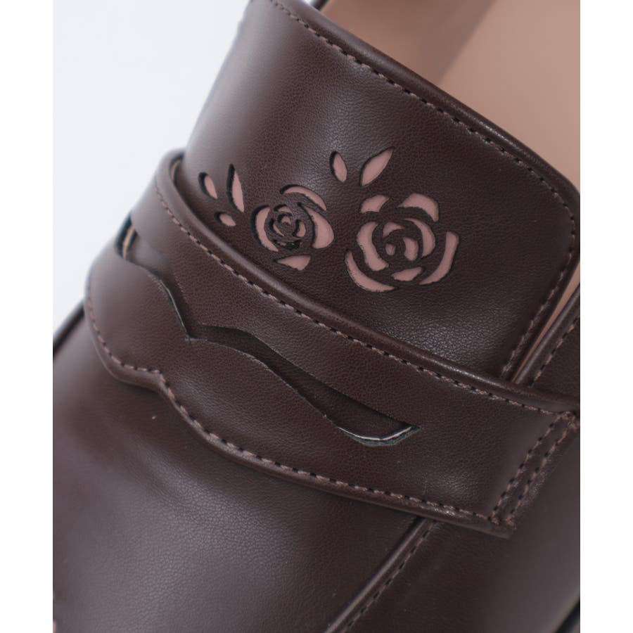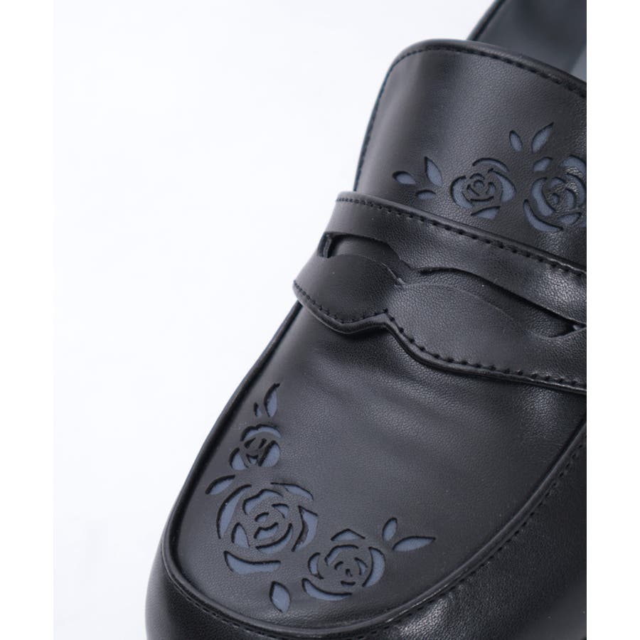 ローズ柄のカットワークがエレガントなローファーパンプスです。