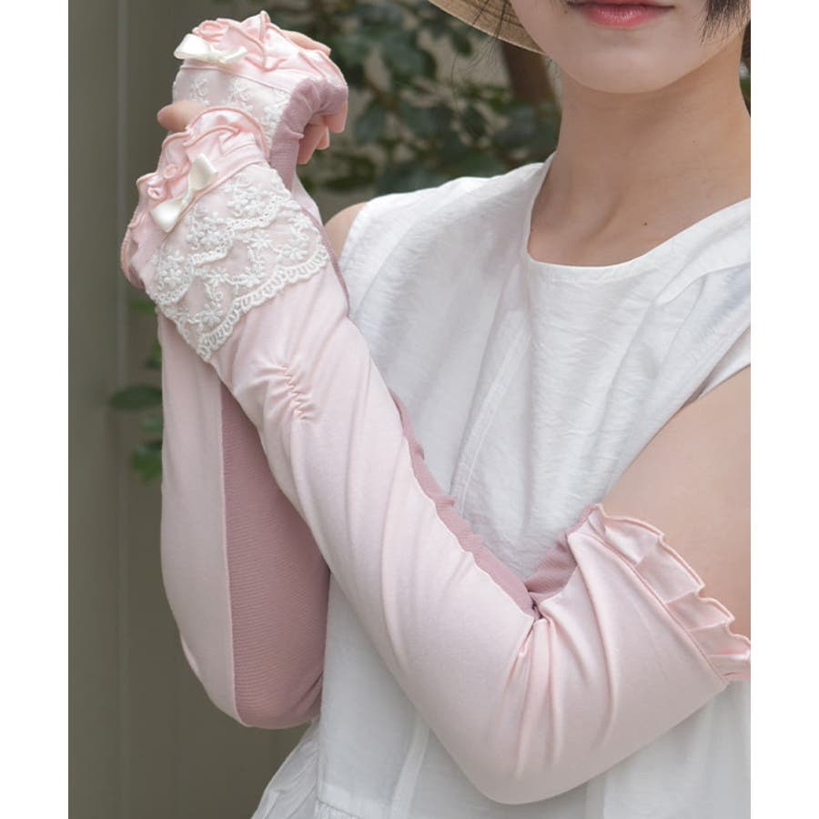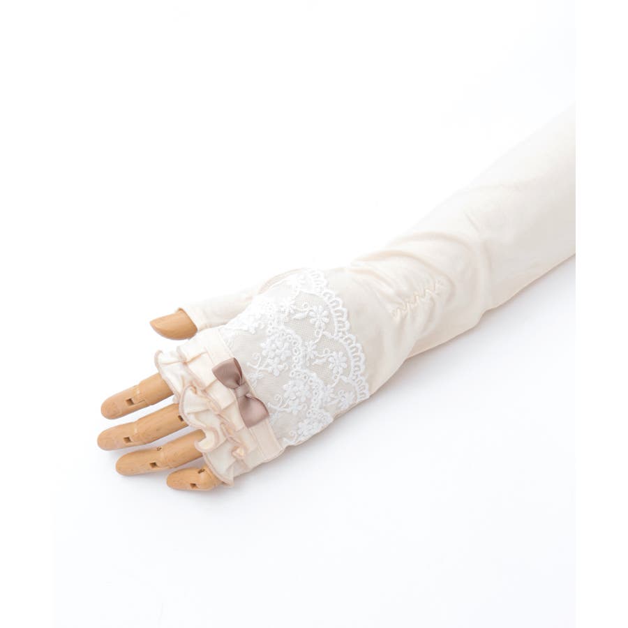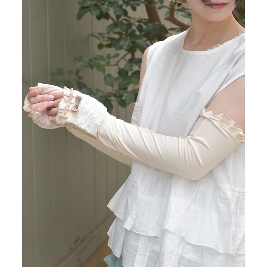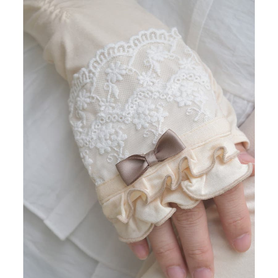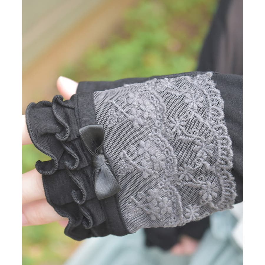 素材 | 甲部:レーヨン96%、 :ポリウレタン4%、掌部:ポリエステル96%、 :ポリウレタン4%、レース:綿55%、 :ナイロン45% |