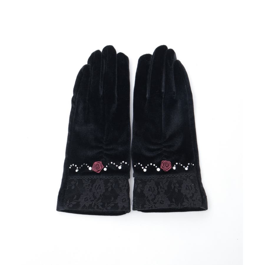 巻きバラとストーン使いが華やかなベロア手袋です。