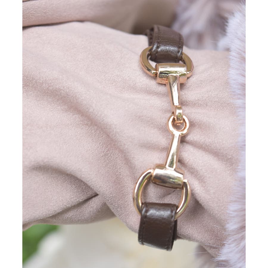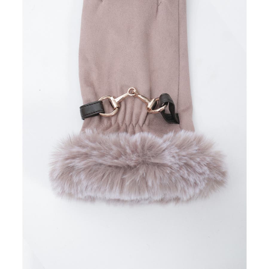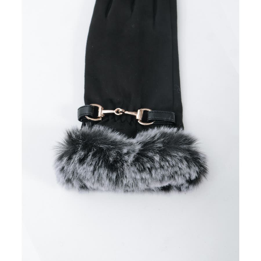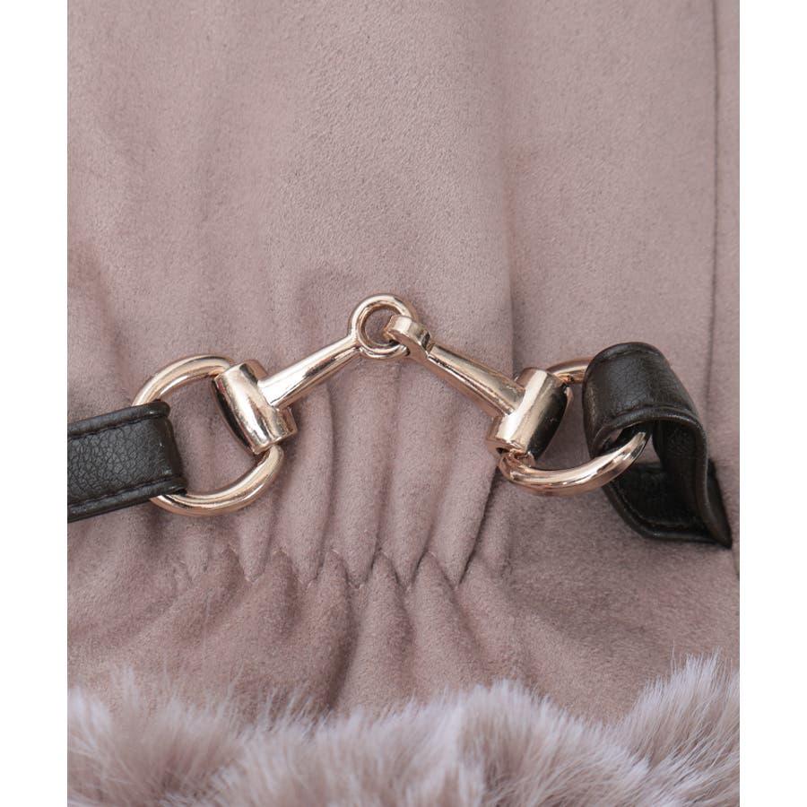 光沢が美しいスエード生地に、毛足の長いファーを組み合わせたスタイリッシュなデザイン。