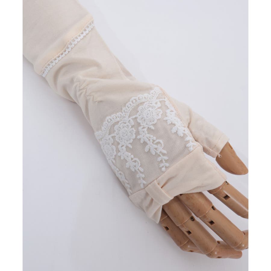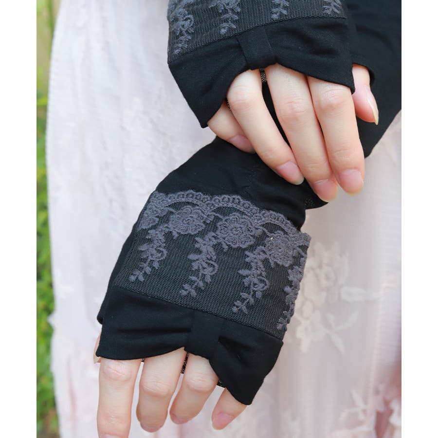 | 素材 | 甲部:レーヨン92%、 :ポリウレタン8%、掌部:ポリエステル94%、 :ポリウレタン6%、レース:ナイロン100%、刺繍:綿100%、レース:ナイロン84%、 :ポリウレタン16% |