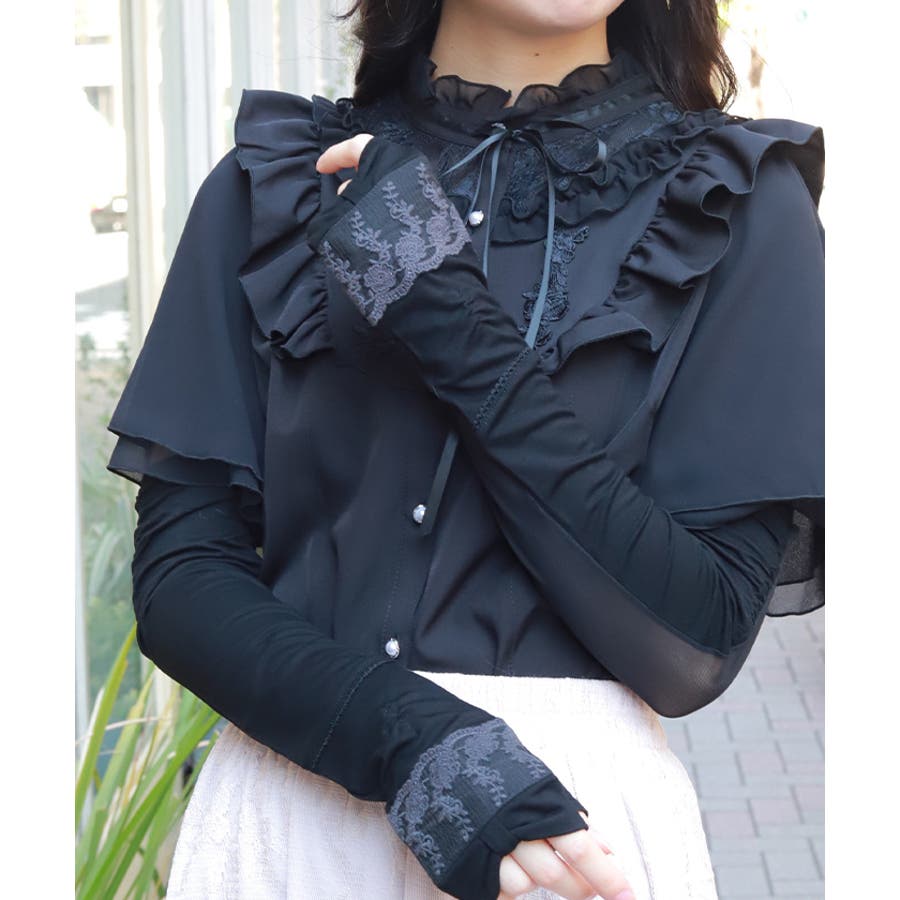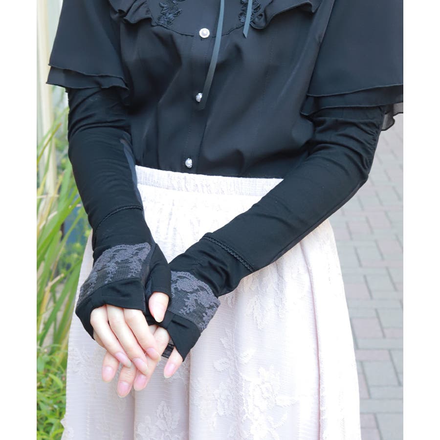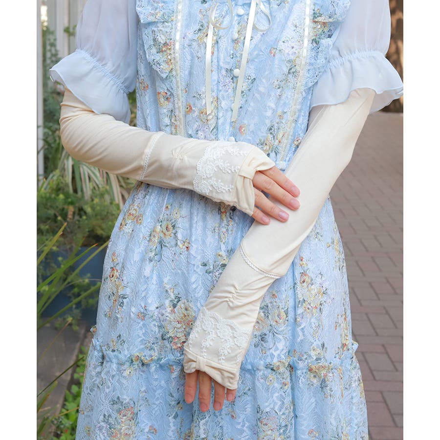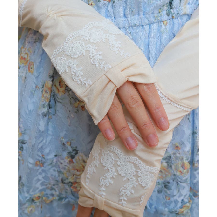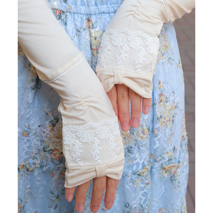 リボン×レースUVロング手袋