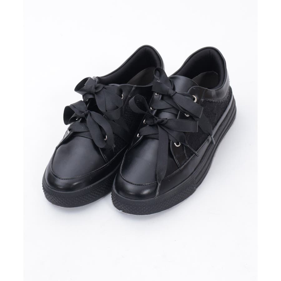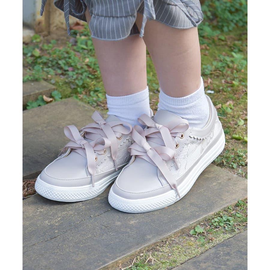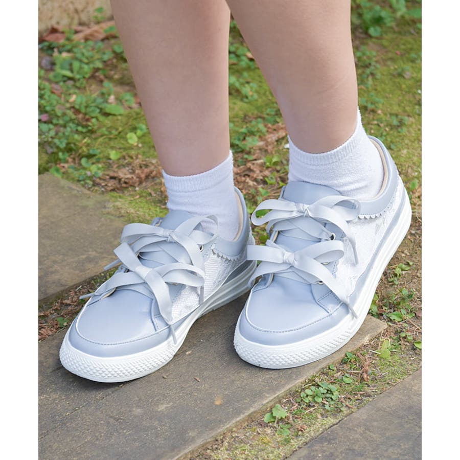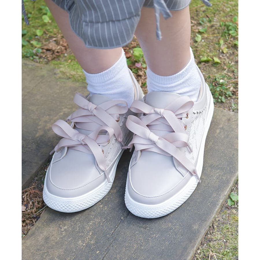 レースアップのリボンをダブル使いにし、華やかさをアップ♪
