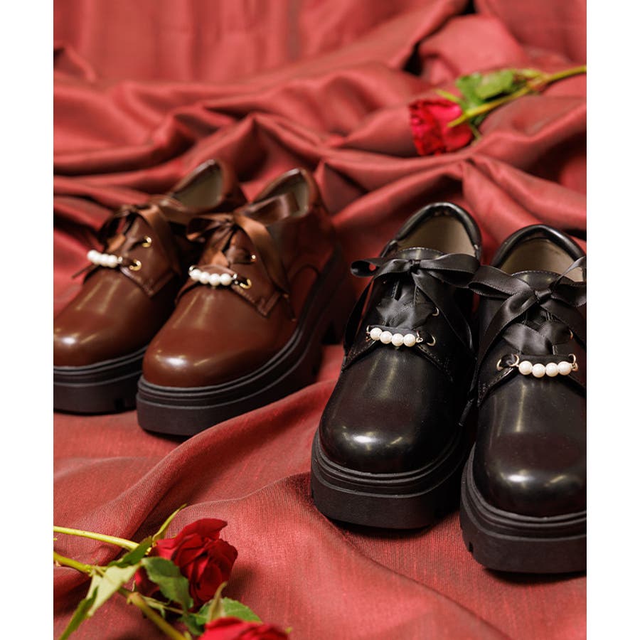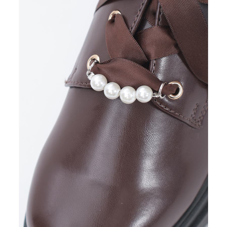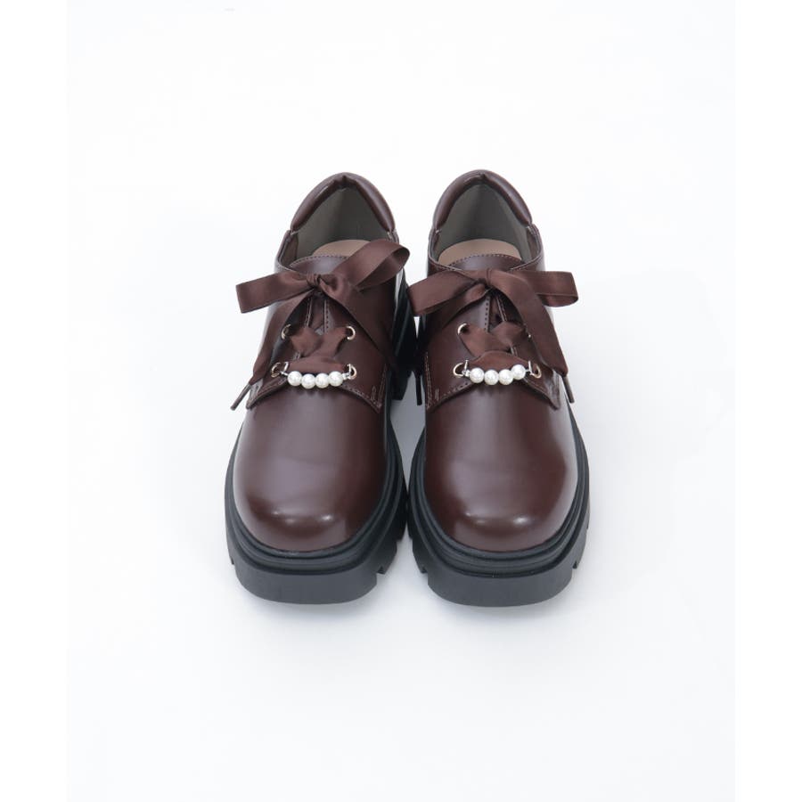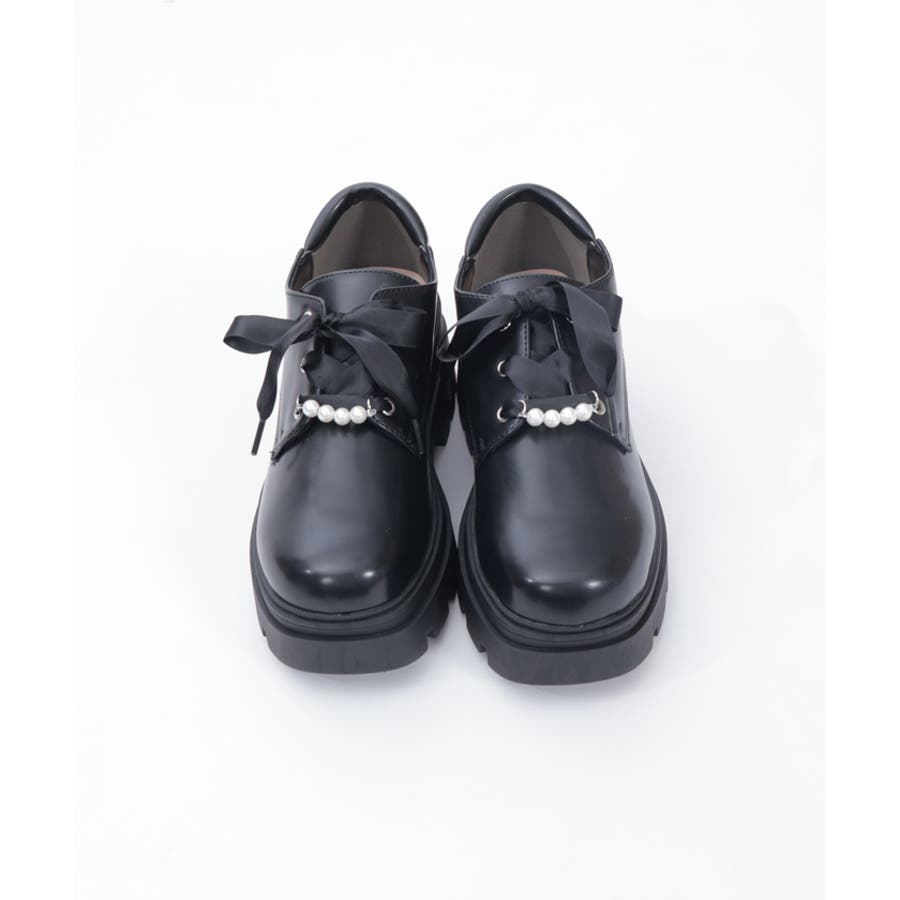 パールやリボンのレースアップデザインがキレイめな印象を与えてくれます。
